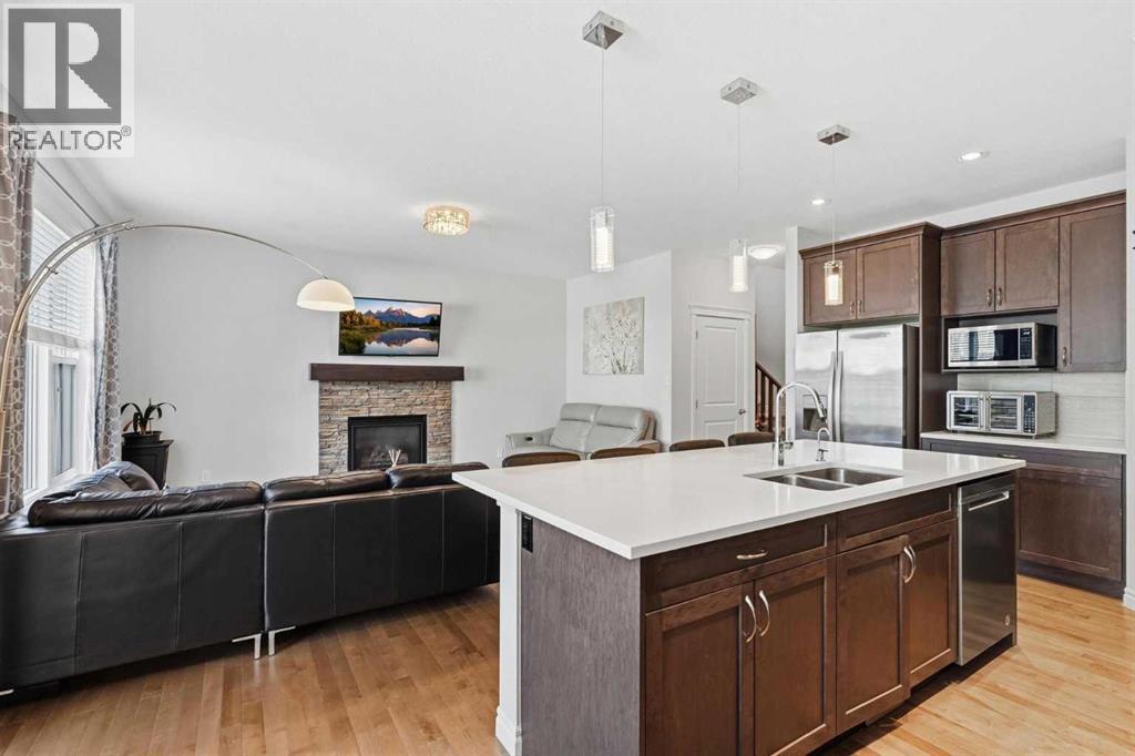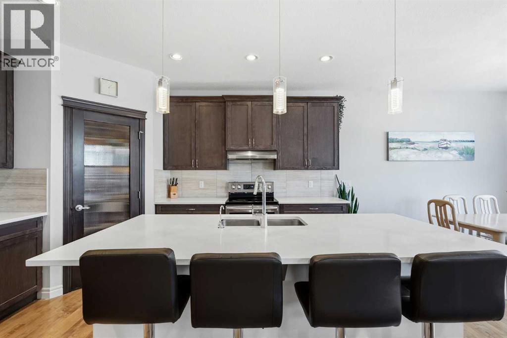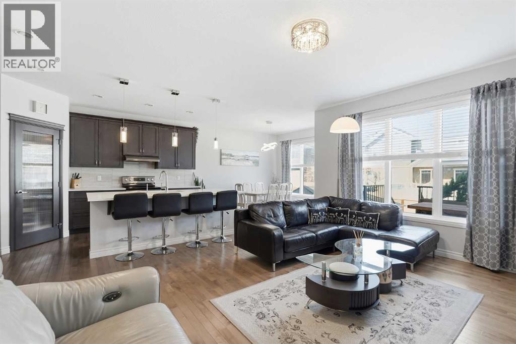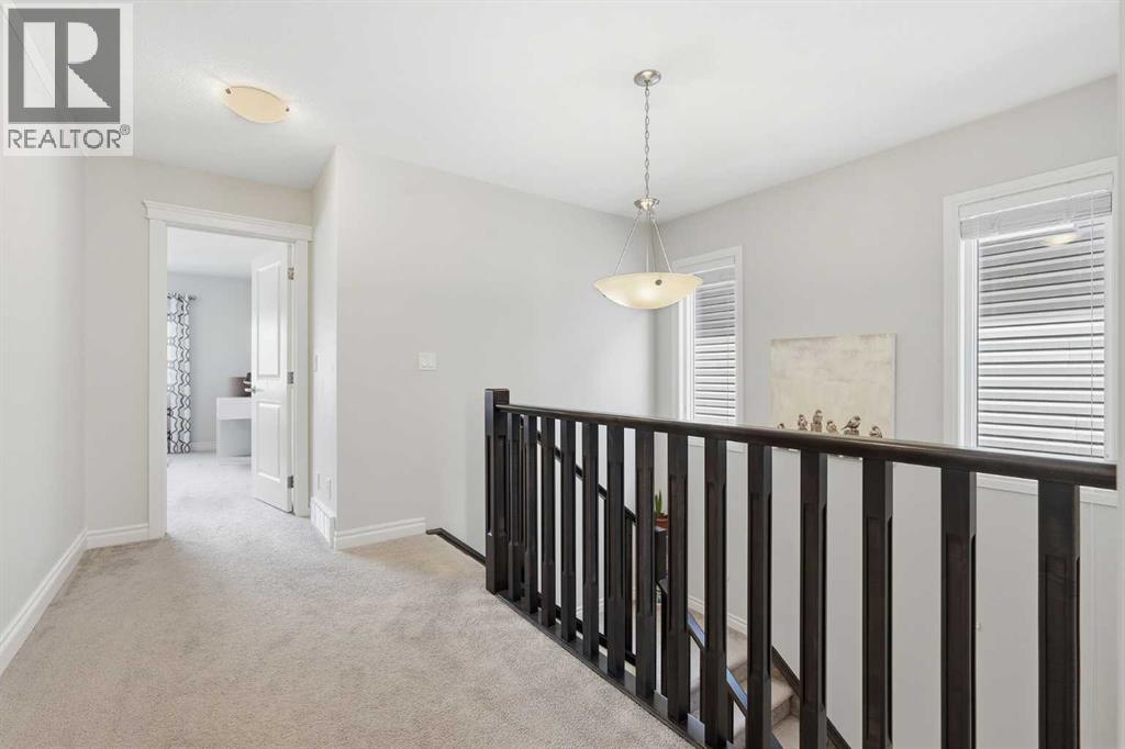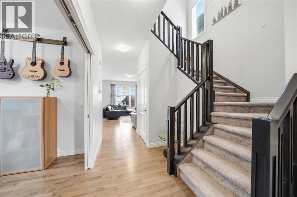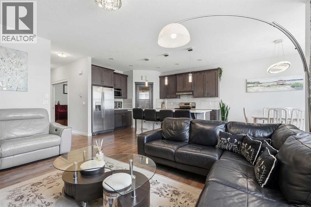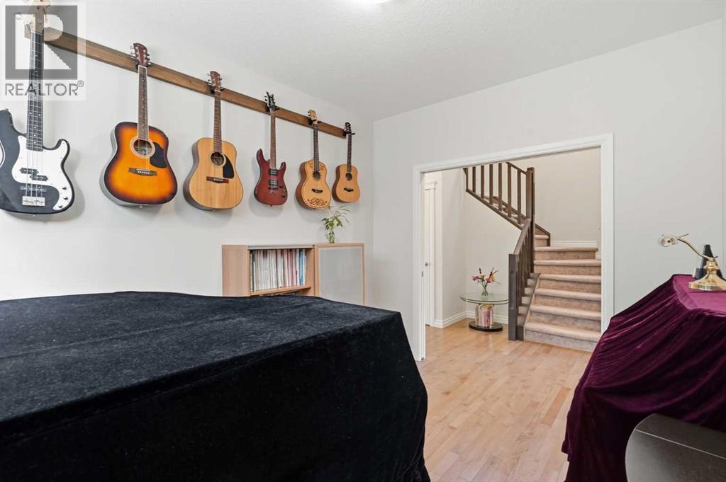 Welcome to this beautifully maintained, original-owner home, ideally located on a quiet street in a highly desirable family-oriented community. Lovingly cared for over the years, this property offers a perfect blend of comfort, functionality, and flexibility for modern family living. The main floor features a bright and airy open-concept layout with 9-foot ceilings and large windows that fill the space with abundant natural light. Elegant hardwood flooring runs throughout, complemented by upgraded light fixtures for a clean and contemporary feel. A versatile front den/office provides the perfect space for working from home, studying, hobbies, or a children’s play area. The main level also includes a spacious living room, a well-appointed kitchen, and a convenient powder room. Upstairs, you’ll find FOUR well-designed rooms offering incredible flexibility for growing families or multi-purpose living. The spacious primary bedroom includes a private ensuite, while two additional bedrooms and a fourth bonus room - ideal as a recreation room, office, or fourth bedroom - complete the level. A full guest bathroom and a convenient second-floor laundry room with ample shelving and storage space add to the home’s practicality. All bathrooms are upgraded with quartz countertops and under-mount sinks, combining style with ease of maintenance. The fully finished basement expands your living space with a large recreation area, an additional bedroom with large windows, a full bathroom, and a separate side entrance. Step outside to enjoy the recently upgraded backyard, featuring fresh landscaping, a beautiful deck, and a lush lawn - perfect for relaxing or entertaining. A back lane provides added convenience and the potential for parking an RV, boat, or additional vehicles right in your own backyard. Recent upgrades: Roof, siding, and gutters (2025). Located within walking distance to schools, grocery stores, restaurants, and everyday amenities, with quick and easy access to Stoney Trail, this home offers both comfort and convenience in one exceptional package. Don’t miss this fantastic opportunity - book your showing today! (id:63190)