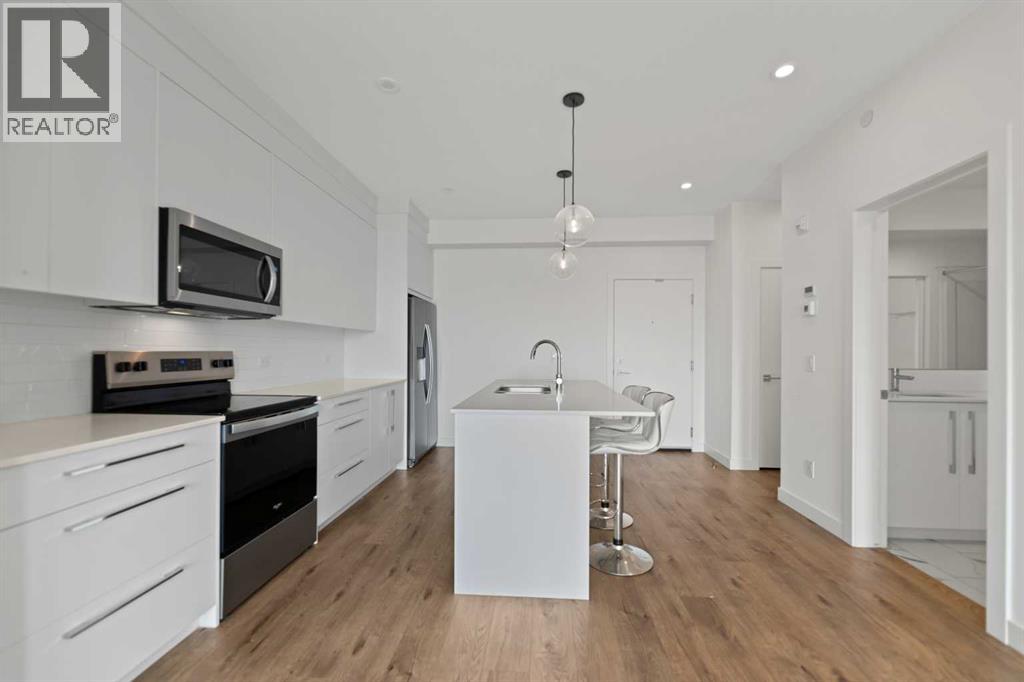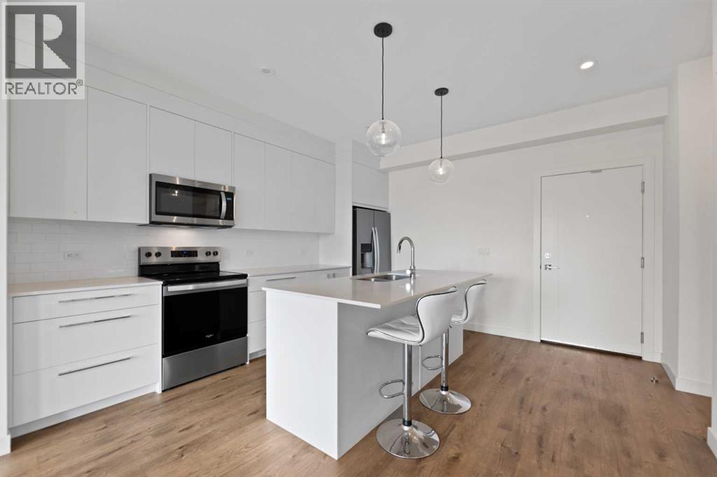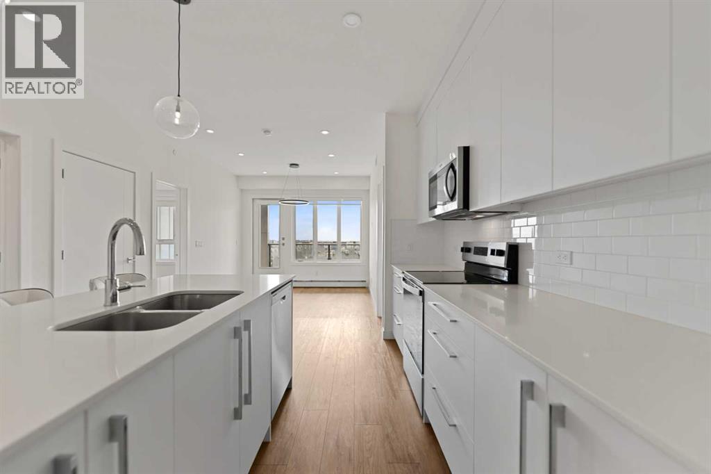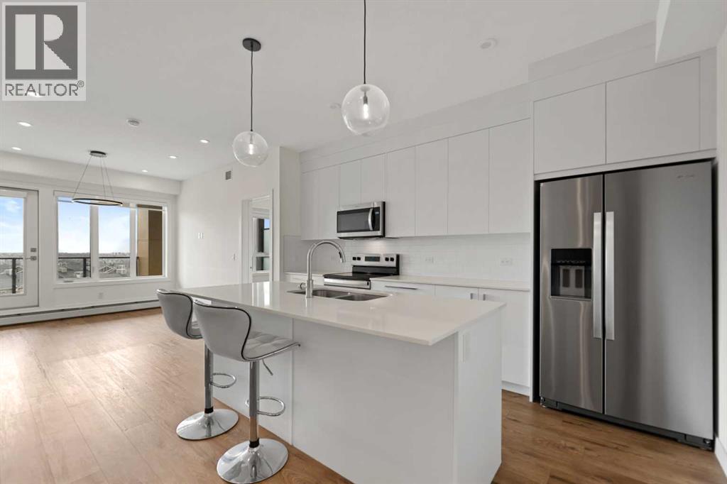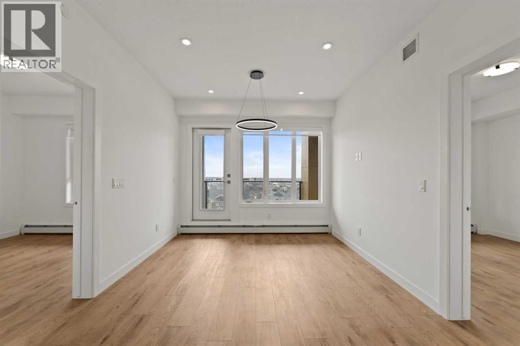 Welcome to Skyview North by TRUMAN! This exceptional Top Floor unit offers a bright and airy 2-Bedroom, 2-Bathroom home with Den in the established community of Skyview Ranch, complete with a titled Underground Parking Stall. Enjoy the refined finishes throughout, including Luxury Vinyl Plank flooring and a designer Lighting package. The custom chef-inspired Kitchen boasts Stainless Steel Appliances, Soft-Close Cabinetry, and elegant Quartz Countertops. The Primary Bedroom features a walk-through closet leading to a four-piece Bathroom, while the spacious Secondary Bedroom provides a versatile area perfect for a guest room with adjoining four-piece Bathroom. Additional conveniences include a Den, an in-suite Washer and Dryer, stylish Window Coverings, and a Patio off the Living Room perfect for relaxation. Skyview North is ideally located just steps away from amenities such as shopping at Sky Point Landing, Green Spaces, and extensive Playgrounds. Enjoy easy access to both Stoney and Deerfoot Trail, making commuting a breeze. Schedule your showing today and discover exceptional living at Skyview North! BEST PRICED CONDO FOR TOP FLOOR. Vacant and easy to be shown. Call now for viewing. (id:63190)