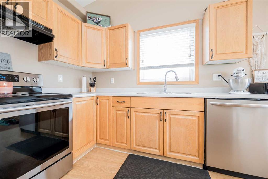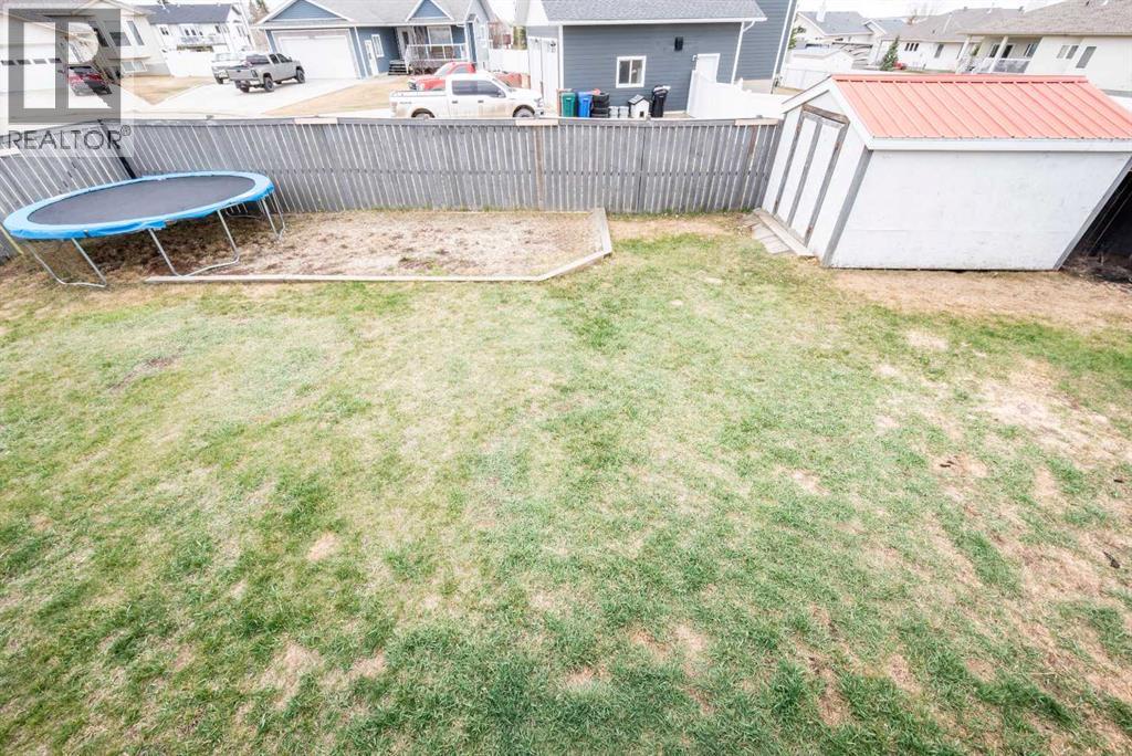 Fully developed 4 Bed 3 bath home located on corner lot with RV Parking pad on a quiet street in lovely Beaverlodge. Generous sized entry way welcomes you, heading up a few stairs you will find the good sized living room with vaulted ceilings. Open concept boasted between the kitchen and dining, with ample cabinet + counter space and must have pantry. Dining is complimented nicely but exterior door to your massive back deck great for entertaining and BBQ season which is upon us. Remainder of main floor is made up of three bedrooms, full bathroom, master bedroom with en-suite and walk in closet. Heading to the finished basement that has a large living room with wet bar with wood burning stove that could be easily converted to gas , fourth huge bedroom, full bathroom , and utility room which has had updated high efficiency furnace + hot water tank in the last few years. Back yard is fully fenced with a true RV Parking gravel pad. Attached double car garage is heated, great for our long winters. Book your viewing today of this affordable home with all the boxes checked. (id:63190)