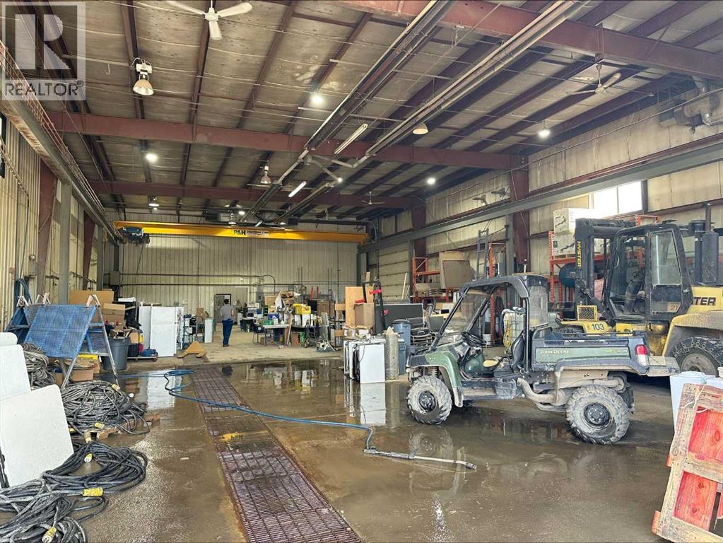 INVESTMENT OPPORTUNITY. This shop has a Tenant that has just renewed their lease until May 31, 2027. 10,500 Square foot shop available for sale in Minhas Industrial Park south of the city. 10.88 acre fenced, graveled and landscaped lot!!! Powered parking around the building. 30' x 40' cold storage shop, that is insulated and has power and a 14' overhead door. Thee main shop has a main floor area of 9,000 square feet and a second floor that is 1,500 square feet. There is a 675 square foot unfinished mezzanine in the shop area. The office areas have had updates in the past few years and include vinyl plank flooring, paint and LED lighting. The office area has air conditioning. The shop has a 22' ceiling and 4 - 16' x 16' overhead doors and 1 - 16' x 18' overhead door. There is a 5 ton crane in the shop and a pressure washer. 400 amp, 3 phase power. The zoning is RM-2, which is Rural Medium Industrial. (id:63190)