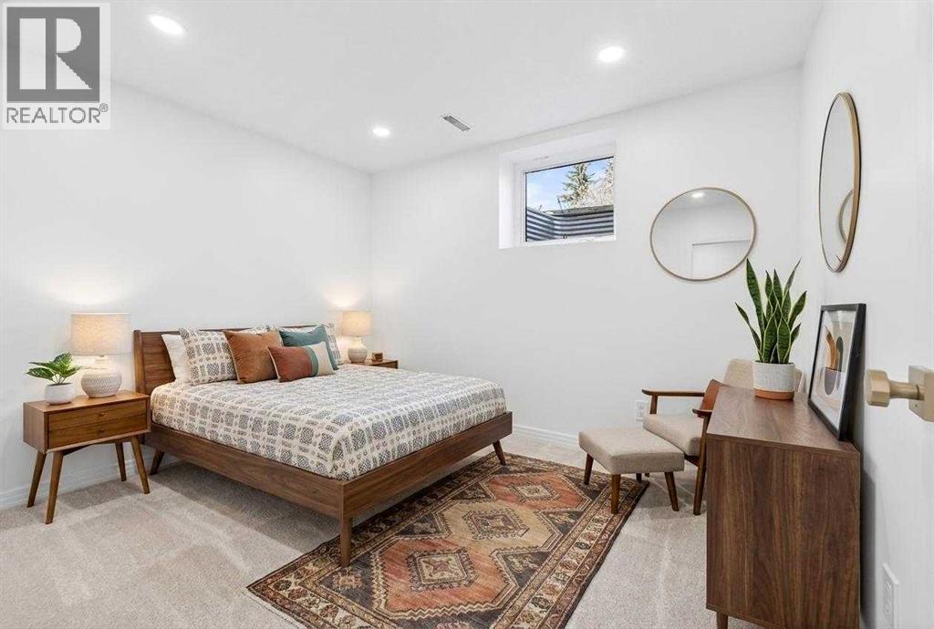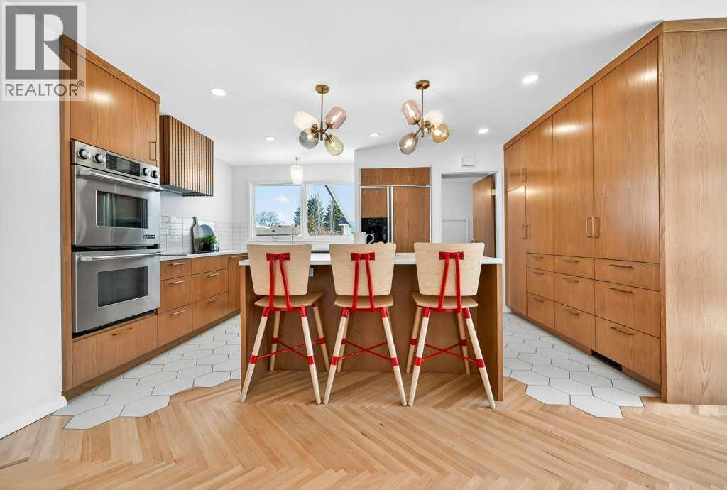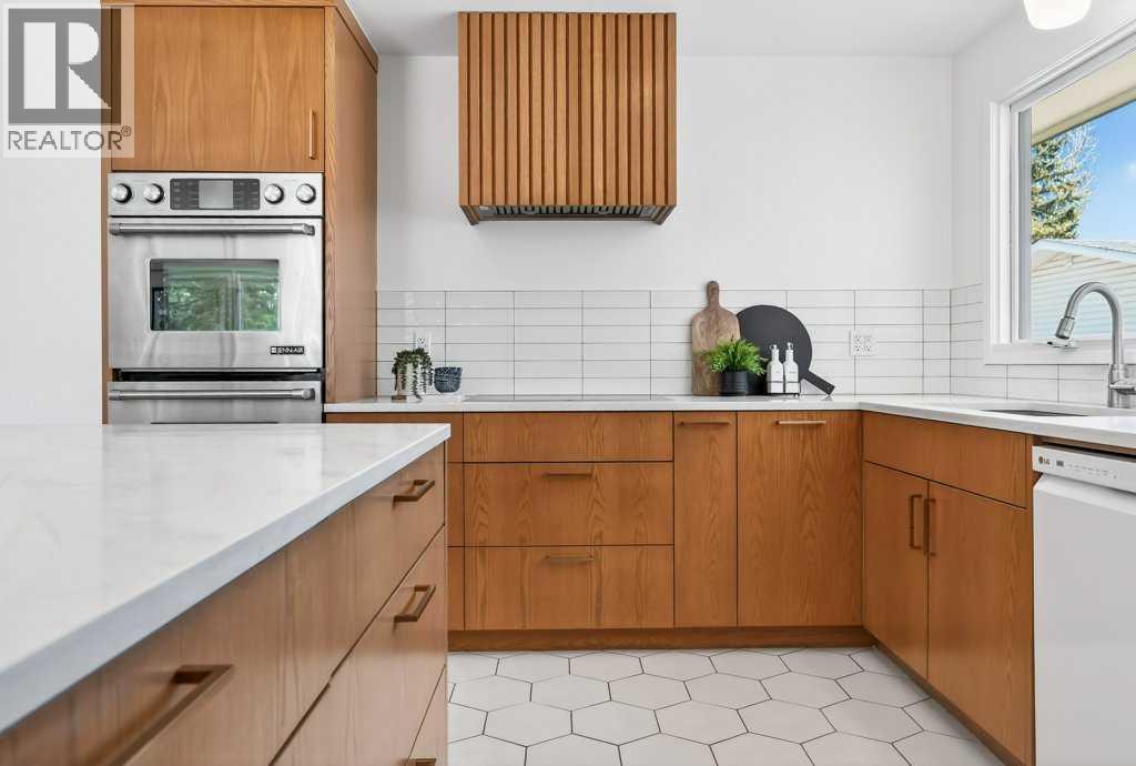 OPEN HOUSE: Saturday April 25th 12 - 2pm. Beautifully renovated Bungalow located on a quiet tree lined street in the sought-after community of Braeside! A truly REMARKABLE blend of style + design with the architectural nuances of both Mid-Century + Scandinavian design. Shut the front door! Brand new custom solid wood front door flows into a spacious foyer with inset custom hexagonal tiled floor, closet + custom storage cabinet leading into the open + SUN filled Living + Dining Rooms. Gourmet modern chef’s kitchen with new cabinetry, quartz countertops, Italian subway backsplash, upgraded appliances, central island + custom cabinetry / pantry wall. Main floor primary retreat with 3 pc ensuite, teak vanity, custom tile wrapped shower with 10 mil glass + Schluter decoupling membrane & closet. 2 additional bedrooms or Den/Study + fully updated 4 pc bath with tub/shower laced in floor to ceiling subway tile with Schluter decoupling membrane. Stairs lead to back entrance with access to backyard & insulated single attached garage. New fully finished lower level with upgraded 40 oz carpet & 7/16 underlay, new windows, wet bar, large family & rec room, 2 bedrooms / gym + 4 pc bathroom, laundry + storage area. Additional updates, features + amenities include: Flat ceilings on main floor with knockdown ceilings in lower level, newer roof (2020), pot lights, windows resealed, new electrical service + panel, fully pigtailed aluminum wiring, new bespoke light fixtures, fully painted exterior, newer cedar front steps + back fence (2018), self-watering cascading raised cedar garden beds, fruit trees / bushes: saskatoons, apple + cherry tree, gooseberries, black & red raspberries, rhubarb + perennial herb garden (mint, oregano, thyme, chives, sage) paved back alley, just steps to dog park, maintained skating rink, community centre, basketball courts + community garden. Close to all major amenities including Fish Creek Provincial Park, Glenmore reservoir, Southland Leisure Centre, C hinook & Southland Malls, playgrounds, schools, shopping, public transportation, 14th & 24th St, Stoney, Anderson & Glenmore. Exceptional Property! (id:63190)