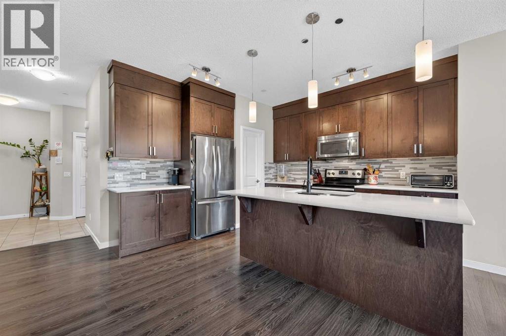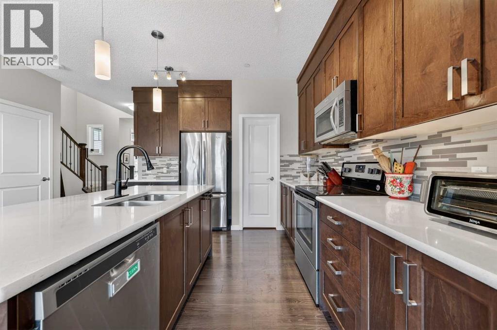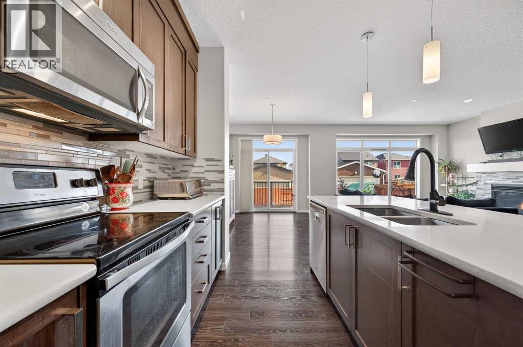 West-facing primary bedroom. Mountain views from bed. Under $650K in Cochrane. You don't see those three things together often.15 Fireside Crescent is a 2016-built 2-storey in one of Cochrane's most family-first pockets — the kind of street where kids still bike between yards and the trail network is a walk away, not a drive. Inside, 2,066 sq ft of above-grade space that actually works: 9-foot main-floor ceilings, a quartz kitchen with a walk-through pantry (groceries to shelf in one trip), and a living room anchored by a gas fireplace with clean sightlines to the dining and back deck.Upstairs: three bedrooms, a central bonus room for Friday-night movies, upper-floor laundry (no more basket-hauling), and a west-facing primary with a 5-piece ensuite and a soaking tub that actually catches the sunset.The 894 sq ft basement is undeveloped at 8-ft ceilings — and the canvas to build exactly the gym, suite, or rec room your family wants. (id:63190)