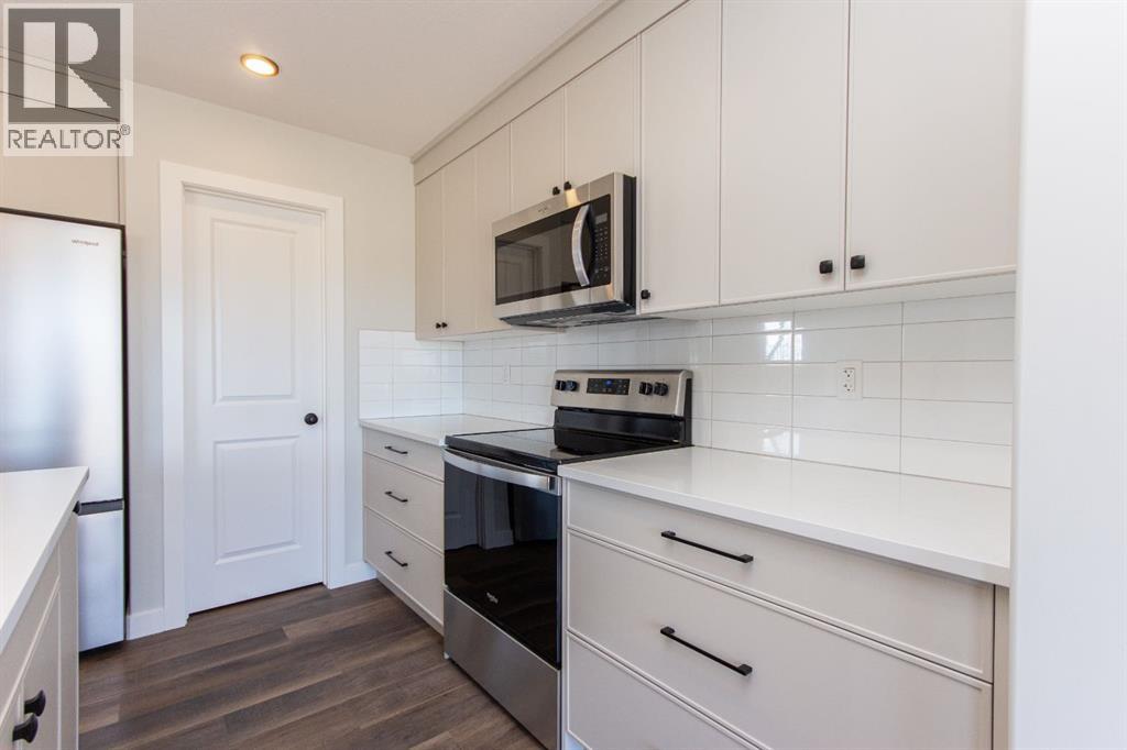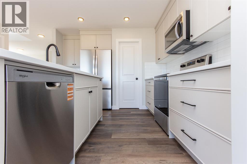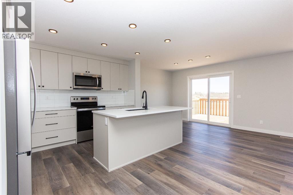 Only steps from a huge park and playground reserve, and within walking distance to the high school, this brand new Laebon built home in beautiful Meadowlark Estates is available for immediate possession! Designed with family in mind, this spacious 1896 sq ft floor plan offers a wide open living space with vinyl plank flooring, large windows, and modern finishes throughout. A nicely appointed kitchen offers raised cabinetry, stainless steel appliances, quartz countertops, a large island with an eating bar, and a walk in pantry. The living area is bright and spacious, and the adjacent dining area offers access to the back deck through large sliding patio doors. Upstairs you'll find a spacious bonus room, two nicely sized kids rooms, a shared 4 pce bathroom, and conveniently located laundry. The large primary suite offers a 4 pce ensuite with a large soaker tub, walk in shower, private water closet, and a spacious walk in closet. The attached garage is insulated, drywalled, and taped and has a floor sump to keep your floor dry in the winter. If you need more space, the builder can complete the basement development for you, and allowances can also be provided for a washer and dryer to make this a completely move in ready package. A poured concrete front driveway, front sod, and rear topsoil to grade will be completed by the builder as weather permits. 1 year builder warranty and 10 year Alberta New Home Warranty are included. Taxes have yet to be assessed. (id:63190)