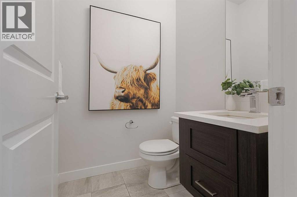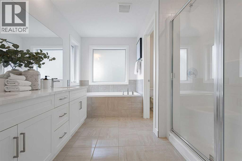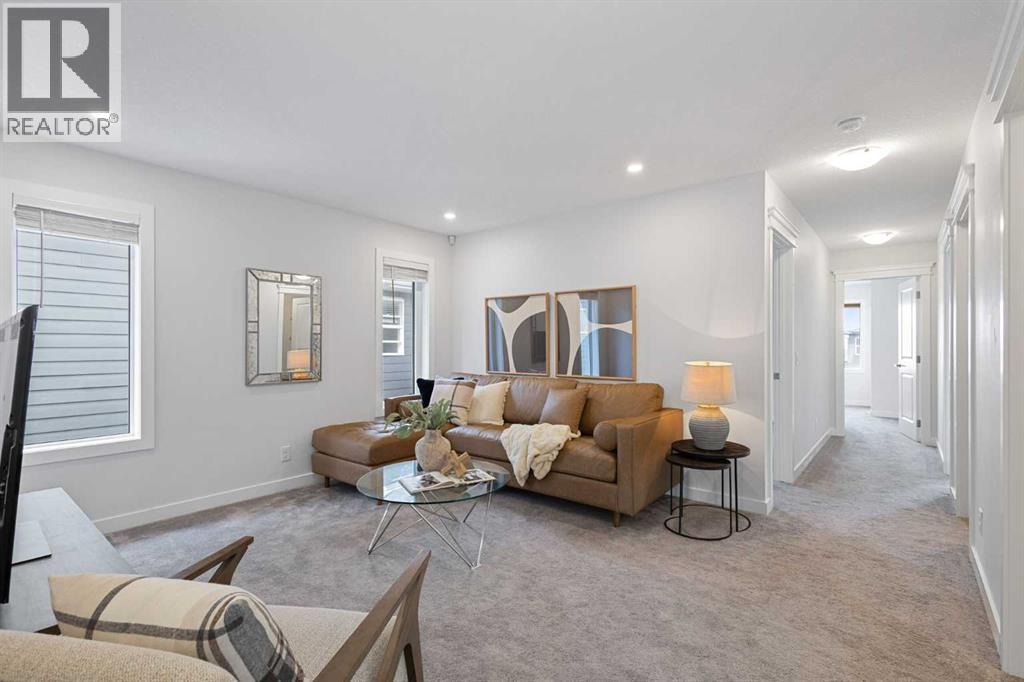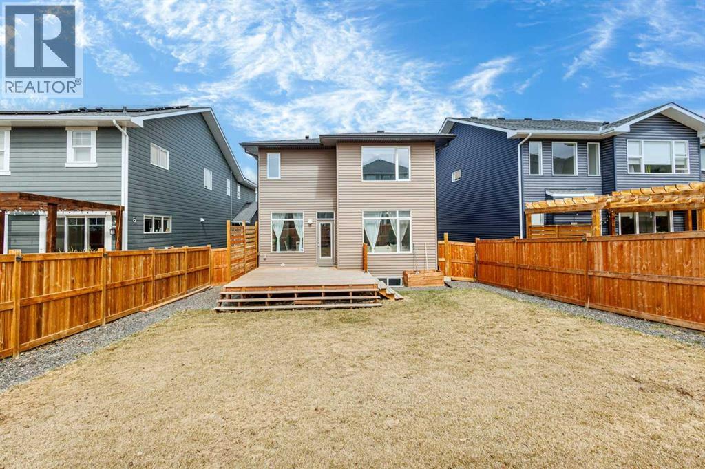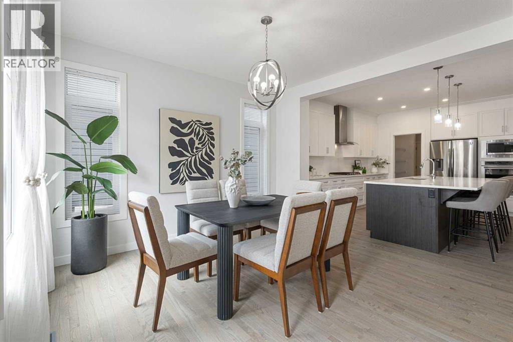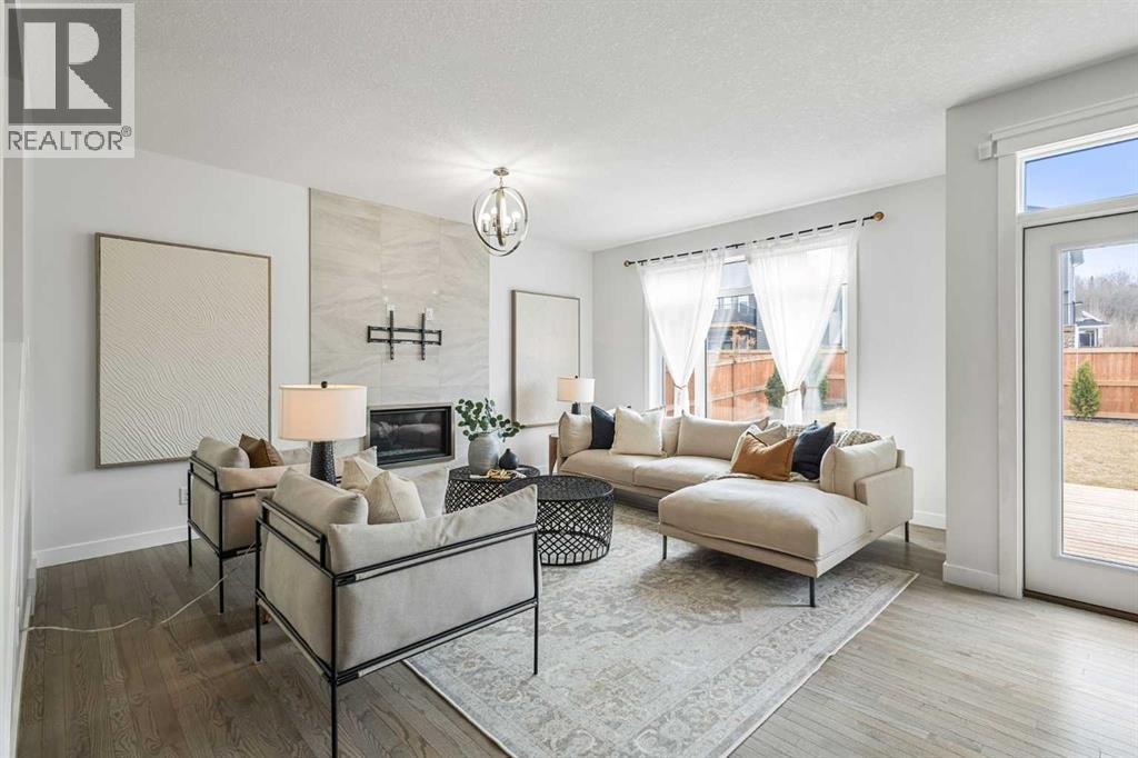 An exceptional luxury residence offering 2,580 sq. ft. of refined living in the prestigious community of Crestmont, perfectly positioned on a sun-drenched south-facing lot. The grand entry introduces a sophisticated den/office, elevated by designer wallpaper and an elegant ambiance. The gourmet kitchen is a true showpiece, featuring crown-moulded cabinetry, an expansive quartz island, premium built-in appliances including a wall oven and microwave, a striking chimney hood fan, and a gas cooktop—crafted for both everyday living and upscale entertaining.The main living area is anchored by a stunning full-height tiled fireplace, creating a warm yet dramatic focal point. Step outside to a beautifully curated backyard retreat, complete with a massive deck designed for seamless indoor-outdoor living and private relaxation.Upstairs, the home continues to impress with four generously sized bedrooms, including an oversized primary suite offering a luxurious escape, along with a spacious bonus room ideal for elevated family living or entertainment.Set against a breathtaking mountain backdrop, Crestmont offers unparalleled access to scenic pathways, nature, and panoramic views. Ideally located just minutes from WinSport Olympic Park and the Calgary Farmers’ Market West, less than 20 minutes to downtown Calgary, and approximately one hour to the iconic Banff National Park—this is elevated living at its finest. (id:63190)