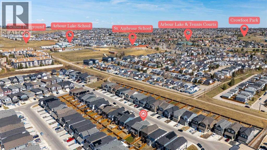 Welcome to this exceptional, like-new home in the highly coveted lake community of Arbour Lake - where modern design meets one of NW Calgary’s most desirable lifestyles. This meticulously maintained home offers the rare opportunity to enjoy a newer build without the wait, in a fully established neighbourhood. Boasting over 2,000 square feet above grade, the main floor delivers both impact and functionality. The open-concept layout is anchored by a stunning kitchen featuring a large central island, abundant cabinetry, and a dedicated pantry - seamlessly connecting to the dining area and spacious living room, creating the perfect environment for entertaining or everyday living. A main floor office and full bathroom add versatility that today’s buyers demand. Upstairs, the layout is designed with intention. A central bonus room provides separation and flexibility, ideal for a media space or family retreat. The primary suite is a true standout - generous in size with a walk-in closet and a well-appointed 5-piece ensuite. Two additional bedrooms, a full bathroom, and upper-level laundry complete a highly functional upper floor. The unfinished basement offers over 600 square feet of future potential - ready to be transformed to suit your lifestyle. What truly sets this home apart is its location. Arbour Lake is one of Calgary’s only NW lake communities, offering year-round lake access, scenic pathways, parks, and mountain views - all while being minutes from schools, shopping, and transit. A rare combination: newer construction, proven location, and immediate availability. Opportunities like this in Arbour Lake don’t come up often. Book your showing today! (id:63190)
