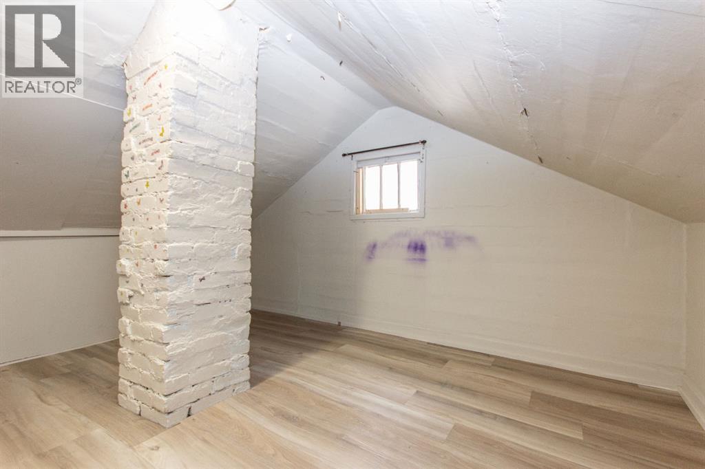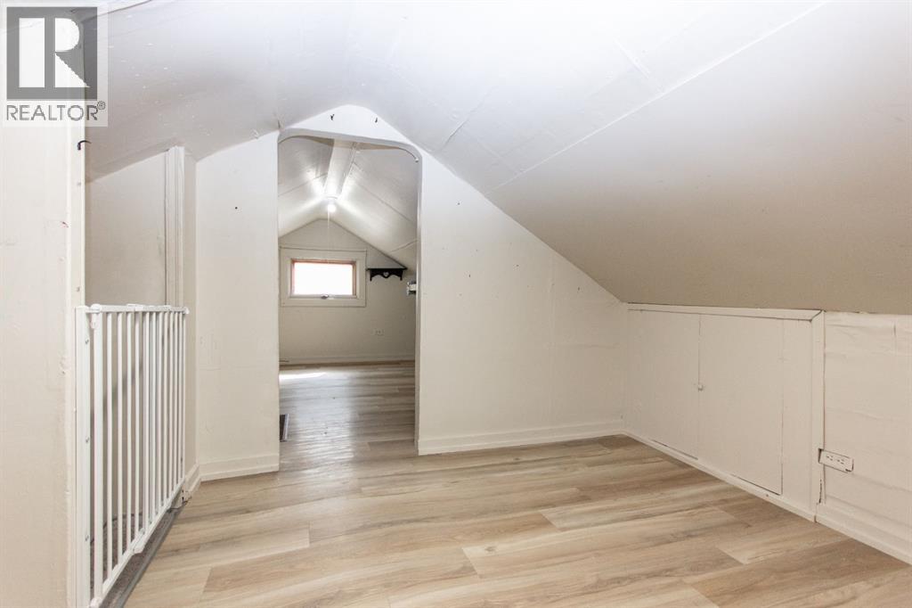 SOUTH HILL REDEVELOPMENT/INVESTMENT OPPORTUNITY on a large 48' x 134' lot zoned R-M for multi-family. The property is located within walking distance of shopping, restaurants, downtown amenities, and Red Deer Regional Hospital. The existing 1.5 storey home has seen some recent updates including vinyl plank flooring, an updated kitchen with newer cabinetry, countertops, and appliances, plus a renovated 4-piece bathroom with updated tub, tile surround, and vanity. Other improvements include PEX plumbing lines and a high-efficiency furnace. The main floor offers a functional layout with two bedrooms, a bright living room, and spacious kitchen area. The upper level would be best suited for storage, hobby space, or a kids' play area. The basement remains unfinished but includes laundry and a walk-up exit to a covered exterior storage area with direct access to the backyard. Outside, the extra deep yard and rear alley access create flexibility for future development plans or parking. The R-M zoning and lot dimensions make this property well-suited for a range of future development configurations. (id:63190)