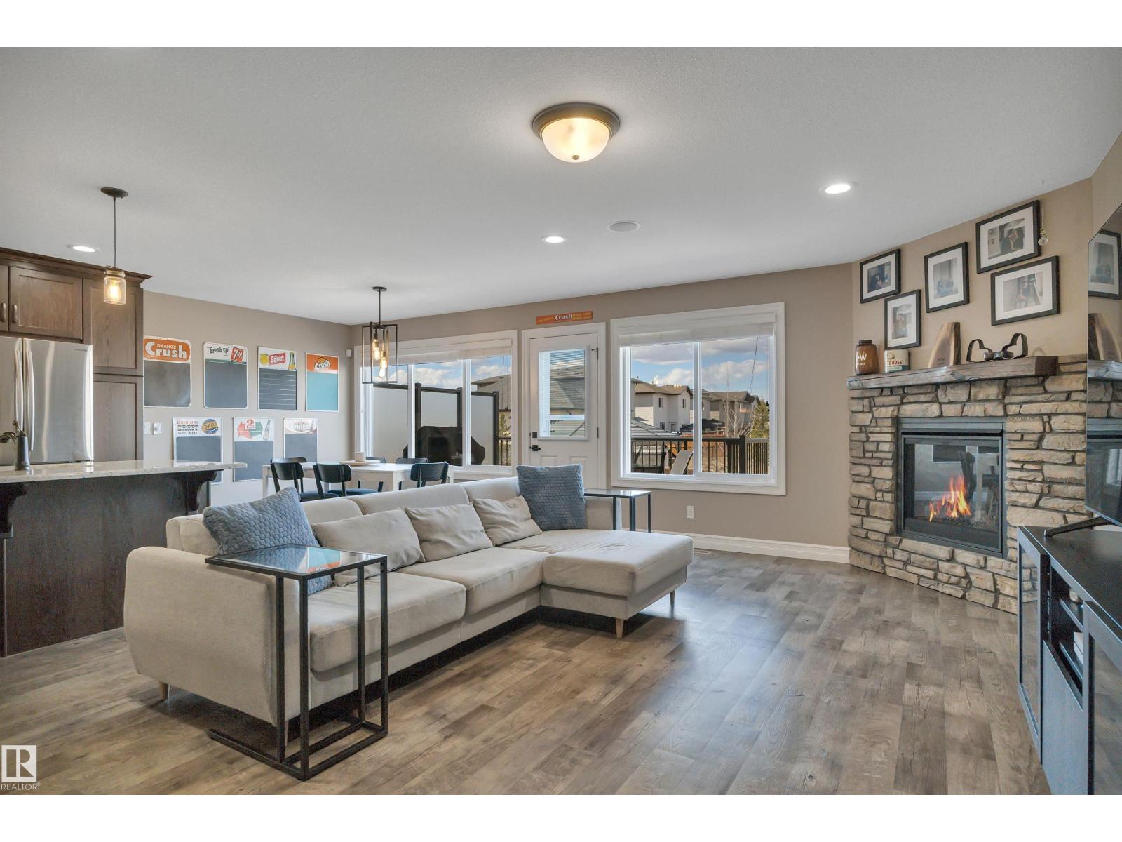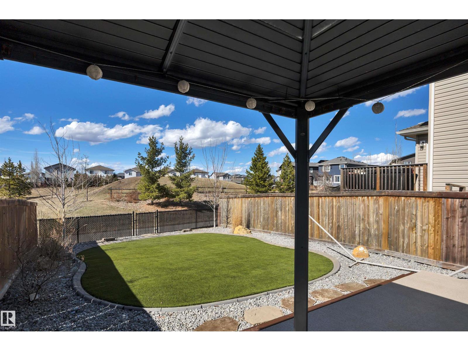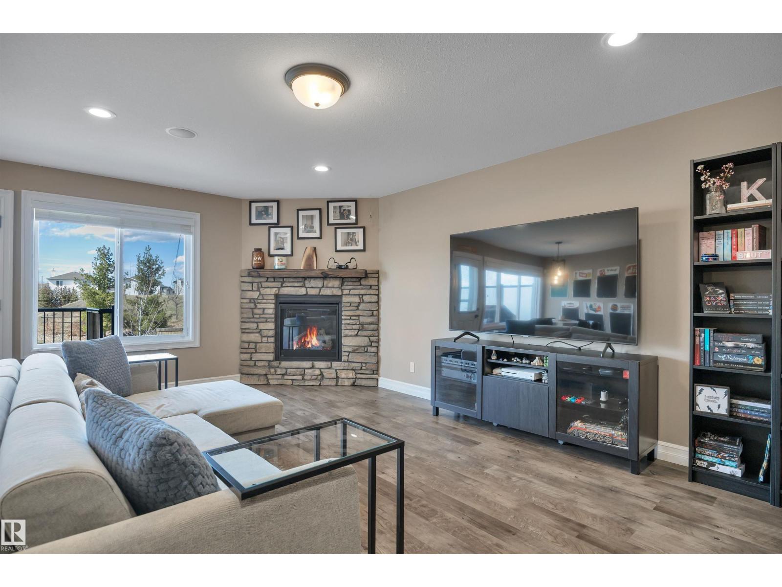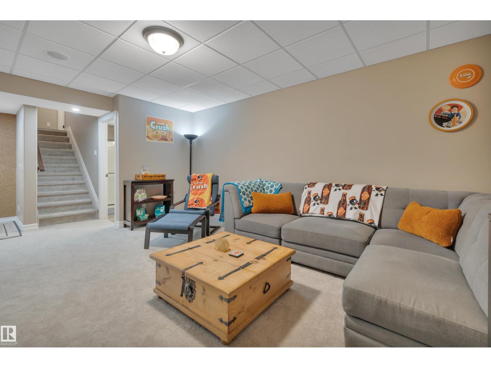 MAINTENANCE FREE YARD! BACKING GREENSPACE! 24' DEEP HEATED GARAGE! Is this a show home...its better! This 1844 sq ft 4 bed, 3.5 bath TURNKEY Santos Construction duplex shows a 10 & is loaded with value! Feat: AC, heated garage w/ floor drain, surround sound speaker system, gas fireplace, newer washer & dryer, 2 tier duradeck & composite boards, artificial turf & rock, & more! Open concept main floor w/ spacious kitchen w/ granite countertops, S/S appliances, & corner pantry. Window of walls provides tons of natural lighting to views behind. Upstairs brings 3 beds inc the primary bed w/ stunning 4 pce ensuite & custom shower & walk-in closet, laundry, & 4 pce bath. The professionally finished basement is well designed, w/ large rec room for movies, 4th bedroom, 3 pce bath, & storage. Your backyard is incredible! Summer oasis for your natural gas BBQ, entertaining & relaxing with no grass back there! Located in a quiet cul de sac, walking distance to the Dino Park & trails. Amazing package for the price! (id:63190)
