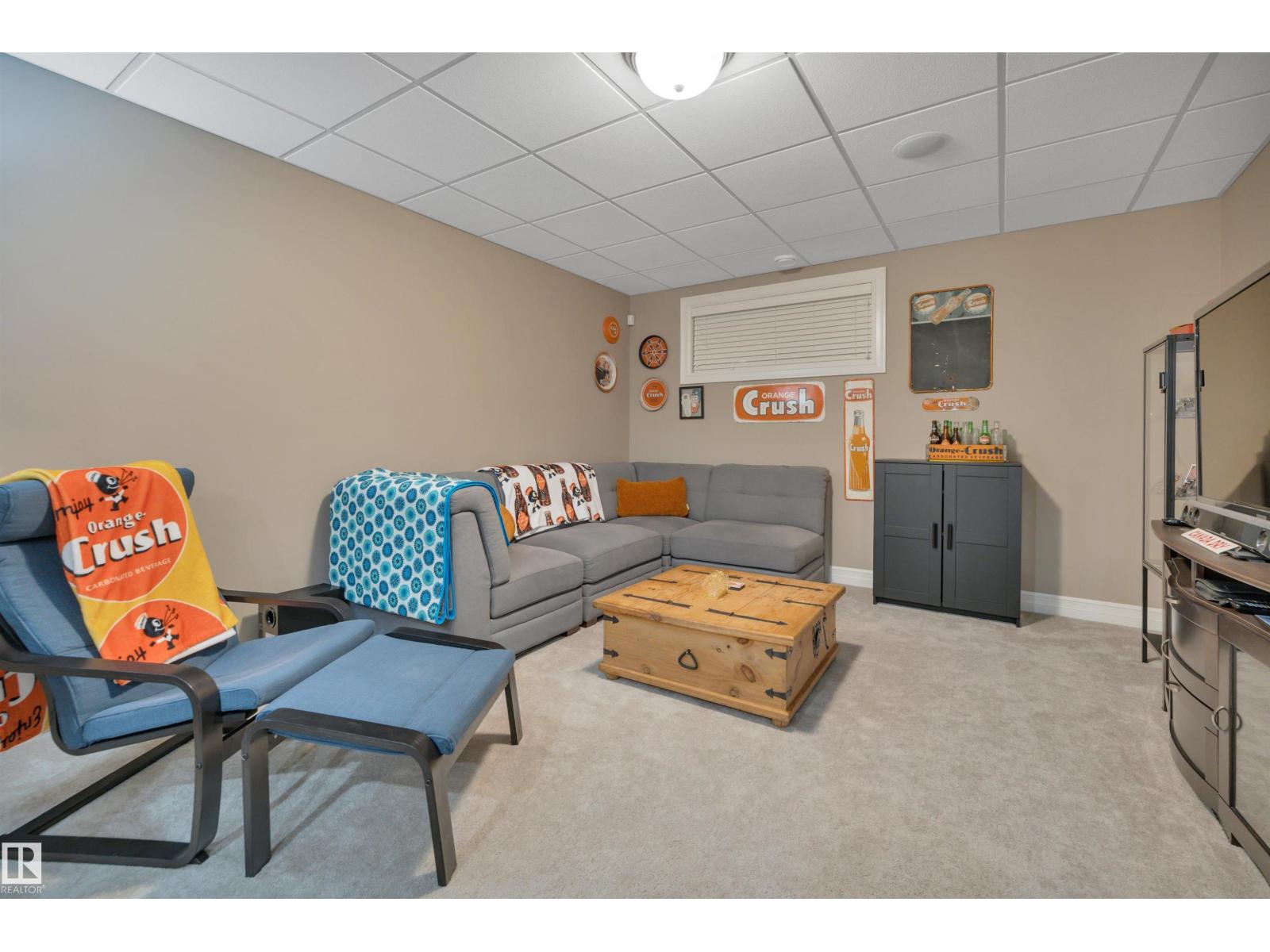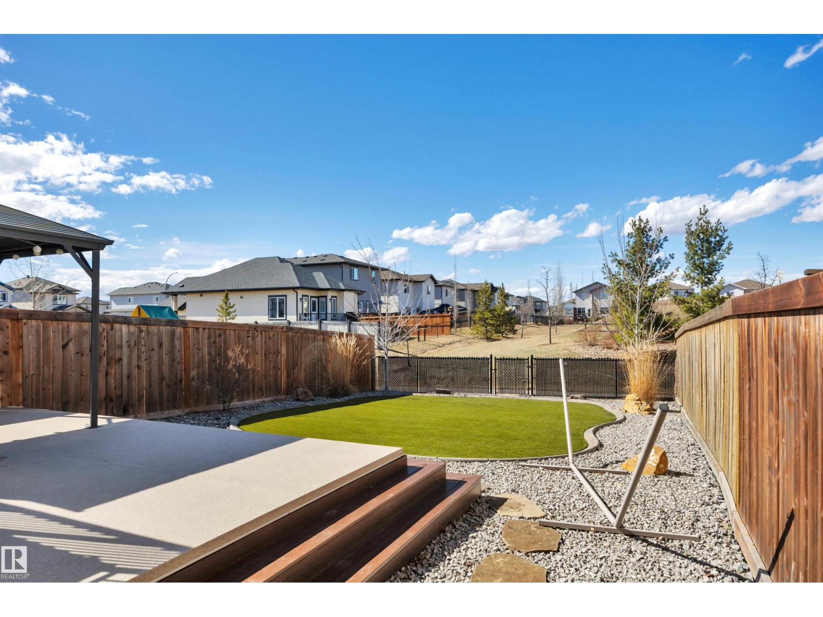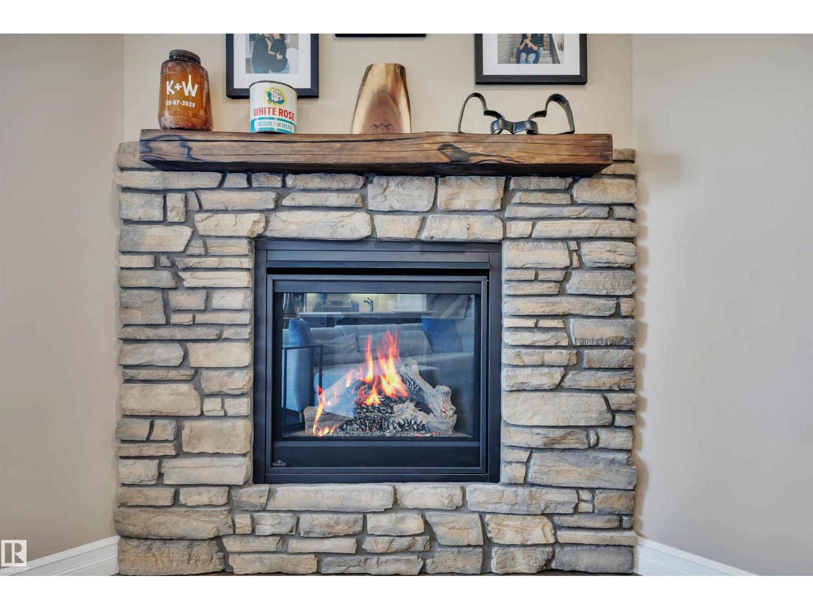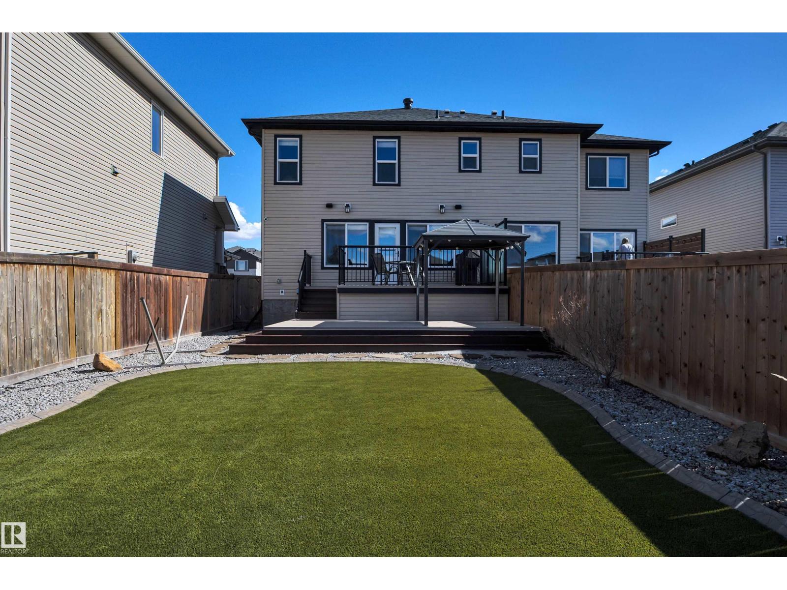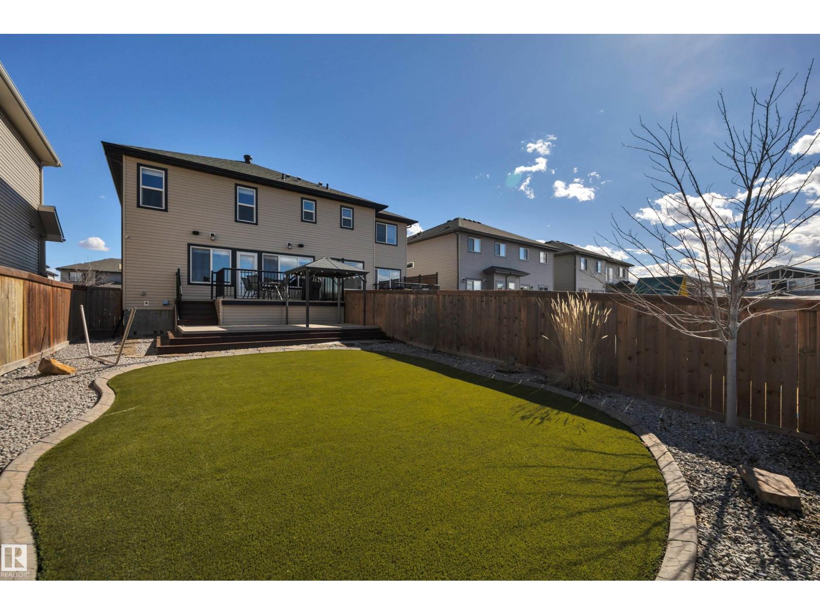 MAINTENANCE FREE YARD! BACKING GREENSPACE! 24' DEEP HEATED GARAGE! Is this a show home...its better! This 1844 sq ft 4 bed, 3.5 bath TURNKEY Santos Construction duplex shows a 10 & is loaded with value! Feat: AC, heated garage w/ floor drain, surround sound speaker system, gas fireplace, newer washer & dryer, 2 tier duradeck & composite boards, artificial turf & rock, & more! Open concept main floor w/ spacious kitchen w/ granite countertops, S/S appliances, & corner pantry. Window of walls provides tons of natural lighting to views behind. Upstairs brings 3 beds inc the primary bed w/ stunning 4 pce ensuite & custom shower & walk-in closet, laundry, & 4 pce bath. The professionally finished basement is well designed, w/ large rec room for movies, 4th bedroom, 3 pce bath, & storage. Your backyard is incredible! Summer oasis for your natural gas BBQ, entertaining & relaxing with no grass back there! Located in a quiet cul de sac, walking distance to the Dino Park & trails. Amazing package for the price! (id:63190)