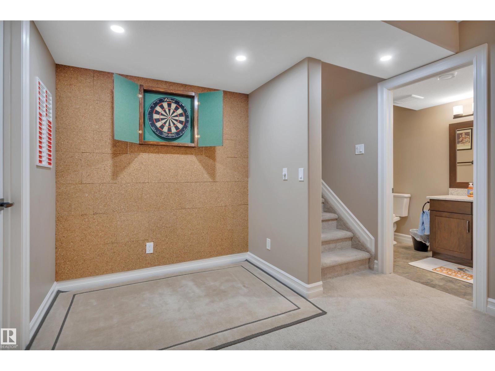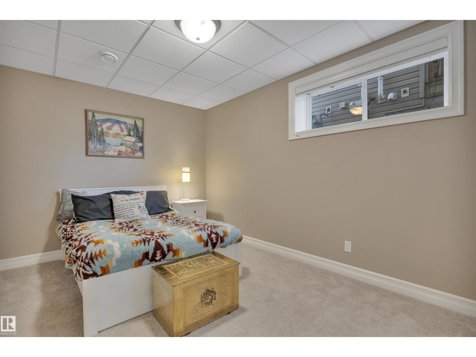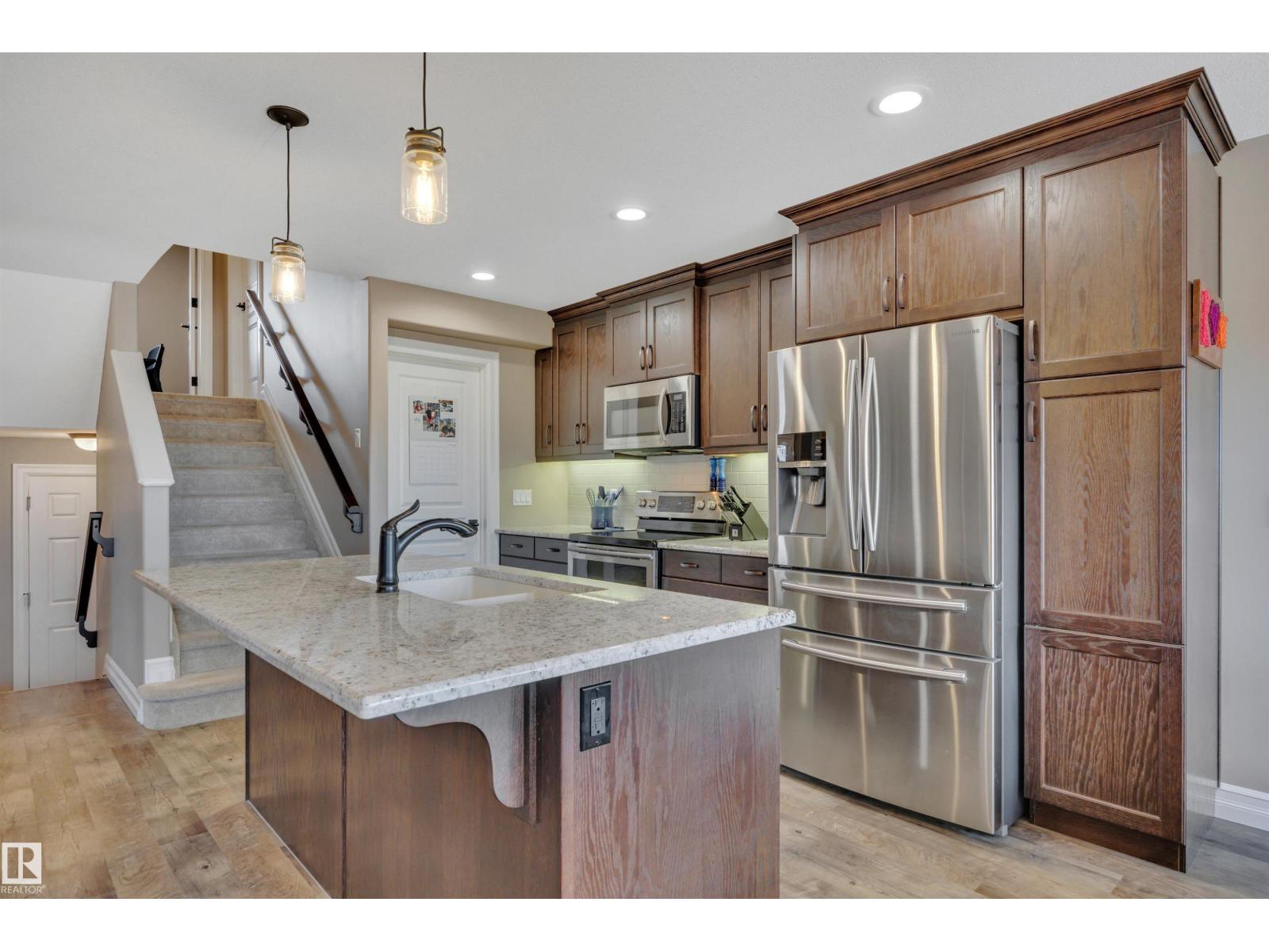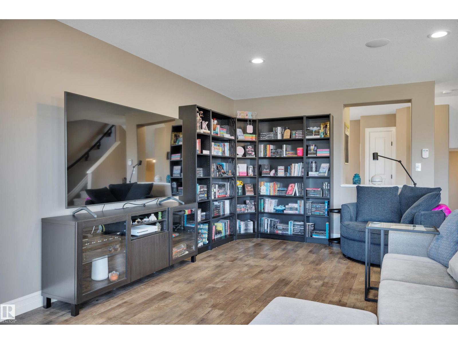 MAINTENANCE FREE YARD! BACKING GREENSPACE! 24' DEEP HEATED GARAGE! Is this a show home...its better! This 1844 sq ft 4 bed, 3.5 bath TURNKEY Santos Construction duplex shows a 10 & is loaded with value! Feat: AC, heated garage w/ floor drain, surround sound speaker system, gas fireplace, newer washer & dryer, 2 tier duradeck & composite boards, artificial turf & rock, & more! Open concept main floor w/ spacious kitchen w/ granite countertops, S/S appliances, & corner pantry. Window of walls provides tons of natural lighting to views behind. Upstairs brings 3 beds inc the primary bed w/ stunning 4 pce ensuite & custom shower & walk-in closet, laundry, & 4 pce bath. The professionally finished basement is well designed, w/ large rec room for movies, 4th bedroom, 3 pce bath, & storage. Your backyard is incredible! Summer oasis for your natural gas BBQ, entertaining & relaxing with no grass back there! Located in a quiet cul de sac, walking distance to the Dino Park & trails. Amazing package for the price! (id:63190)