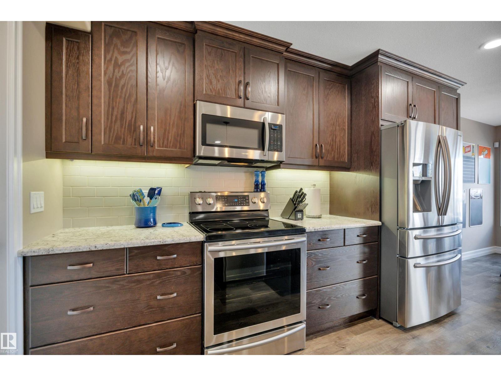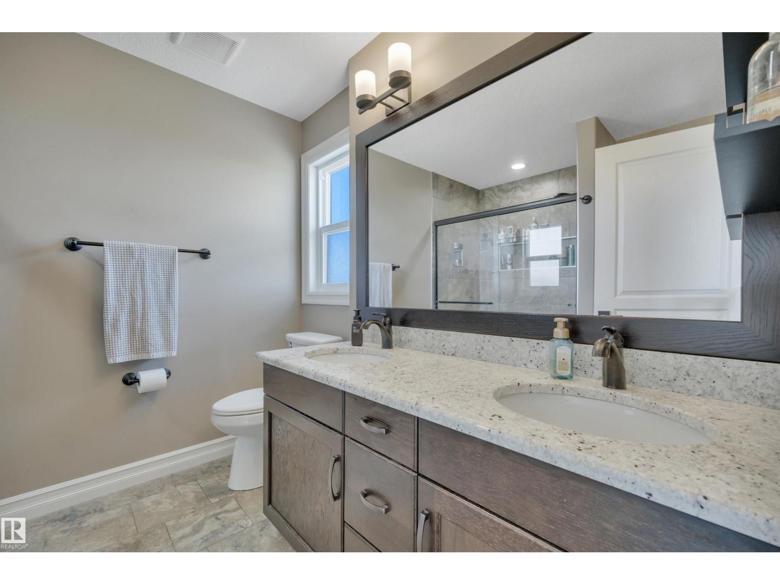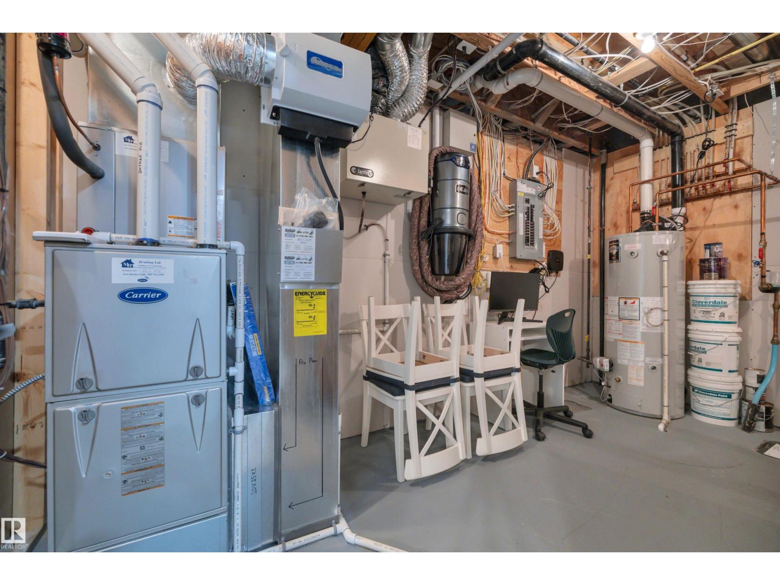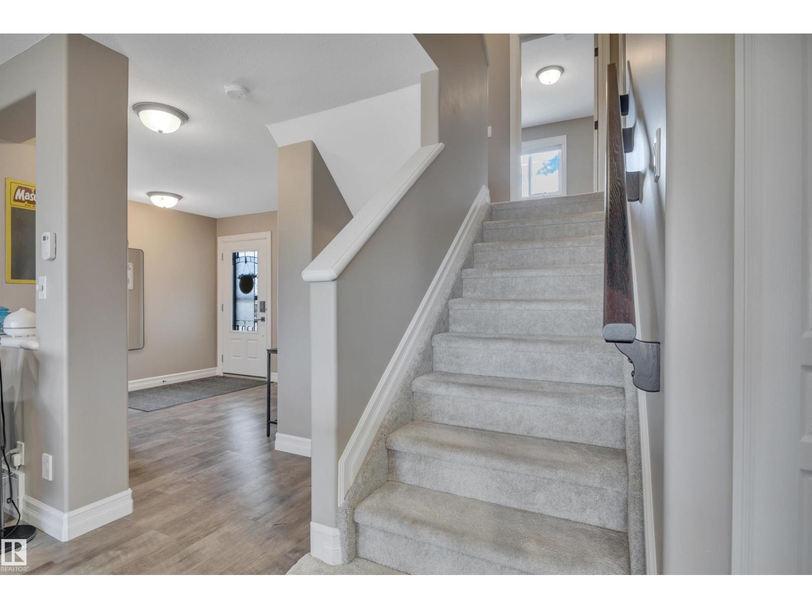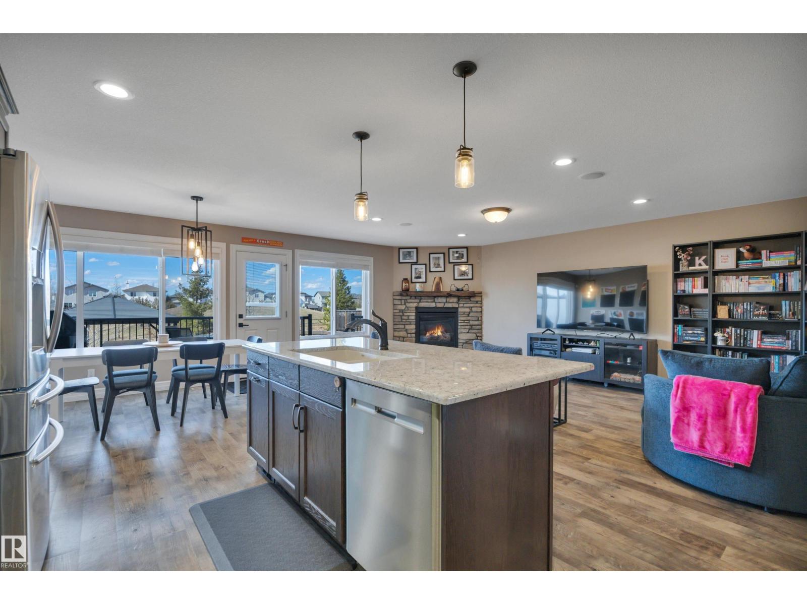 MAINTENANCE FREE YARD! BACKING GREENSPACE! 24' DEEP HEATED GARAGE! Is this a show home...its better! This 1844 sq ft 4 bed, 3.5 bath TURNKEY Santos Construction duplex shows a 10 & is loaded with value! Feat: AC, heated garage w/ floor drain, surround sound speaker system, gas fireplace, newer washer & dryer, 2 tier duradeck & composite boards, artificial turf & rock, & more! Open concept main floor w/ spacious kitchen w/ granite countertops, S/S appliances, & corner pantry. Window of walls provides tons of natural lighting to views behind. Upstairs brings 3 beds inc the primary bed w/ stunning 4 pce ensuite & custom shower & walk-in closet, laundry, & 4 pce bath. The professionally finished basement is well designed, w/ large rec room for movies, 4th bedroom, 3 pce bath, & storage. Your backyard is incredible! Summer oasis for your natural gas BBQ, entertaining & relaxing with no grass back there! Located in a quiet cul de sac, walking distance to the Dino Park & trails. Amazing package for the price! (id:63190)