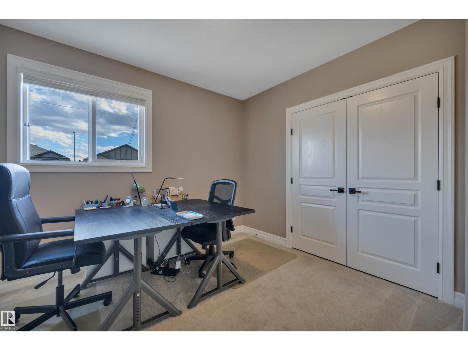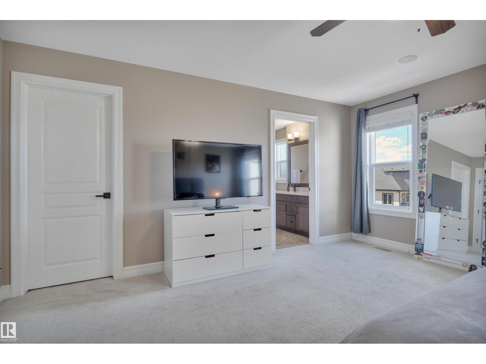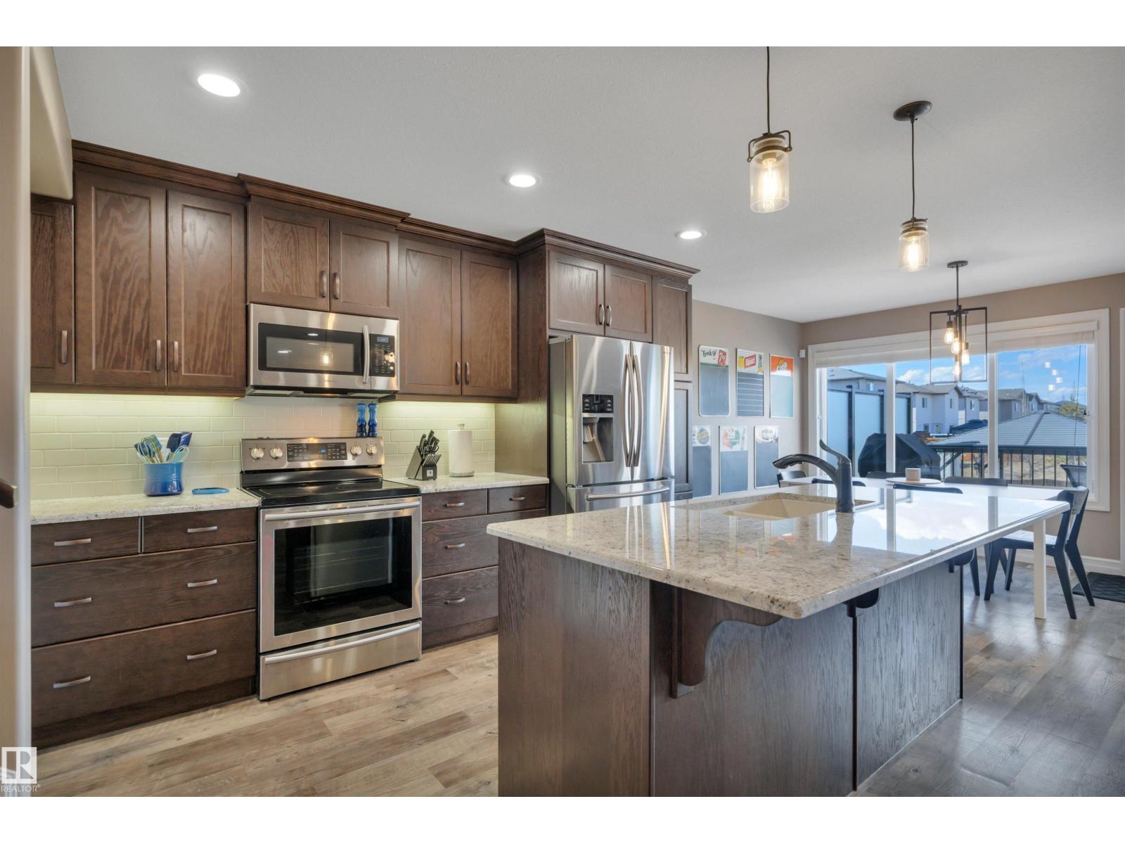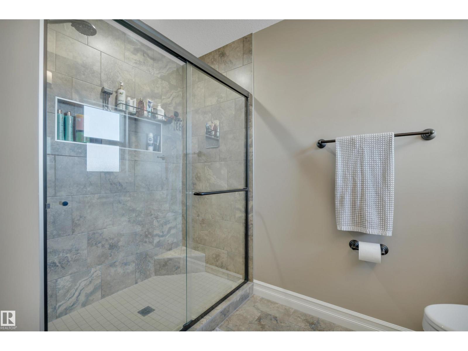 MAINTENANCE FREE YARD! BACKING GREENSPACE! 24' DEEP HEATED GARAGE! Is this a show home...its better! This 1844 sq ft 4 bed, 3.5 bath TURNKEY Santos Construction duplex shows a 10 & is loaded with value! Feat: AC, heated garage w/ floor drain, surround sound speaker system, gas fireplace, newer washer & dryer, 2 tier duradeck & composite boards, artificial turf & rock, & more! Open concept main floor w/ spacious kitchen w/ granite countertops, S/S appliances, & corner pantry. Window of walls provides tons of natural lighting to views behind. Upstairs brings 3 beds inc the primary bed w/ stunning 4 pce ensuite & custom shower & walk-in closet, laundry, & 4 pce bath. The professionally finished basement is well designed, w/ large rec room for movies, 4th bedroom, 3 pce bath, & storage. Your backyard is incredible! Summer oasis for your natural gas BBQ, entertaining & relaxing with no grass back there! Located in a quiet cul de sac, walking distance to the Dino Park & trails. Amazing package for the price! (id:63190)