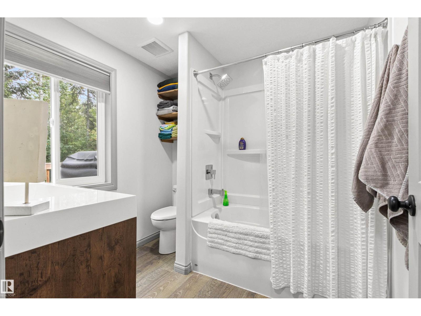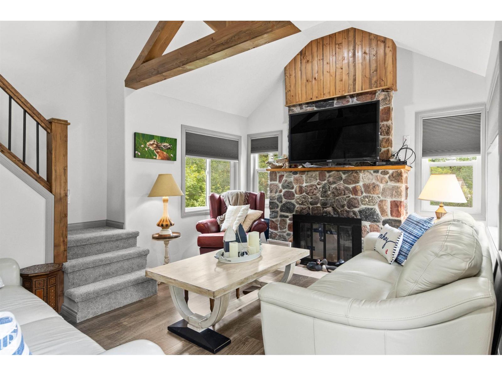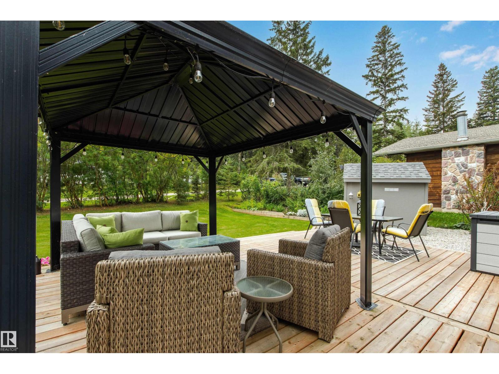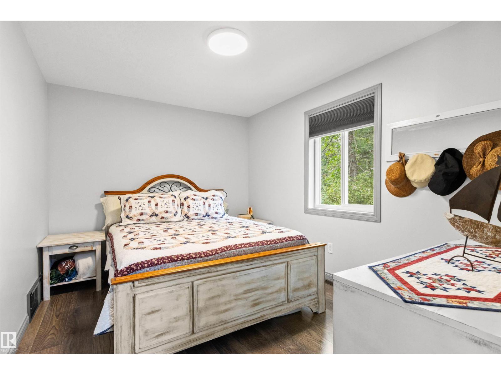 Nestled among mature trees on a private double lot backing onto a creek in sought-after Seba Beach, this 1.5-storey retreat offers exceptional privacy & a peaceful natural setting. Fully renovated top to bottom in 2020, the home blends modern comfort w/ timeless character, highlighted by vaulted ceilings, an exposed timber beam truss, and the original wood-burning stone fireplace. The kitchen is cleanly designed w/ contemporary finishes & flows seamlessly into the main living area, complemented by a spacious 4-piece bath. The main floor hosts the primary bedroom, while the loft above provides a flexible second sleeping area ideal for guests or family. Outdoors, the property features a covered front gazebo, dedicated fire pit area & an expansive, tree-lined yard that provides ideal privacy. Additional upgrades: roof, high-efficiency furnace, hot water tank & pressure tank. Located just a short walk to the public beach and local amenities, this turnkey property is a rare opportunity on a premium double lot (id:63190)