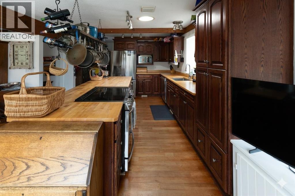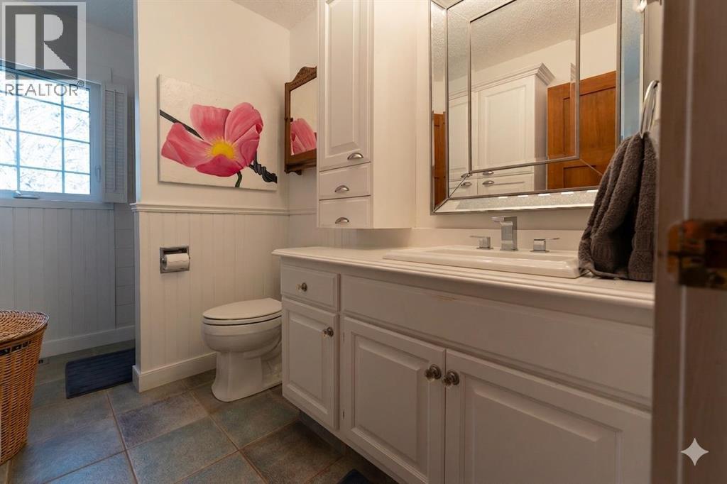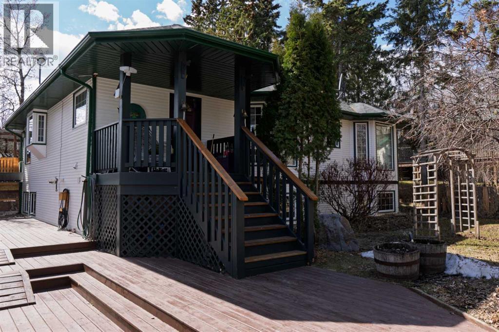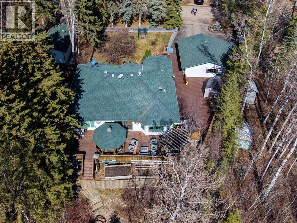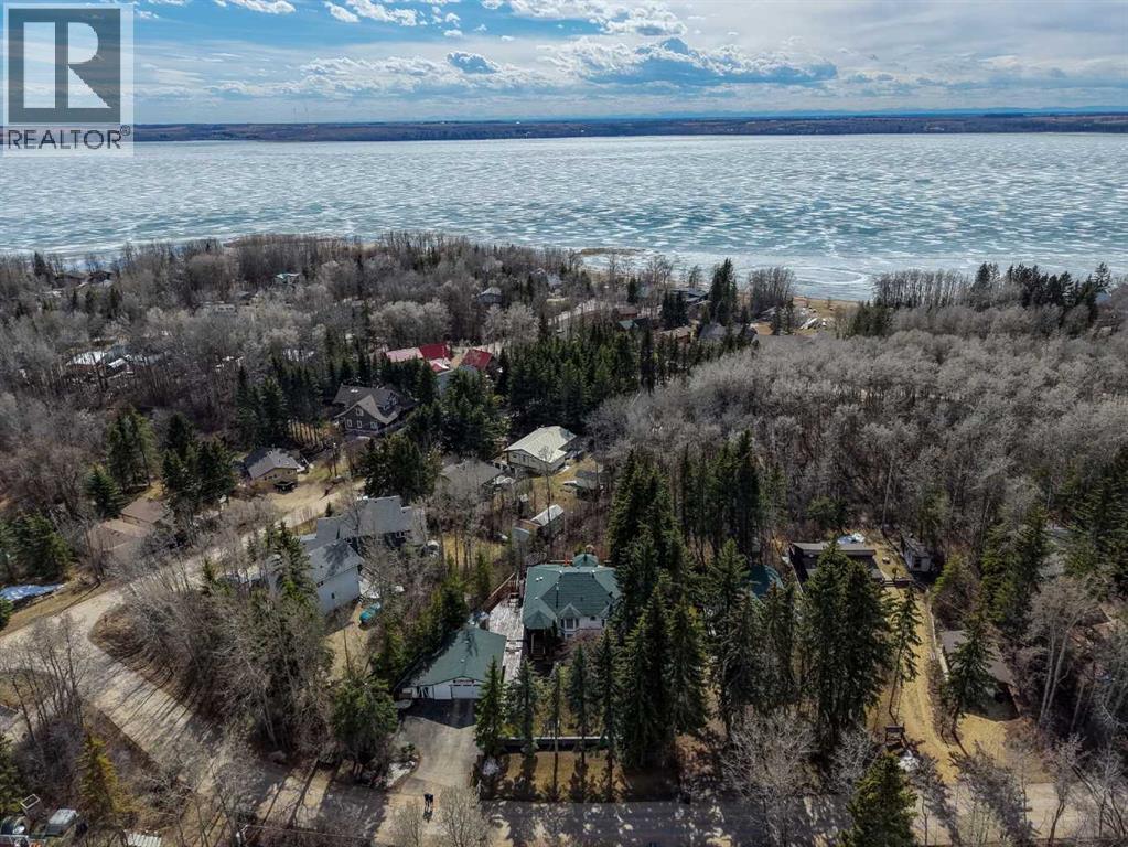 Located just two blocks from Sylvan Lake in the highly sought-after Sunbreaker Cove subdivision, this beautifully maintained 4-bedroom b-level offers the perfect blend of year-round living and lake lifestyle. Set on a private, treed lot backing onto a natural reserve, this property delivers exceptional outdoor space, functional upgrades, and true character throughout. The main floor features vaulted ceilings with exposed wood beams in the living room, dining area and kitchen, creating a warm and inviting living space anchored by a stunning stone-faced wood-burning fireplace and 100 year old redwood flooring. The kitchen features an island and new stainless steel appliances (2025). A garden bay window in the sunny eating area adds both charm and functionality. Two bedrooms are located on the main level, along with a full 4-piece bath and convenient front-entry mudroom/laundry area. The fully developed basement is designed for entertaining and comfort, offering three additional bedrooms, a spacious family room set up for a home theatre, custom slate pool table, wet bar, and a 3-piece bathroom. In-floor (slab) heating and on-demand hot water provide efficient, year-round comfort. Outdoor living is where this property truly shines. A massive rear deck with gazebo overlooks a treed natural area, creating a private retreat ideal for relaxing or entertaining. Garden doors connect the indoor and outdoor spaces seamlessly. The property also features a covered front porch, paver stone patio, and extensive decking throughout. The property is serviced with a 120' well and is connected to the municipal sewer system (tank, grinder and pump). Additional highlights include: 64’ pier and boat lift with lake access, exterior wheelchair elevator providing full access to the home, newer triple-pane windows (approx. last 10 years), 24’ x 26’ detached garage with attached shed, set up for backup generator power, security system, central vacuum, and water conditioning system. Newer viny l siding and shingles on garage. This is a rare opportunity to own a well-appointed, character home in one of Sylvan Lake’s most desirable lake communities—offering privacy, space, and immediate access to the lake lifestyle. (id:63190)