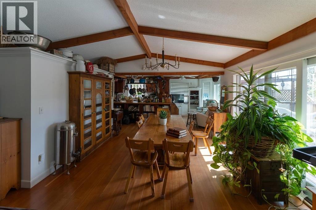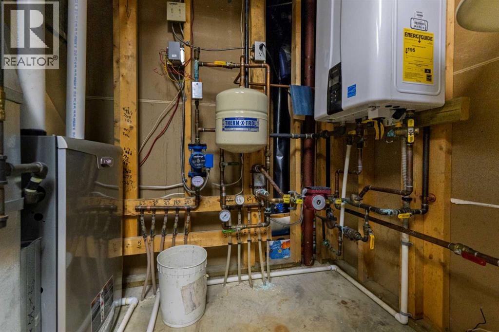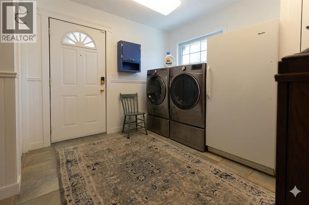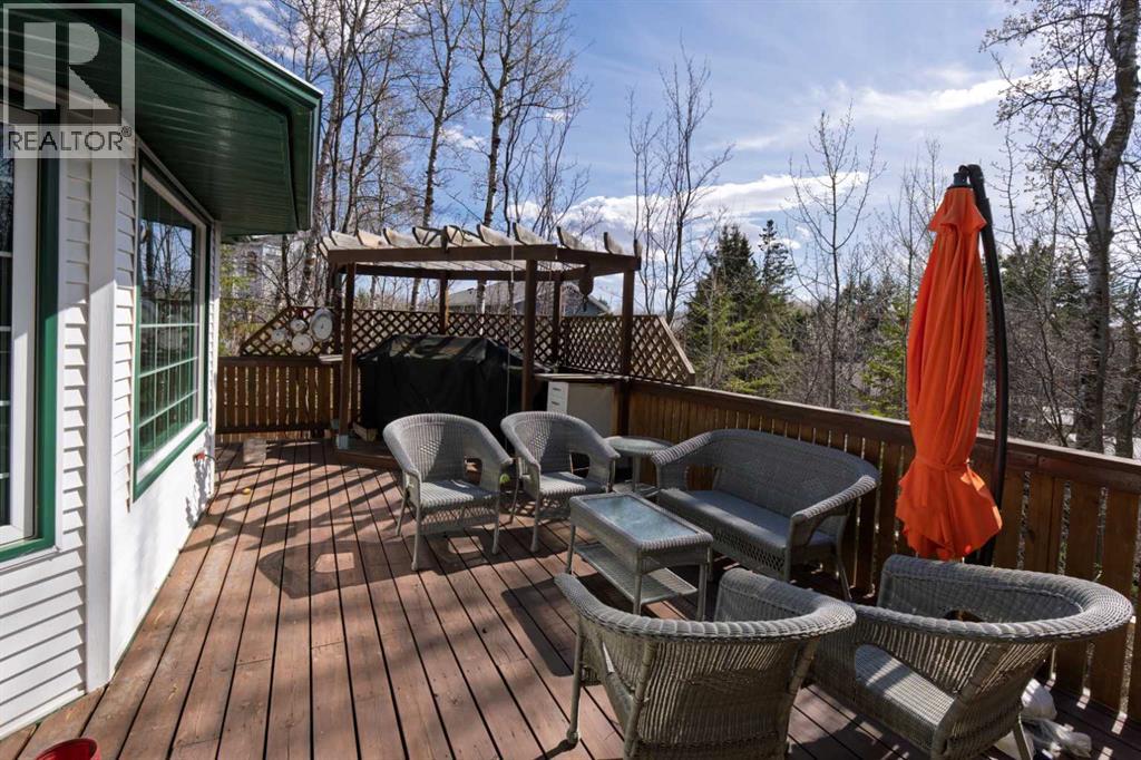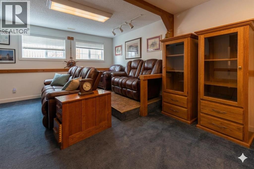 Located just two blocks from Sylvan Lake in the highly sought-after Sunbreaker Cove subdivision, this beautifully maintained 4-bedroom b-level offers the perfect blend of year-round living and lake lifestyle. Set on a private, treed lot backing onto a natural reserve, this property delivers exceptional outdoor space, functional upgrades, and true character throughout. The main floor features vaulted ceilings with exposed wood beams in the living room, dining area and kitchen, creating a warm and inviting living space anchored by a stunning stone-faced wood-burning fireplace and 100 year old redwood flooring. The kitchen features an island and new stainless steel appliances (2025). A garden bay window in the sunny eating area adds both charm and functionality. Two bedrooms are located on the main level, along with a full 4-piece bath and convenient front-entry mudroom/laundry area. The fully developed basement is designed for entertaining and comfort, offering three additional bedrooms, a spacious family room set up for a home theatre, custom slate pool table, wet bar, and a 3-piece bathroom. In-floor (slab) heating and on-demand hot water provide efficient, year-round comfort. Outdoor living is where this property truly shines. A massive rear deck with gazebo overlooks a treed natural area, creating a private retreat ideal for relaxing or entertaining. Garden doors connect the indoor and outdoor spaces seamlessly. The property also features a covered front porch, paver stone patio, and extensive decking throughout. The property is serviced with a 120' well and is connected to the municipal sewer system (tank, grinder and pump). Additional highlights include: 64’ pier and boat lift with lake access, exterior wheelchair elevator providing full access to the home, newer triple-pane windows (approx. last 10 years), 24’ x 26’ detached garage with attached shed, set up for backup generator power, security system, central vacuum, and water conditioning system. Newer viny l siding and shingles on garage. This is a rare opportunity to own a well-appointed, character home in one of Sylvan Lake’s most desirable lake communities—offering privacy, space, and immediate access to the lake lifestyle. (id:63190)