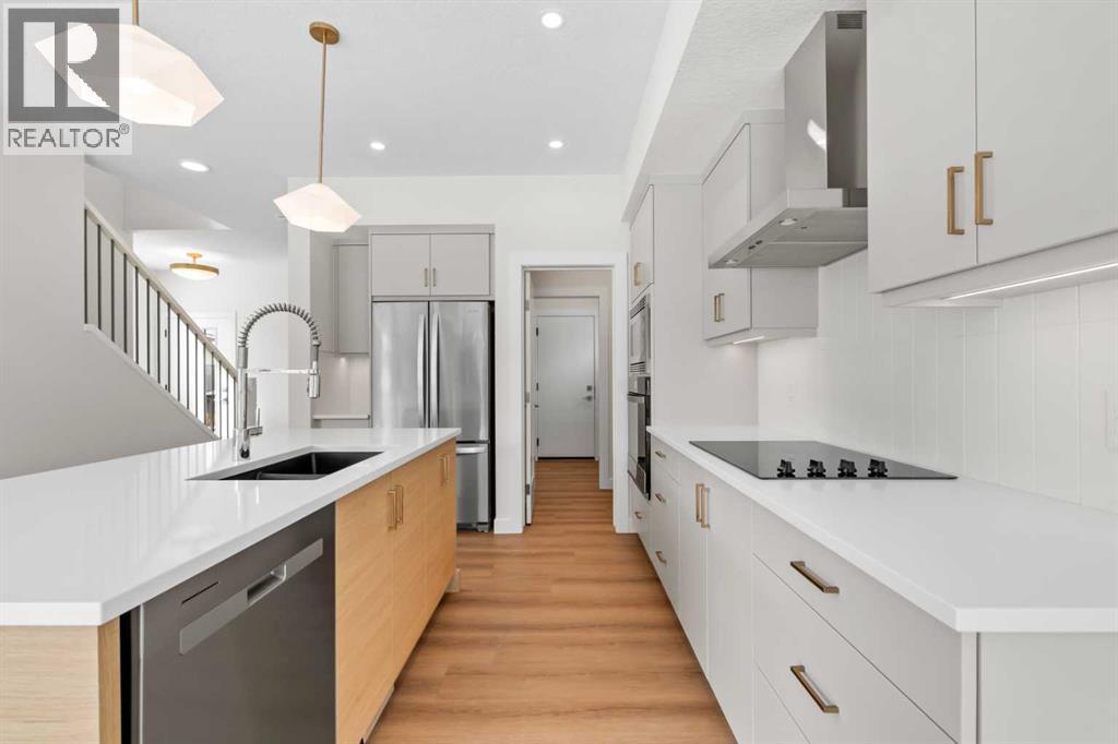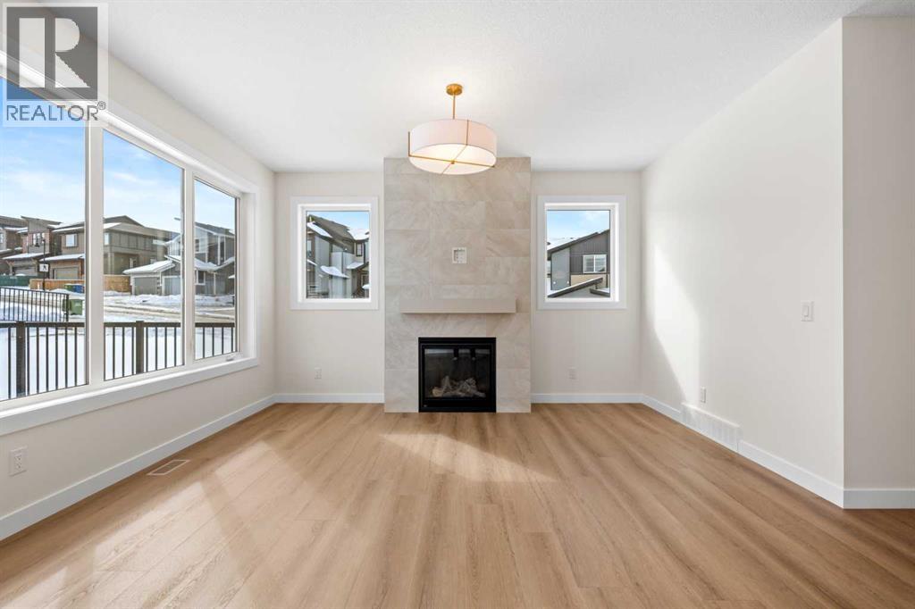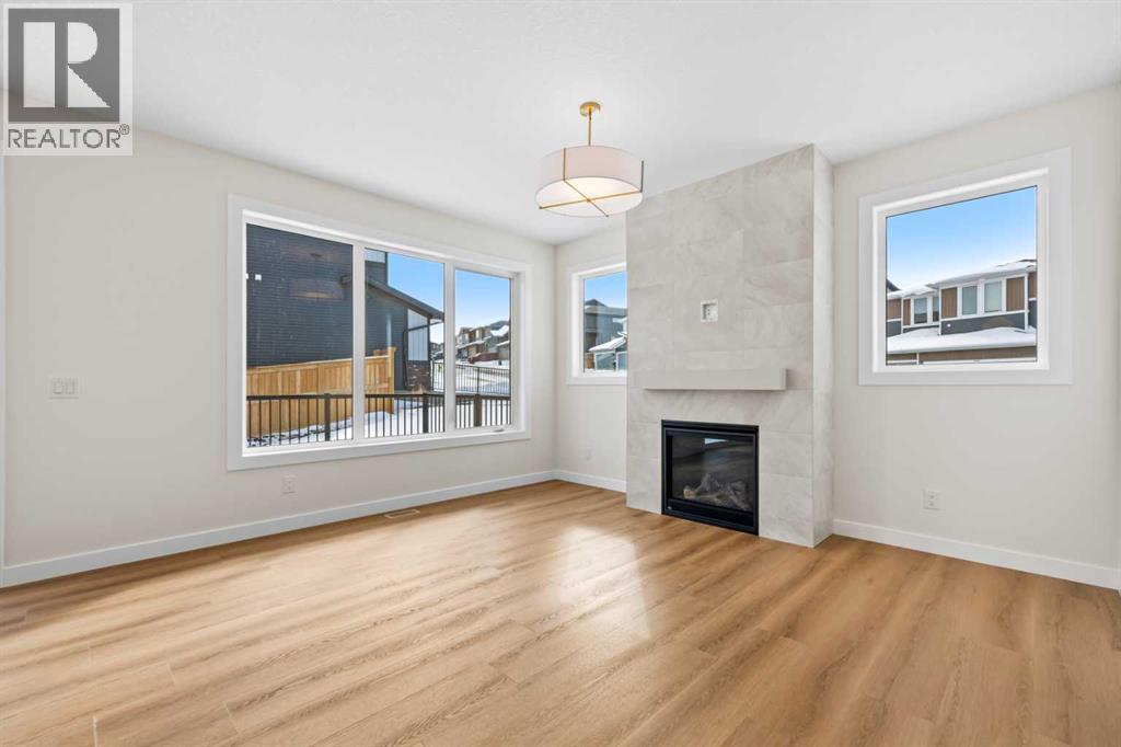 Welcome to 305 Precedence View, a brand new home built by Renova, where modern design meets refined comfort in one of Cochrane’s most desirable settings. Thoughtfully crafted with attention to detail, this beautifully appointed residence offers an elegant balance of open-concept living and functional sophistication, creating an atmosphere that is both inviting and impressive. Expansive windows invite natural light throughout the home, enhancing the sense of space while highlighting contemporary finishes and carefully selected materials that elevate everyday living.The main living area is designed for both connection and relaxation, seamlessly integrating the kitchen, dining, and living spaces to support effortless entertaining and comfortable family life. A well-planned layout encourages easy flow between rooms, while timeless design elements create a warm yet upscale aesthetic. The kitchen provides an inspiring setting for culinary creativity, complemented by ample workspace, stylish cabinetry, and quality finishes that contribute to a polished presentation.Upstairs, the private living quarters provide a serene retreat designed to support both rest and productivity. The primary suite offers a calming escape with generous proportions, a spacious walk-in closet, and a beautifully designed ensuite that delivers a spa-inspired experience. Additional bedrooms offer flexibility for family, guests, or a home office, while the bonus room provides valuable extra living space ideal for movie nights, a play area, or a quiet reading lounge. Practical elements such as upper-level laundry enhance convenience and daily ease.Every aspect of the home has been carefully considered to create a harmonious blend of style and livability, from the thoughtful floor plan to the refined interior selections. The property offers the opportunity to enjoy a modern lifestyle within a setting that feels both elevated and welcoming, making it an excellent choice for those seeking quality cra ftsmanship paired with contemporary comfort.Living in Riversong in Cochrane means embracing a lifestyle connected to nature while remaining close to urban conveniences. Positioned near the Bow River valley, the community is known for its scenic pathways, mountain views, and easy access to parks, schools, and everyday amenities. Residents enjoy proximity to downtown Cochrane, convenient routes to Calgary, and quick escapes to the Rocky Mountains, creating the perfect balance between peaceful surroundings and accessibility. With its network of walking trails, family-friendly atmosphere, and strong sense of community, Riversong offers an exceptional place to call home. Book your private showing today! (id:63190)