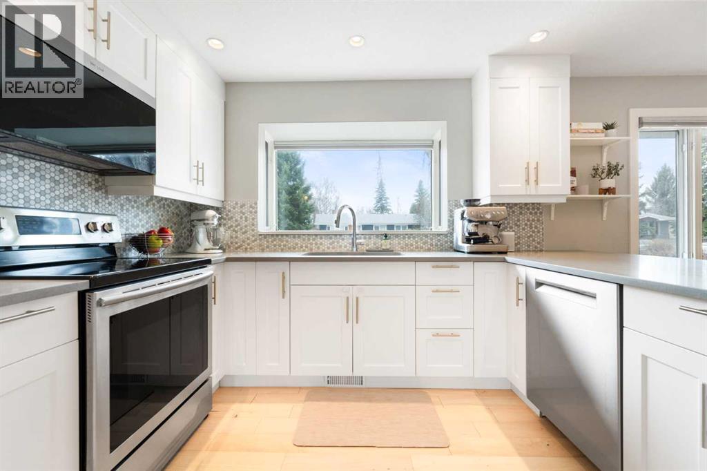 Welcome to this beautifully renovated 4-bedroom home in the highly desirable community of West Haysboro—where modern upgrades meet unbeatable location.Step inside to discover a bright, open-concept main floor designed for both everyday living and effortless entertaining. The spacious living room is flooded with natural light from large south-facing bay windows, perfectly complementing the rich hardwood floors throughout. The kitchen is a true standout, featuring quartz countertops, crisp white cabinetry, stainless steel appliances, and a charming bay window above the sink—bringing warmth and light into the heart of the home. Two well-appointed bedrooms, including a serene primary retreat complete with custom closet built-ins, a ceiling fan, and a stylish barn door leading to your private 4-piece ensuite. This spa-inspired space boasts dual sinks, a tiled floor, and a glass-enclosed shower. A second fully renovated 4-piece bathroom completes the upper level.The fully finished basement offers incredible versatility with two additional large bedrooms, a spacious recreation area, and a cozy nook—perfect as a kids’ play space, reading corner, or extra storage zone. You’ll also find a beautifully finished 4-piece bathroom with tiled shower and built-in shelving, along with a convenient laundry area featuring a sink. A split-level landing between the main and lower floors provides direct access to the backyard, adding both function and flow to the home.Additional highlights include air conditioning, a humidifier, high-efficiency hot water tank, and a detached garage. With an amazing yard with stone patio great for enjoying the summer and great place to unwind. Location is everything—and this home truly delivers. Enjoy being minutes from the Southland C-Train station, with easy access to major routes, shopping, dining, and everyday amenities along Macleod Trail. For outdoor enthusiasts, the nearby Glenmore Reservoir offers endless opportunities for walking, biking, and enjoying nature. home Roof (2024) Garage roof(2020) This is a rare opportunity to own a thoughtfully updated home in a mature, well-connected neighborhood—don’t miss it. (id:63190)
