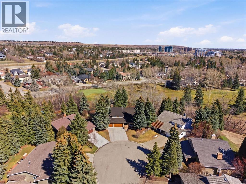 Opportunities like this are exceptionally rare in the prestigious community of Varsity Estates. Beautifully landscaped with mature trees and backing directly onto the Silver Springs Golf Course fairway and a stunning treed ravine area, this exceptional property offers a level of privacy and natural beauty rarely found in the city. The home has been lovingly maintained through the years and offers an amazing chance to secure a stunning location in this elite community Tucked away on a quiet cul-de-sac, creating a peaceful setting that feels worlds away while remaining close to every city convenience.Set on an expansive pie-shaped lot that offers over 10,000 sq ft with an impressive 150-foot wide rear yard, this property delivers both space and seclusion. Stunning stone work and mature landscaping surrounds the home, while the private backyard offers multiple areas to relax, entertain, and enjoy the space, including your very own putting green. It is a setting that is incredibly hard to replicate in Calgary.Inside, the spacious two story home delights with over 2500 sq ft of above grade sq ftg and a bright and functional layout designed for family living. Large windows throughout fill the space with natural light and perfectly frame the surrounding greenery. Soaring cathedral ceilings create an airy first impression, while the main rooms provide ample space for everyday living and entertaining alike.The upper level features four bedrooms, an increasingly hard-to-find layout making this an ideal home for growing families. The fully developed walkout basement adds more additional living space with a spacious family room with fireplace and bar area overlooking the outdoor views and a flex room with large windows creating the perfect space for a games room or fitness area. This level offers a 2 pce powder room and sauna to relax and unwind in. There is opportunity for a 5th bedroom with the addition of an egress window. Whether hosting guests, creating a recreation zo ne, or simply enjoying extra room to spread out, this lower level offers exceptional flexibility.The home is completed with a triple attached heated garage, providing outstanding space for vehicles, storage, hobbies, or workshop needs. A 50 year Euroshied roof was installed in 2014, the furnaces were serviced in 2025 and several windows have been replaced over the years. This is an incredible opportunity to move in and enjoy or renovate to suit your family needs in this incredible location. The possibilities are endless. Varsity Estates is one of Calgary’s most established and sought-after communities, close to schools, parks, pathways, Market Mall, the University of Calgary, and major routes. This is a rare chance to secure a premier lot and an exceptional lifestyle. (id:63190)