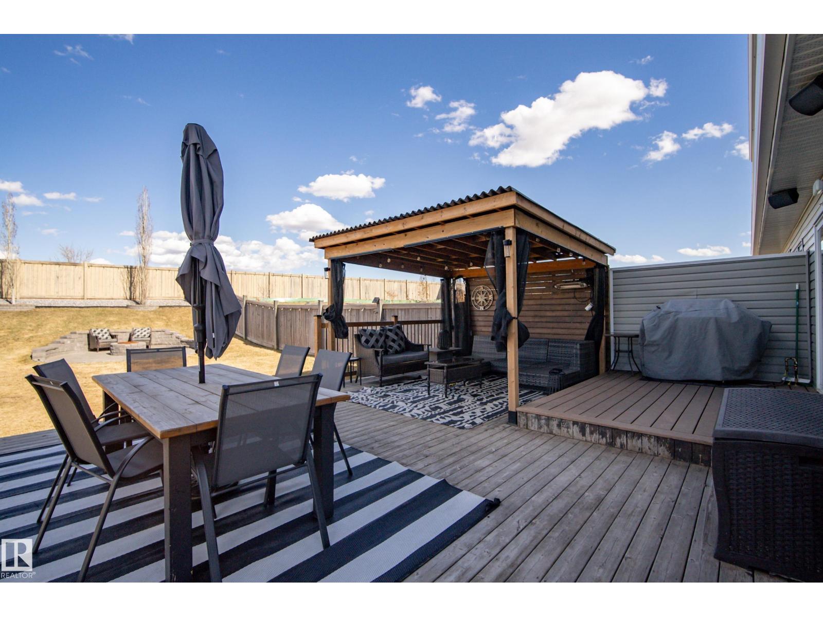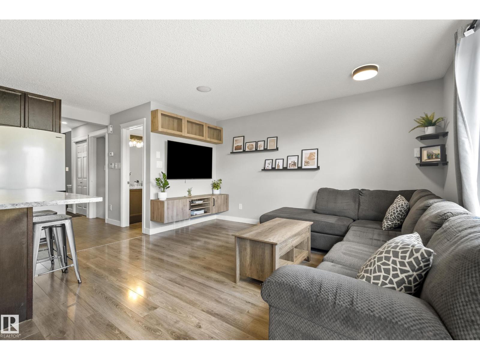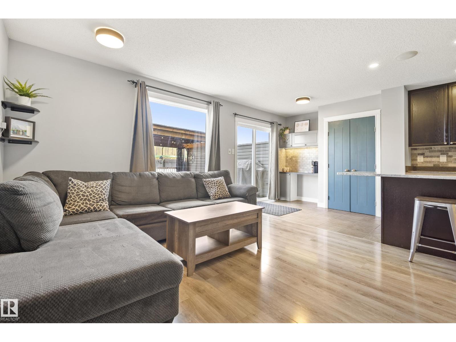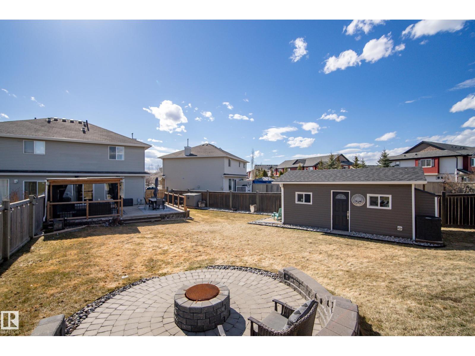 HUGE PIE LOT! This UPGRADED, MODERN half duplex has a backyard that was made for ENTERTAINING!! Situated in a quiet cul-de-sac in the community of Tamarack, this home is MOVE IN READY! 2 LARGE bedrooms, 2.5 baths and a FULLY FINISHED BASEMENT! The primary bedroom comes with his and her closets and a GORGEOUS updated 3 pc bath! The kitchen has TONS of storage, pantry and coffee bar! The basement is perfect for entertaining with a laundry room with extra storage! The backyard has a LARGE deck with gazebo and a MASSIVE shed. Spend your summer nights enjoying the fire pit area and hosting friends and family while enjoying those beautiful Edmonton summer sunsets! (id:63190)