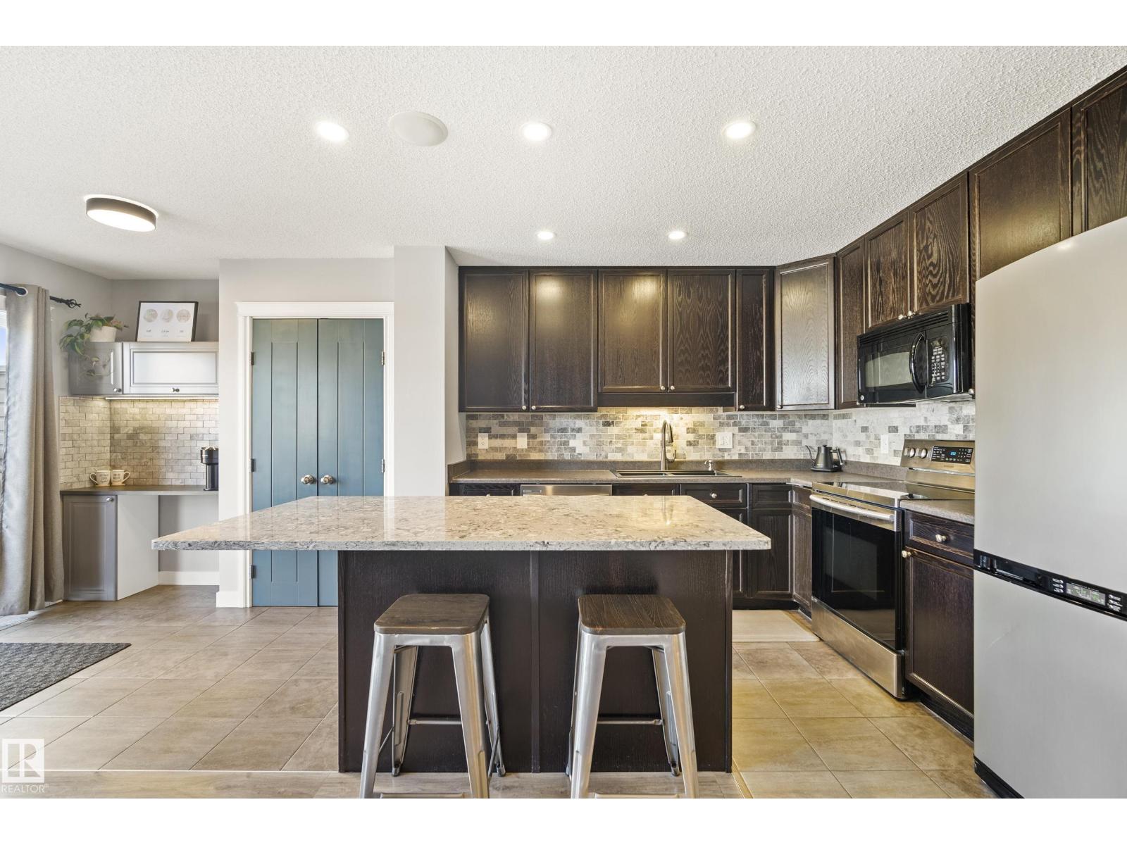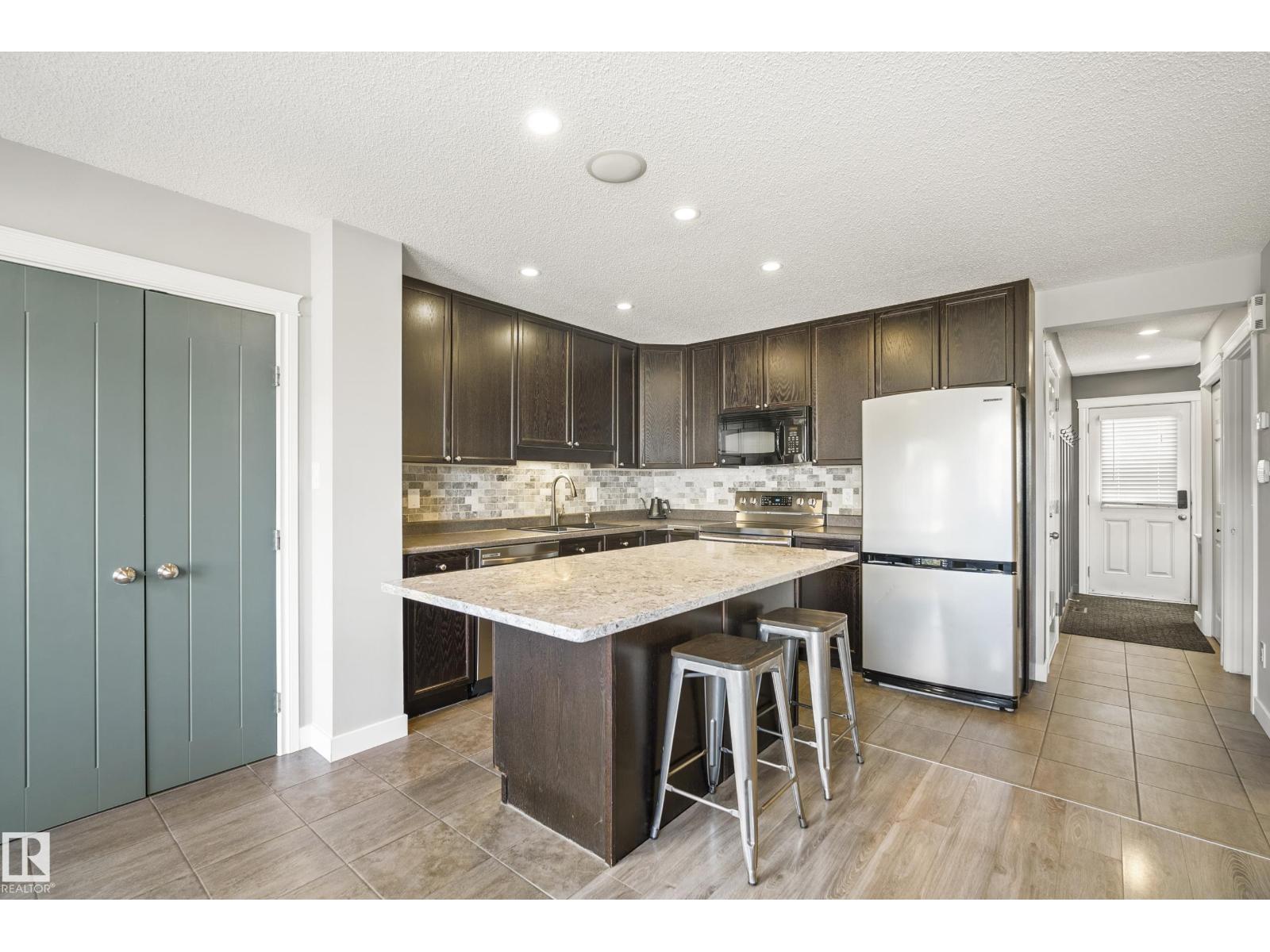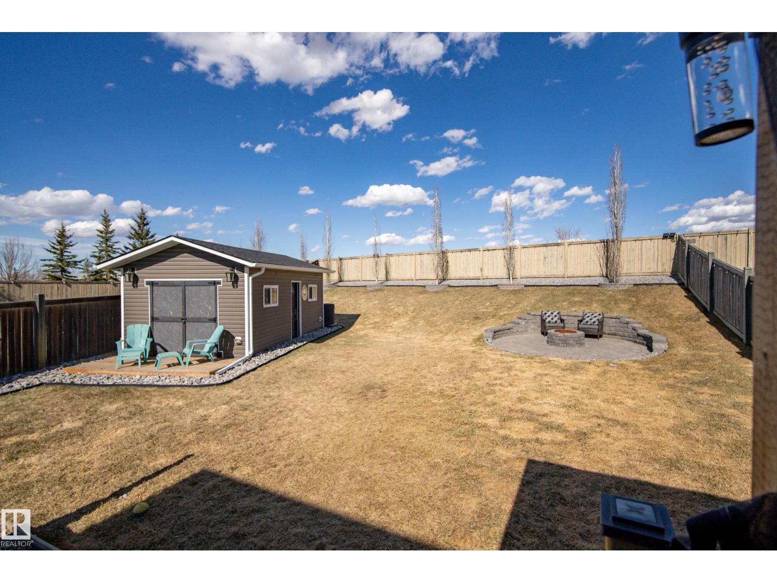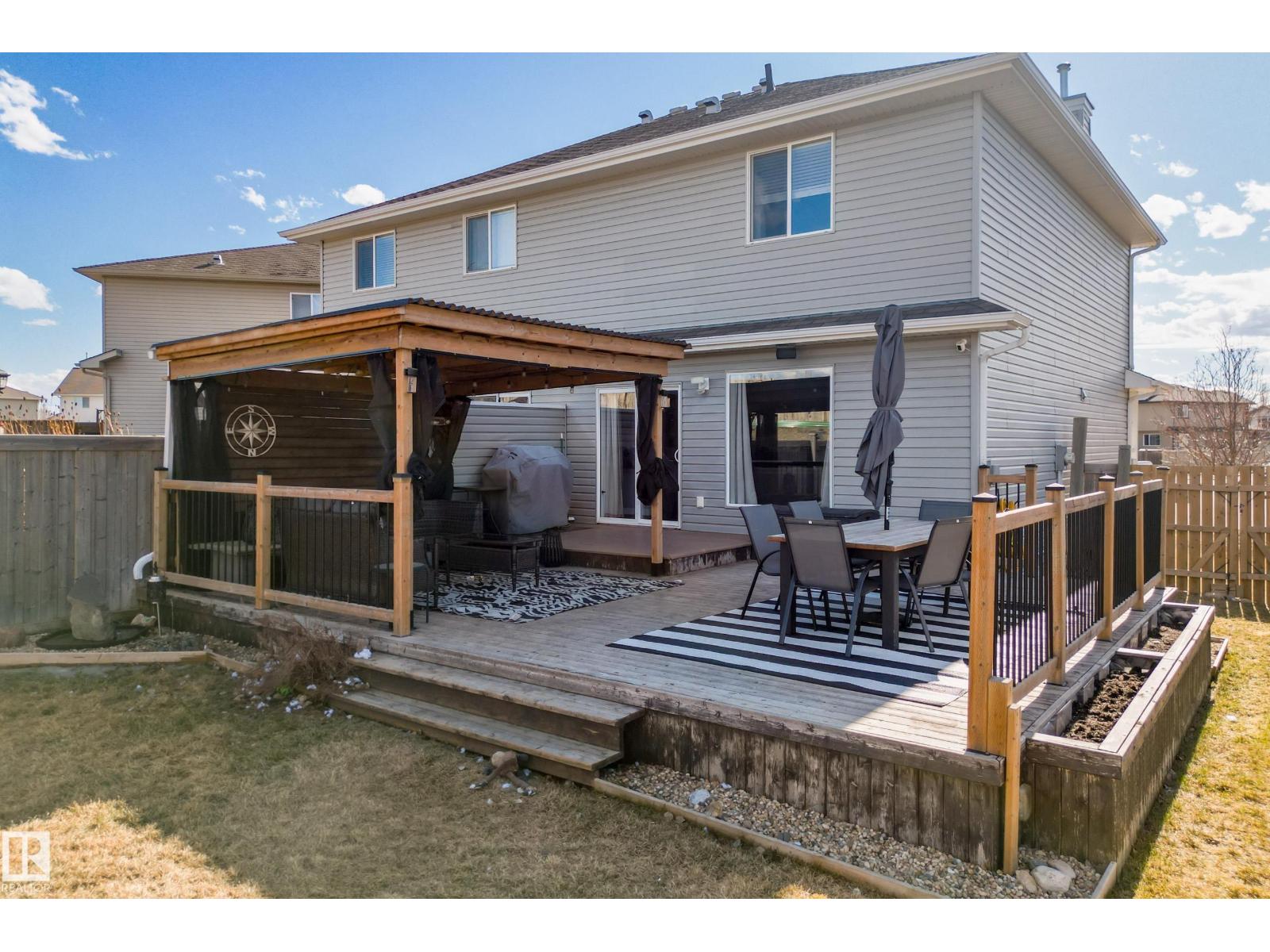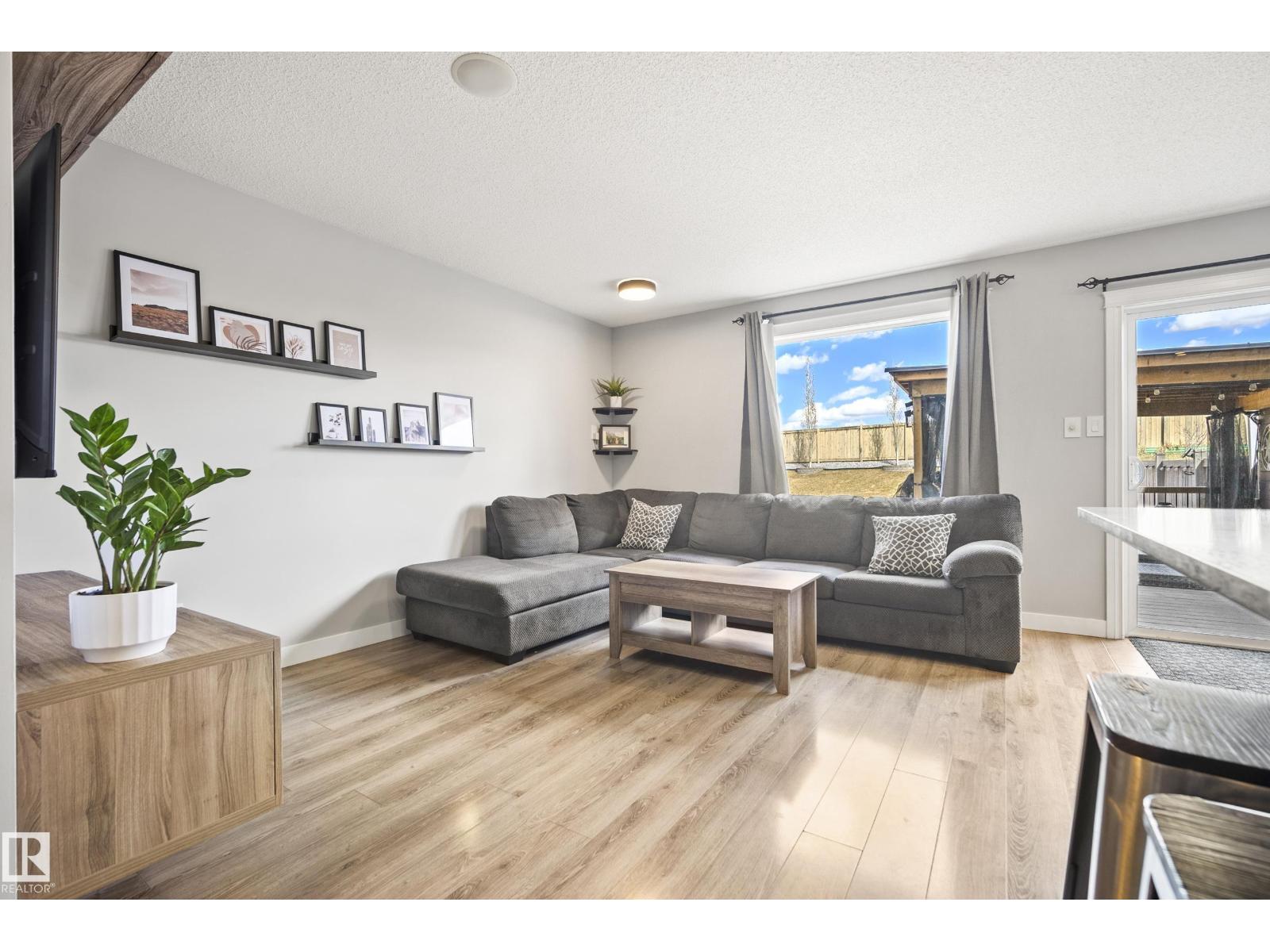 HUGE PIE LOT! This UPGRADED, MODERN half duplex has a backyard that was made for ENTERTAINING!! Situated in a quiet cul-de-sac in the community of Tamarack, this home is MOVE IN READY! 2 LARGE bedrooms, 2.5 baths and a FULLY FINISHED BASEMENT! The primary bedroom comes with his and her closets and a GORGEOUS updated 3 pc bath! The kitchen has TONS of storage, pantry and coffee bar! The basement is perfect for entertaining with a laundry room with extra storage! The backyard has a LARGE deck with gazebo and a MASSIVE shed. Spend your summer nights enjoying the fire pit area and hosting friends and family while enjoying those beautiful Edmonton summer sunsets! (id:63190)