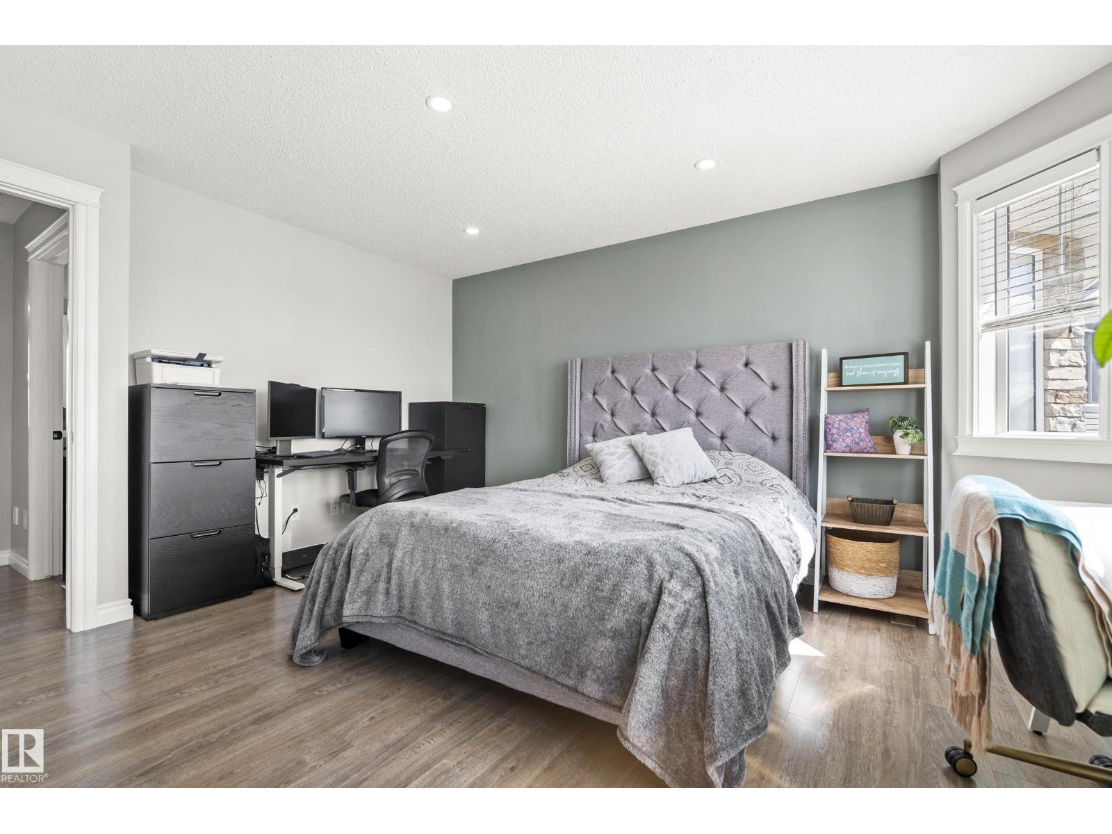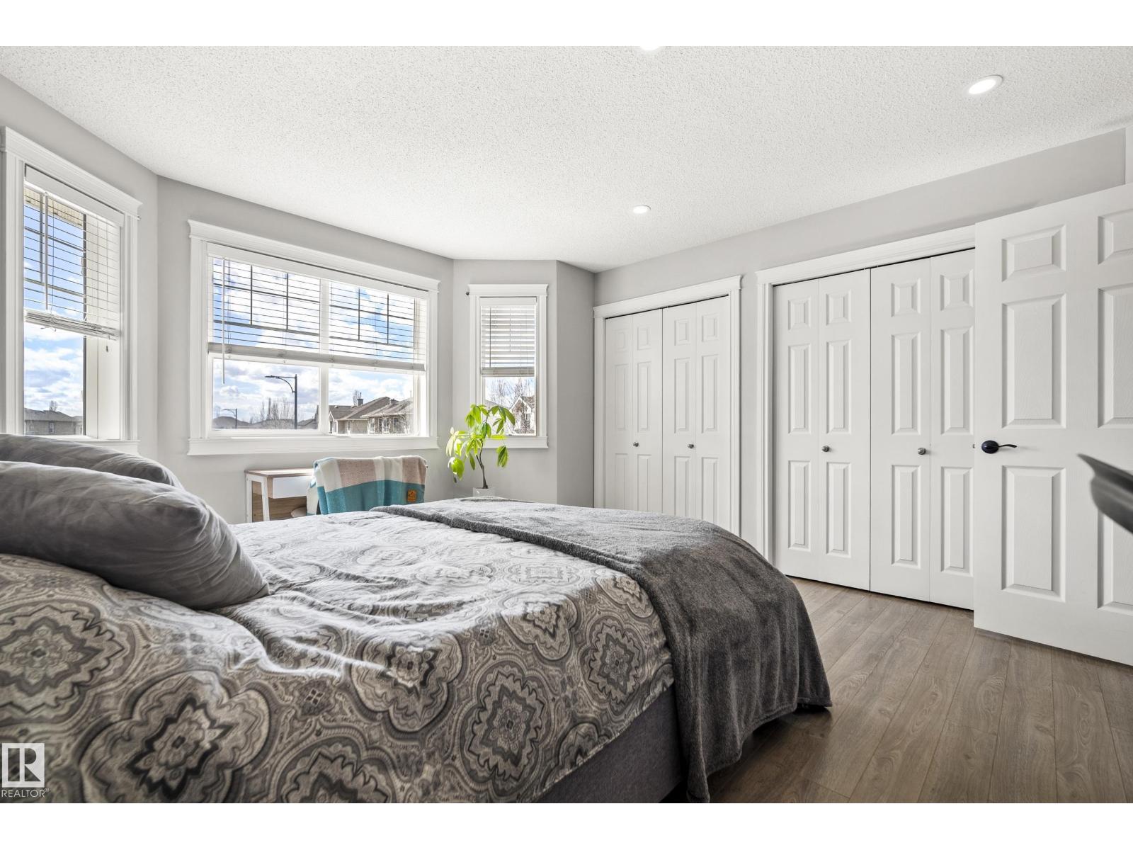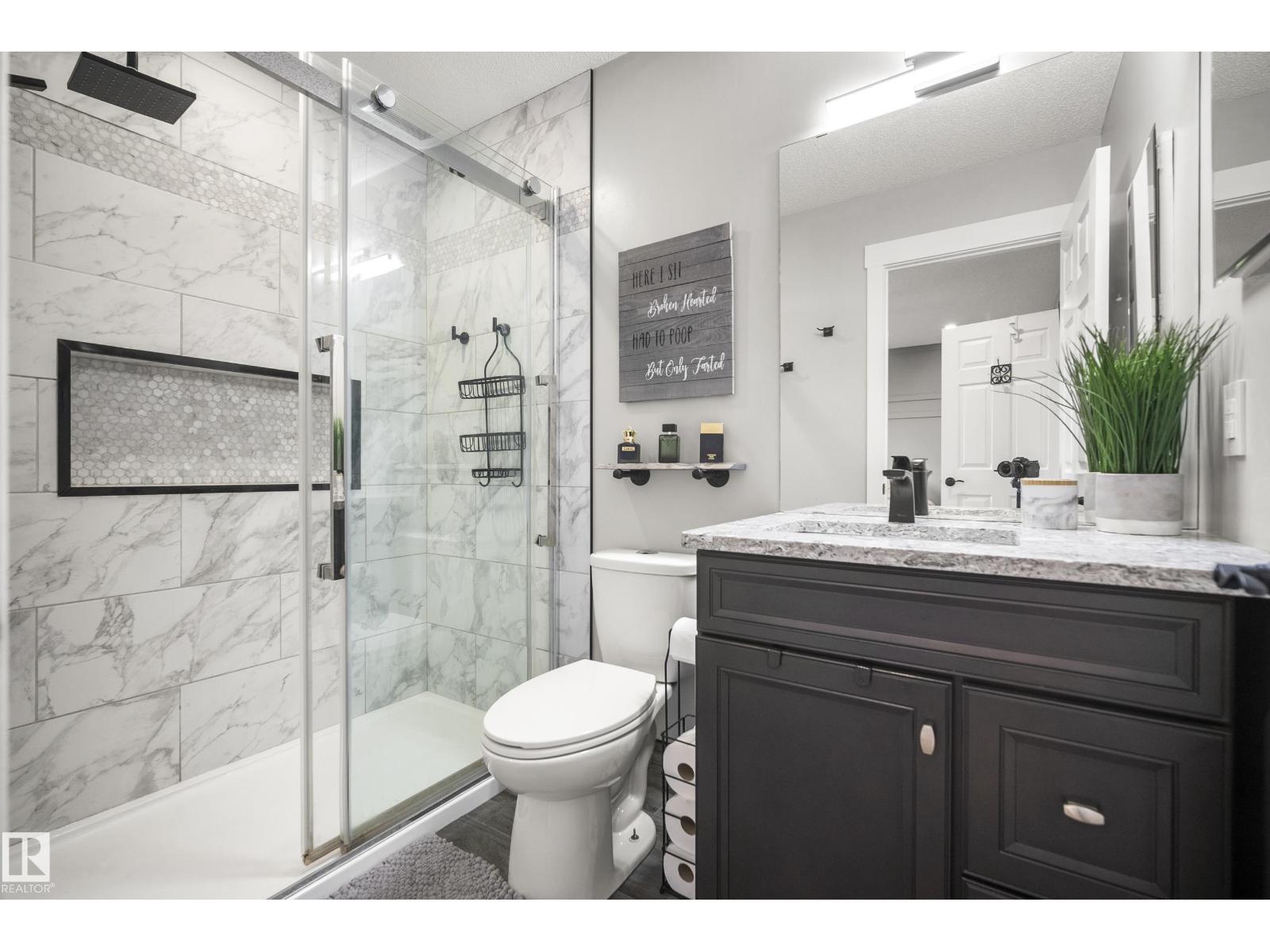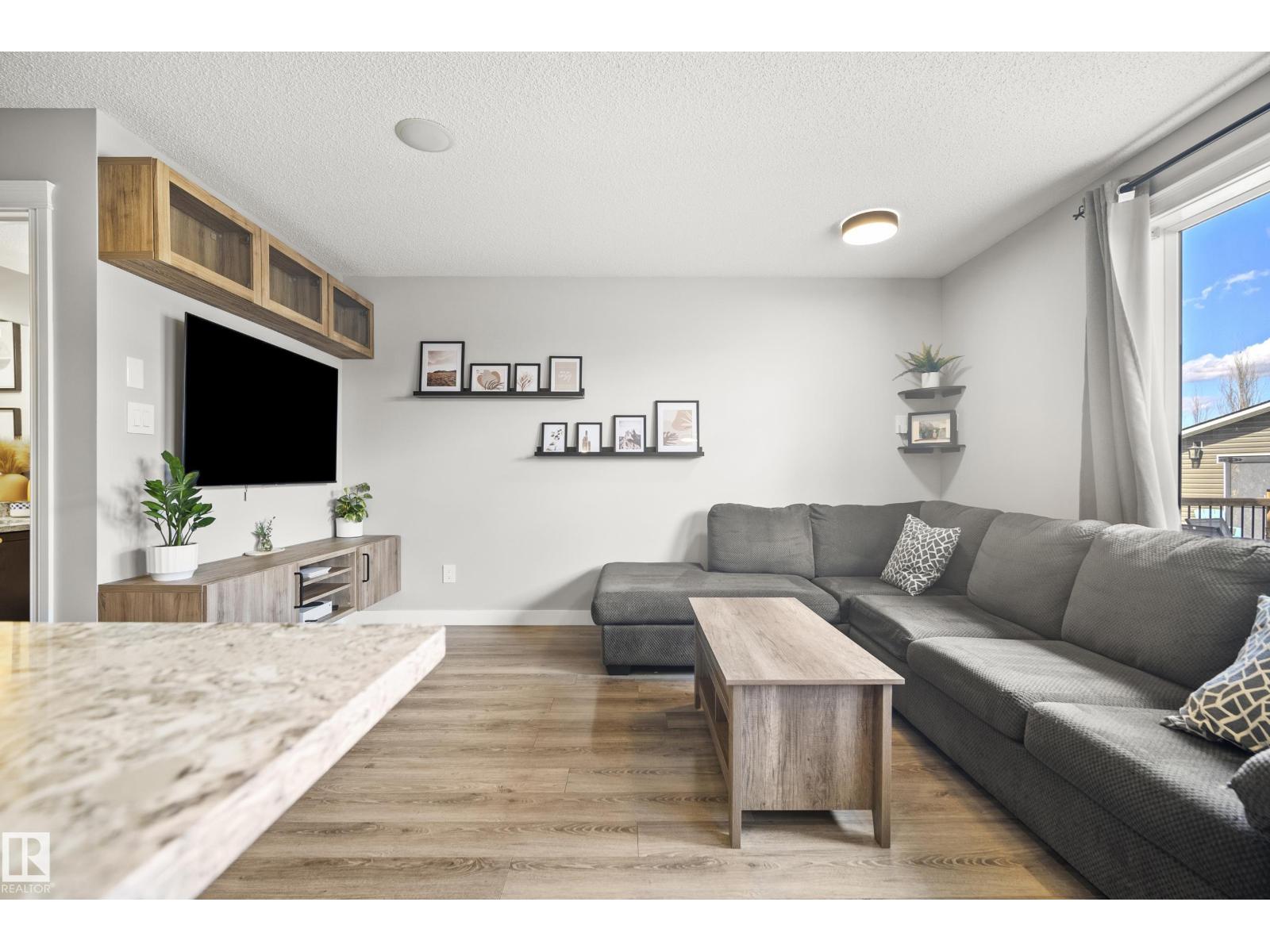 HUGE PIE LOT! This UPGRADED, MODERN half duplex has a backyard that was made for ENTERTAINING!! Situated in a quiet cul-de-sac in the community of Tamarack, this home is MOVE IN READY! 2 LARGE bedrooms, 2.5 baths and a FULLY FINISHED BASEMENT! The primary bedroom comes with his and her closets and a GORGEOUS updated 3 pc bath! The kitchen has TONS of storage, pantry and coffee bar! The basement is perfect for entertaining with a laundry room with extra storage! The backyard has a LARGE deck with gazebo and a MASSIVE shed. Spend your summer nights enjoying the fire pit area and hosting friends and family while enjoying those beautiful Edmonton summer sunsets! (id:63190)