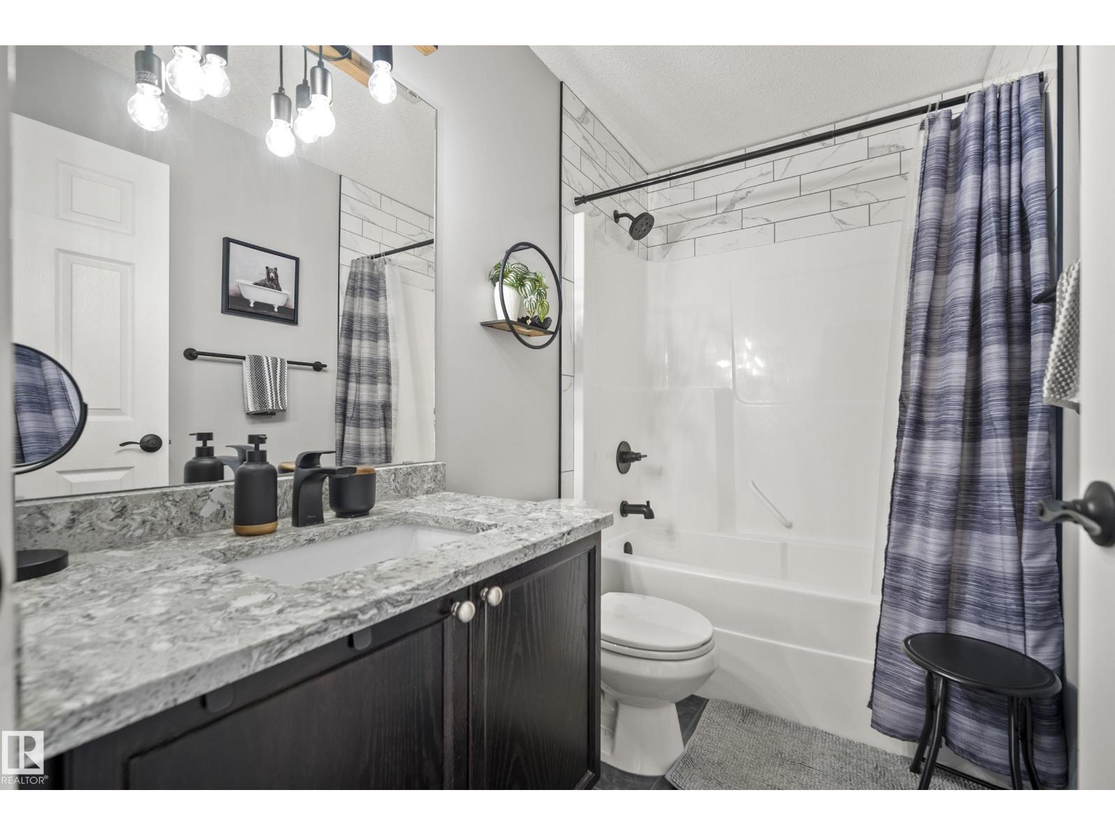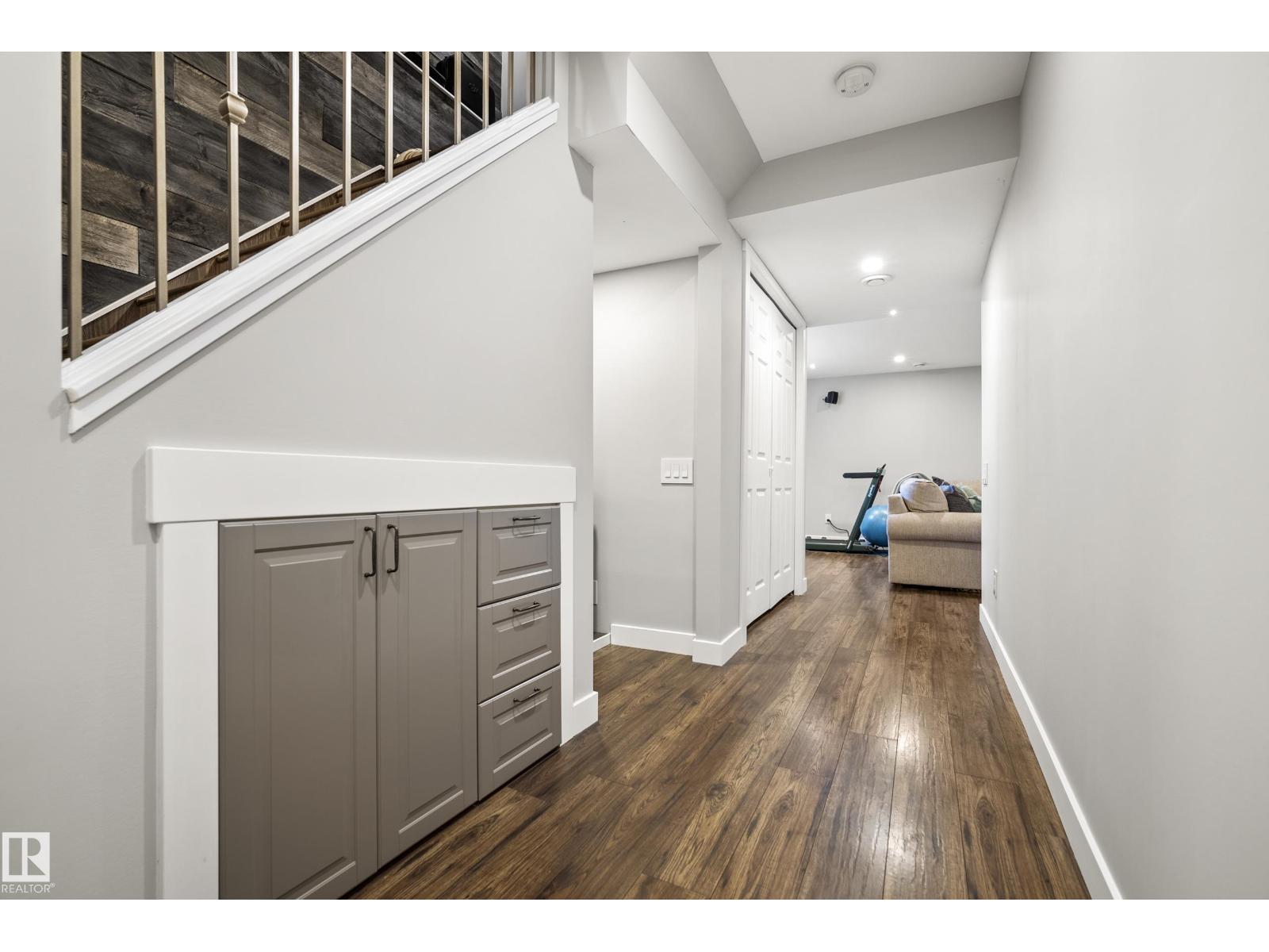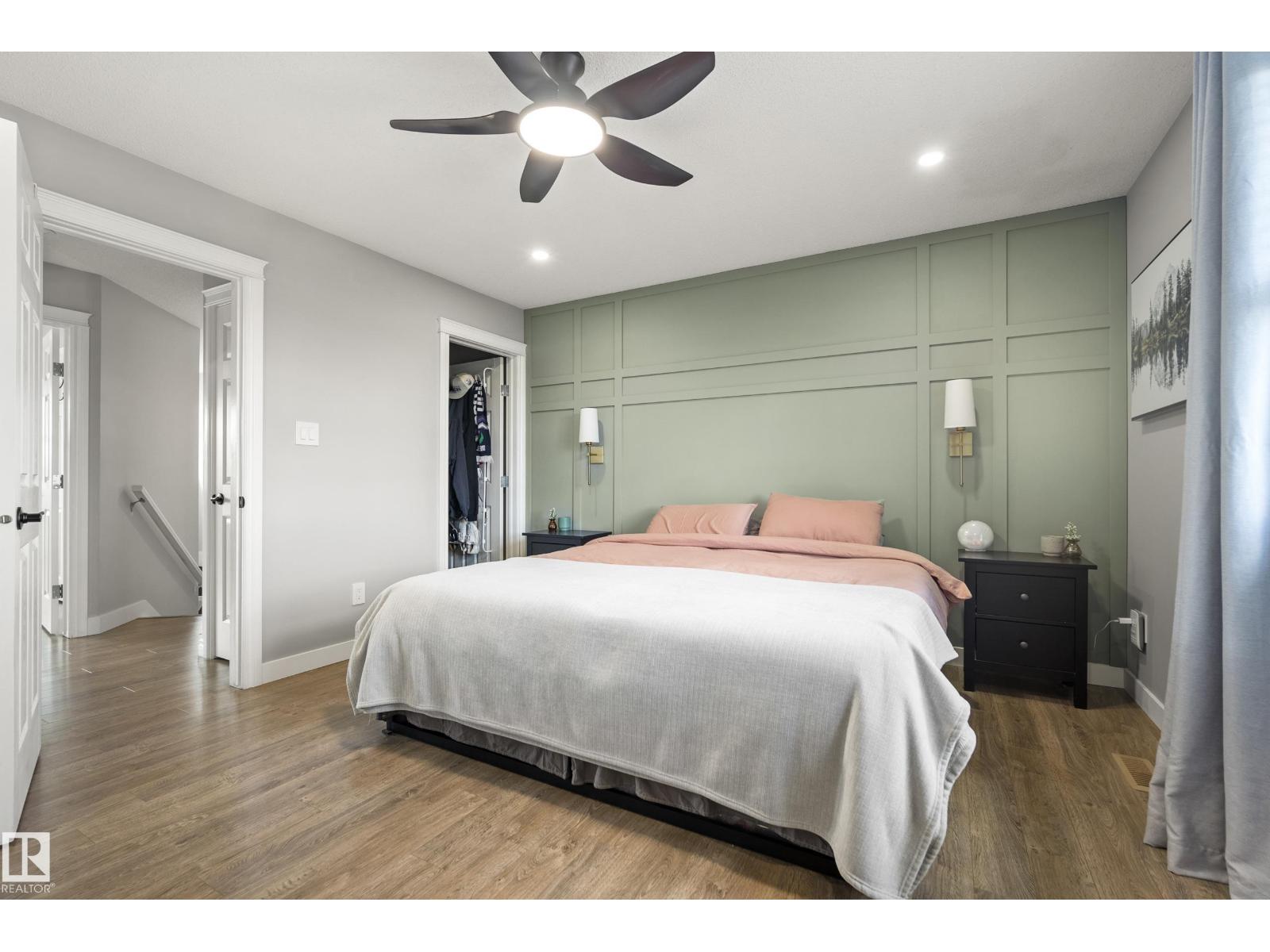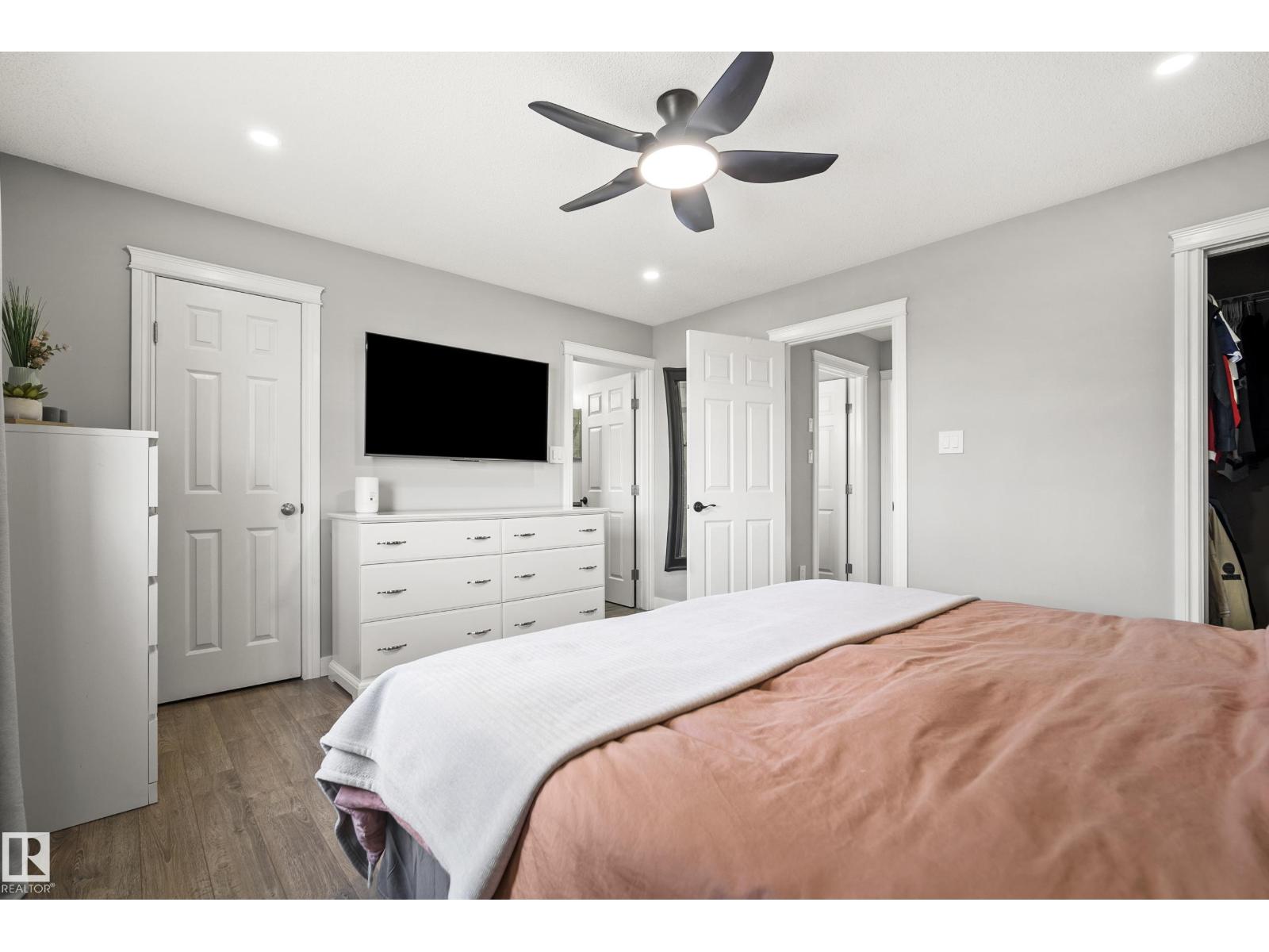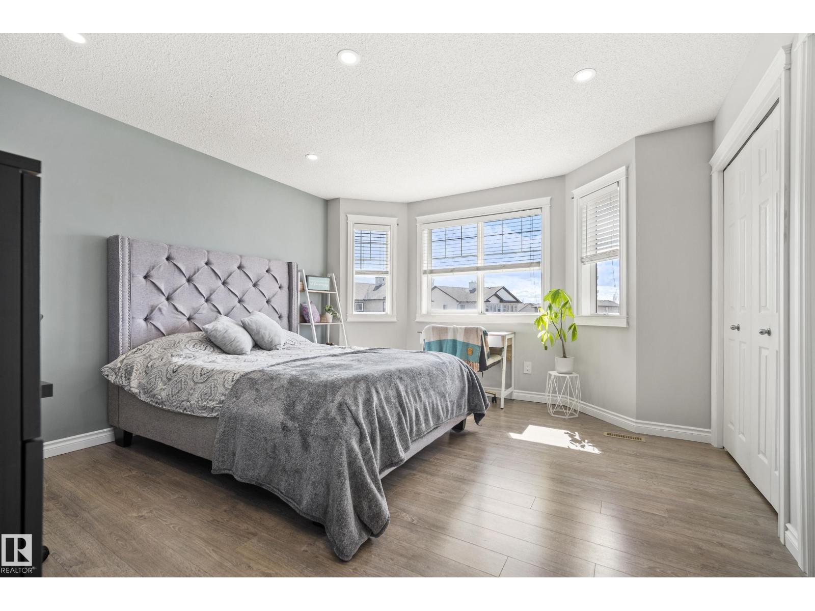 HUGE PIE LOT! This UPGRADED, MODERN half duplex has a backyard that was made for ENTERTAINING!! Situated in a quiet cul-de-sac in the community of Tamarack, this home is MOVE IN READY! 2 LARGE bedrooms, 2.5 baths and a FULLY FINISHED BASEMENT! The primary bedroom comes with his and her closets and a GORGEOUS updated 3 pc bath! The kitchen has TONS of storage, pantry and coffee bar! The basement is perfect for entertaining with a laundry room with extra storage! The backyard has a LARGE deck with gazebo and a MASSIVE shed. Spend your summer nights enjoying the fire pit area and hosting friends and family while enjoying those beautiful Edmonton summer sunsets! (id:63190)