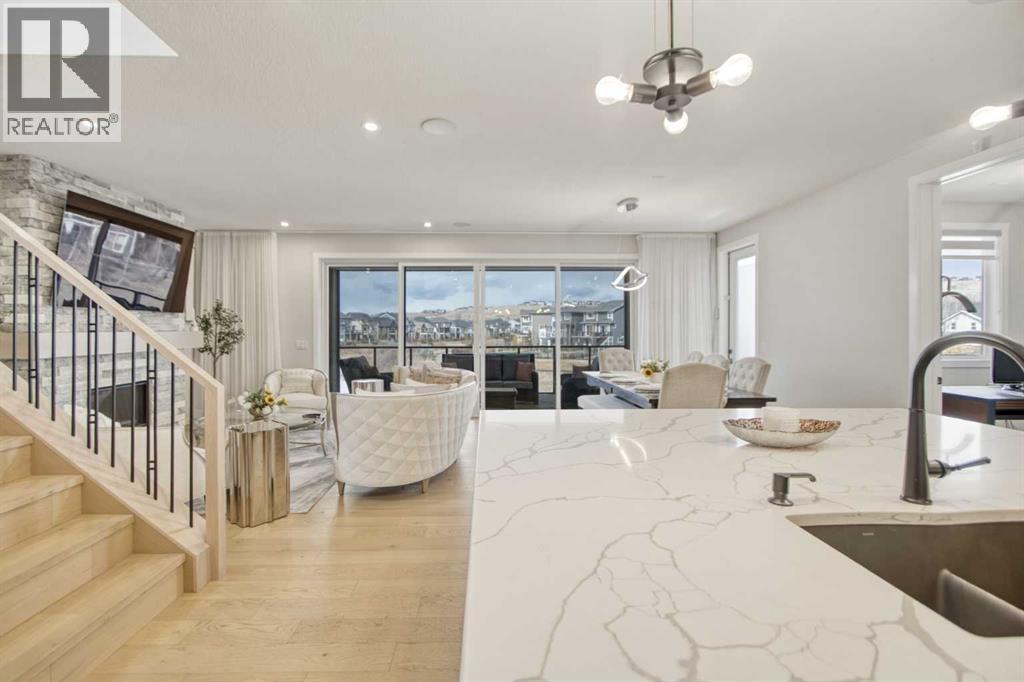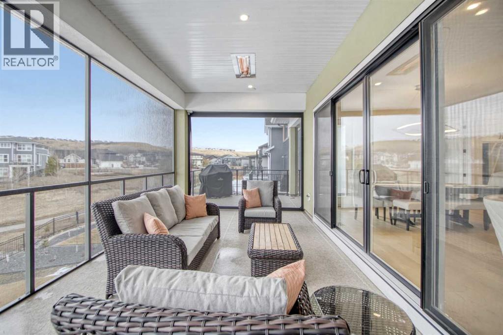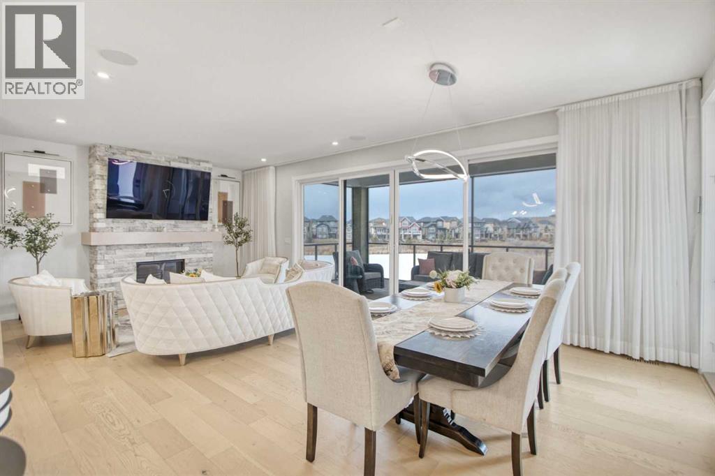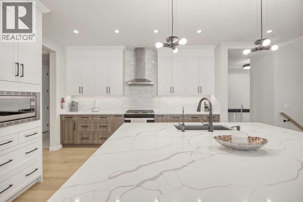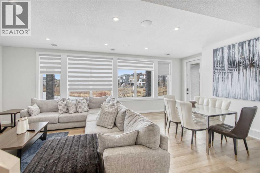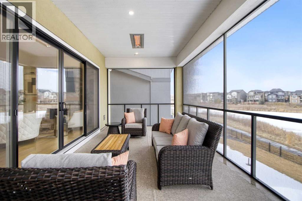 5 BEDROOMS | TRIPLE CAR GARAGE | WALK OUT BASEMENT | BACKS TO GREEN SPACE | OPEN HOUSE SUN, APR 26, 2 - 4PMEnjoy upscale living in this beautifully designed home with over 4,400 sq. ft. of living space. Set on a fully landscaped walkout lot backing onto a peaceful pond, walking paths, and a natural reserve, it offers a quiet setting while still being close to the Bow River and everyday amenities.Built by Baywest Homes, this property blends style, comfort, and income potential. Inside, you’ll find wide-plank hardwood floors, 9-foot ceilings, and 8-foot doors that create a bright, open feel. The main floor is perfect for entertaining, featuring a well-equipped kitchen, private office, and large windows with stunning pond views.The all-season deck is designed for year-round use, complete with glass railings, heating panels, and remote screens—perfect for relaxing or hosting guests.Upstairs offers a spacious primary suite with a walk-in closet and ensuite, along with well-sized secondary bedrooms, including one with its own bathroom. Laundry is also conveniently located on this level.The walkout basement includes a fully self-contained legal suite with a private entrance, two bedrooms, kitchenette, laundry, and patio—ideal for guests or rental income.Close to nature, schools, shopping, and major routes, this home offers a great balance of comfort and convenience. (id:63190)