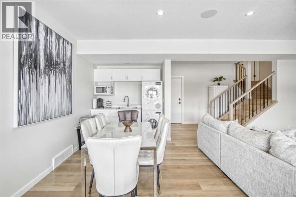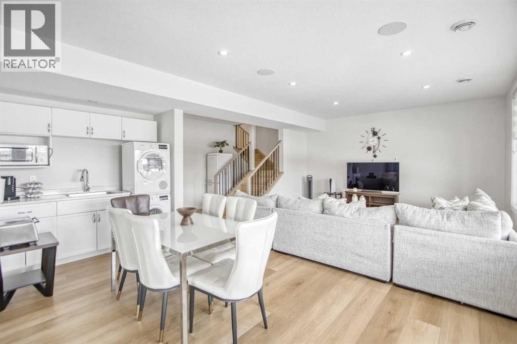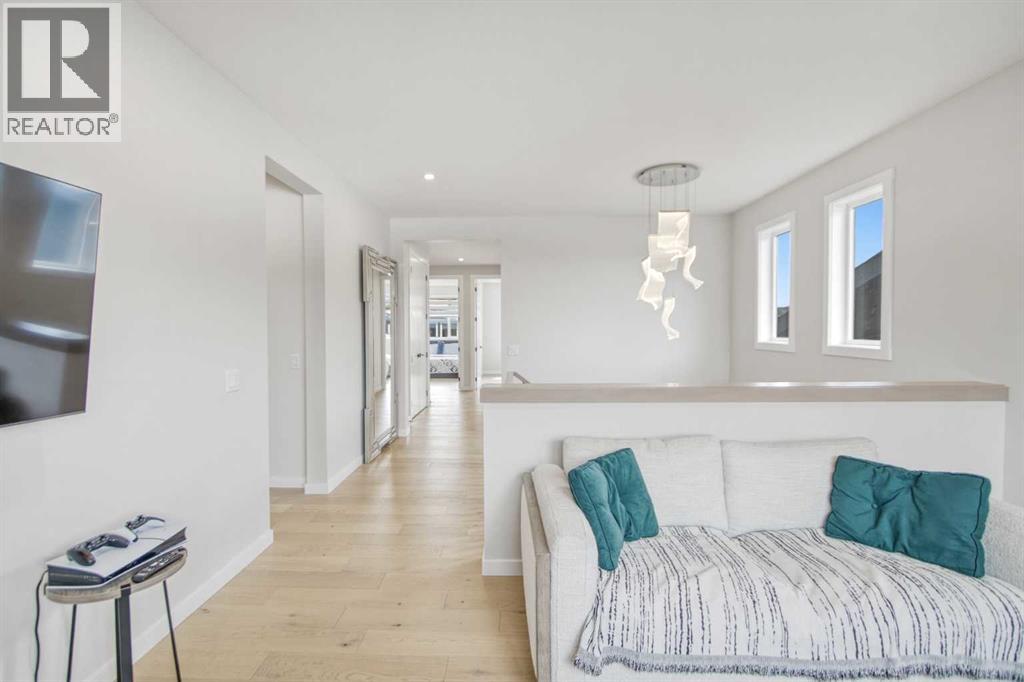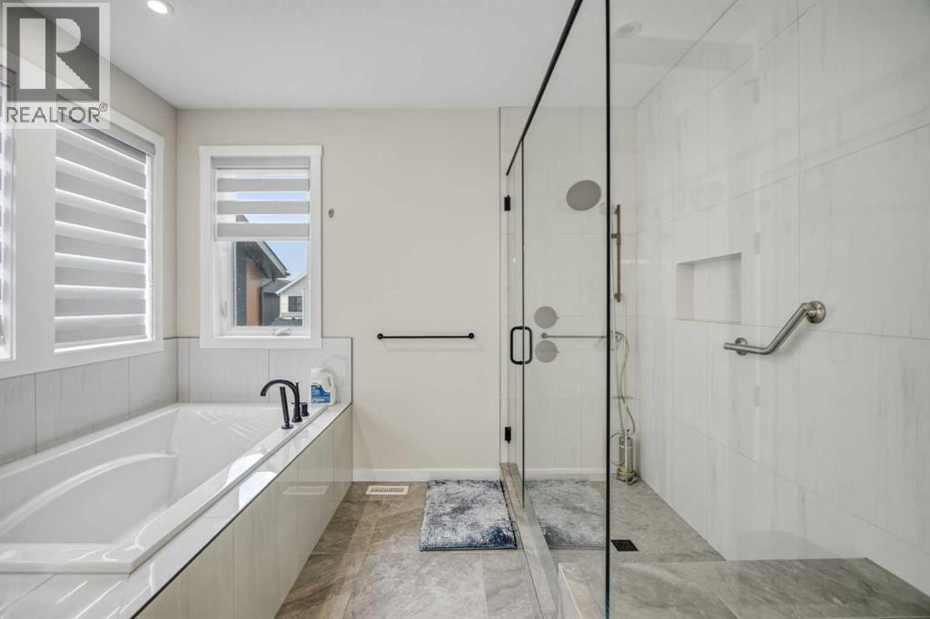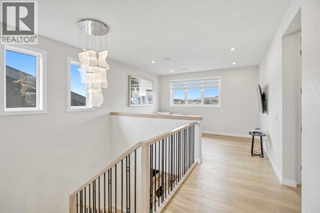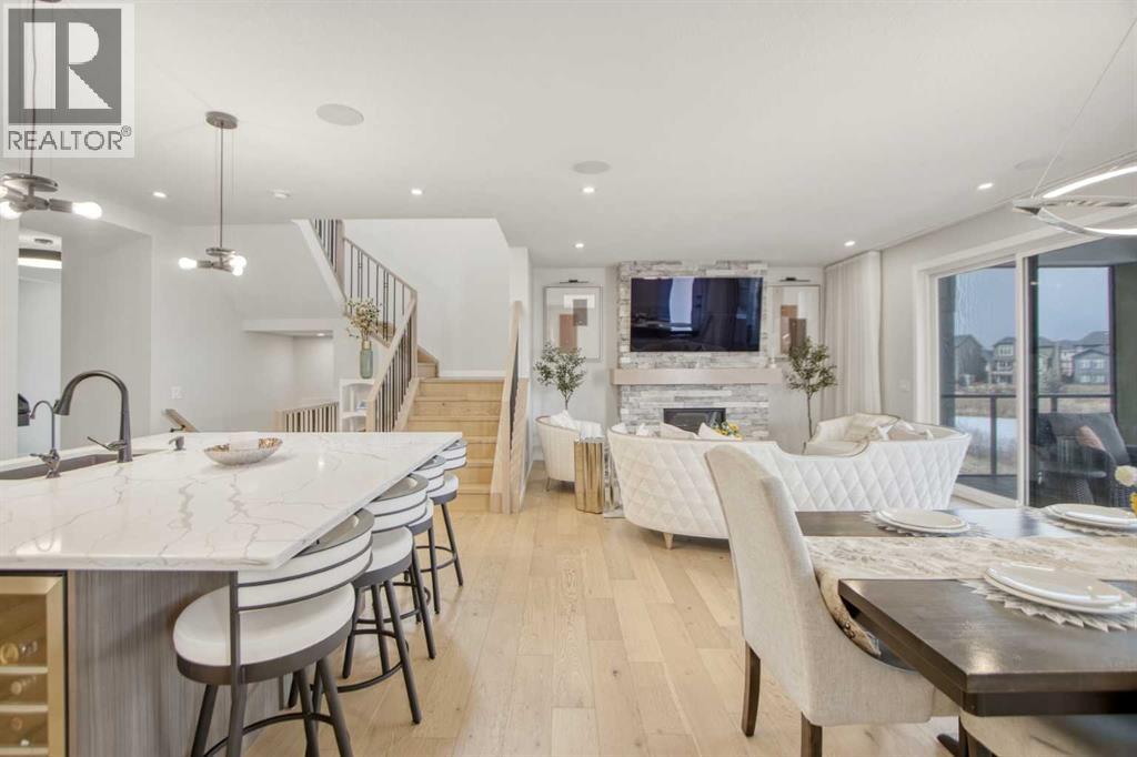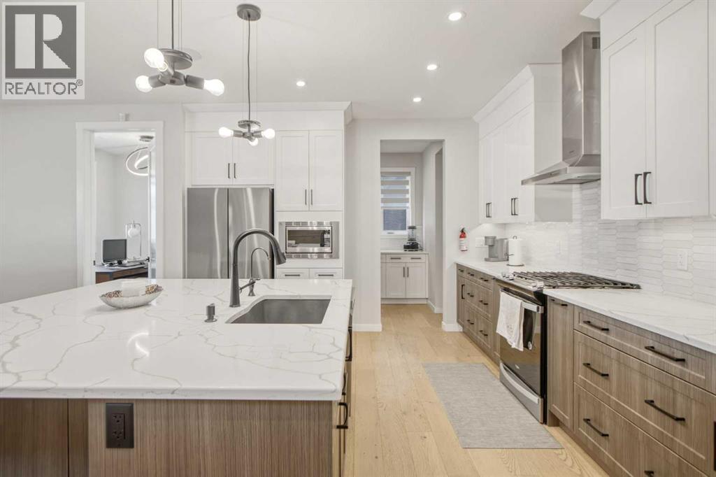5 BEDROOMS | TRIPLE CAR GARAGE | WALK OUT BASEMENT | BACKS TO GREEN SPACE | OPEN HOUSE SUN, APR 26, 2 - 4PMEnjoy upscale living in this beautifully designed home with over 4,400 sq. ft. of living space. Set on a fully landscaped walkout lot backing onto a peaceful pond, walking paths, and a natural reserve, it offers a quiet setting while still being close to the Bow River and everyday amenities.Built by Baywest Homes, this property blends style, comfort, and income potential. Inside, you’ll find wide-plank hardwood floors, 9-foot ceilings, and 8-foot doors that create a bright, open feel. The main floor is perfect for entertaining, featuring a well-equipped kitchen, private office, and large windows with stunning pond views.The all-season deck is designed for year-round use, complete with glass railings, heating panels, and remote screens—perfect for relaxing or hosting guests.Upstairs offers a spacious primary suite with a walk-in closet and ensuite, along with well-sized secondary bedrooms, including one with its own bathroom. Laundry is also conveniently located on this level.The walkout basement includes a fully self-contained legal suite with a private entrance, two bedrooms, kitchenette, laundry, and patio—ideal for guests or rental income.Close to nature, schools, shopping, and major routes, this home offers a great balance of comfort and convenience. (id:63190)