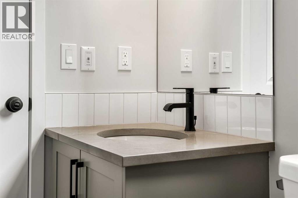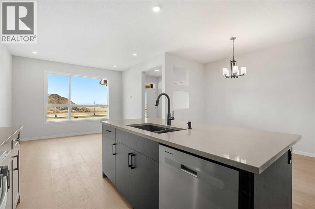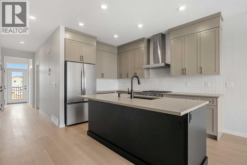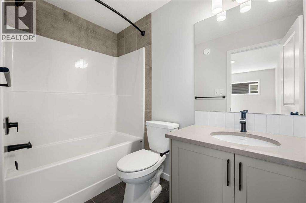 Welcome to 213 Bridgeport Gate, Chestermere, a brand new semi-detached (half duplex) offering modern design, functional living space, and exceptional value in the growing community of Bridgeport. With over 1,700 sq ft above grade, this thoughtfully designed 2-storey home features 4 bedrooms, 3 full bathrooms, and a versatile layout ideal for families, first-time buyers, or investors.The main floor welcomes you with a bright and open-concept design, highlighted by large windows, high ceilings, and stylish vinyl plank flooring. The spacious living room flows seamlessly into the dining area and well-appointed kitchen, complete with quartz countertops, a central island with breakfast bar, and ample cabinetry, making it perfect for both everyday living and entertaining. A main floor bedroom and full 3-piece bathroom provide excellent flexibility for guests, multigenerational living, or a home office setup.Upstairs, you’ll find three generously sized bedrooms, including a comfortable primary retreat featuring a walk-in closet and private ensuite. A full 4-piece bathroom and a bonus family room offer additional living space, ideal for relaxing, working, or gathering with family. The upper-level laundry adds everyday convenience and practicality.The unfinished basement with a separate entrance presents excellent future potential for customization, whether you envision additional living space, a recreation area, or future development options (subject to approvals).Situated on a rear lane lot with off-street parking, this home also features a rear deck, perfect for enjoying outdoor space. Located in the desirable community of Bridgeport, residents will appreciate close proximity to parks, playgrounds, schools, shopping, and walking/bike pathways, all while enjoying quick access to major routes and everyday amenities.New, never occupied, and move-in ready, 213 Bridgeport Gate is a fantastic opportunity to own a modern home in a vibrant and growing Chestermere neighbourhoo d. (id:63190)