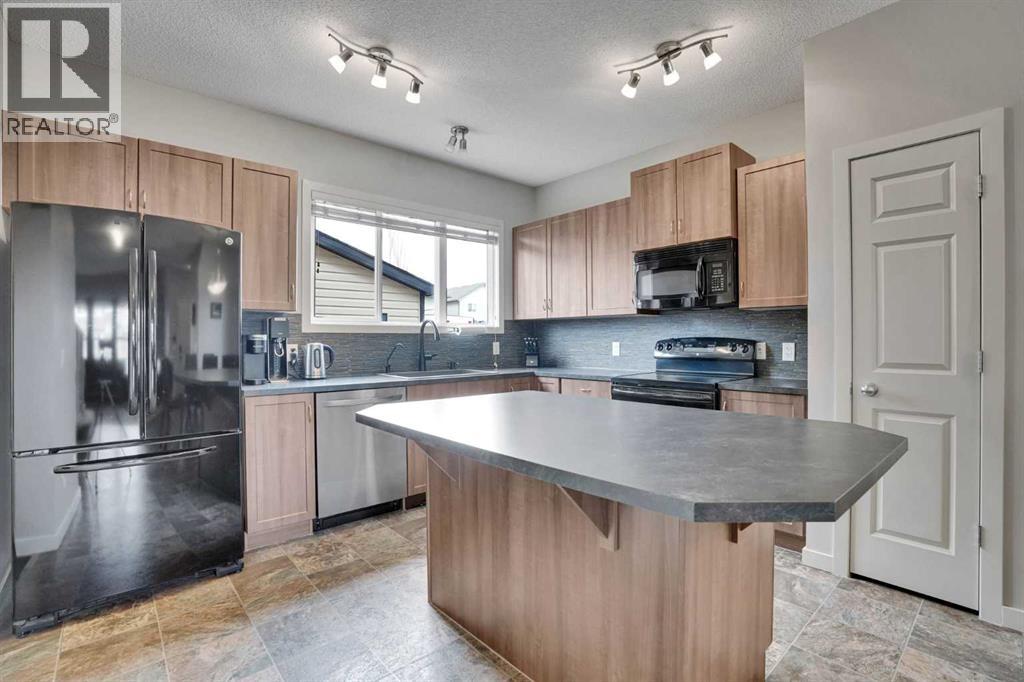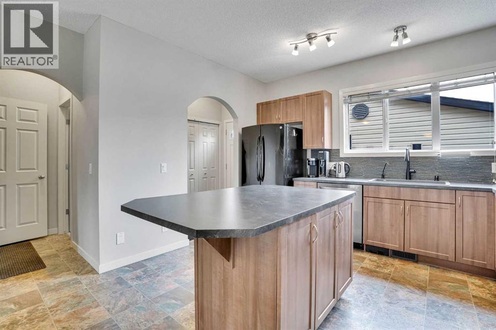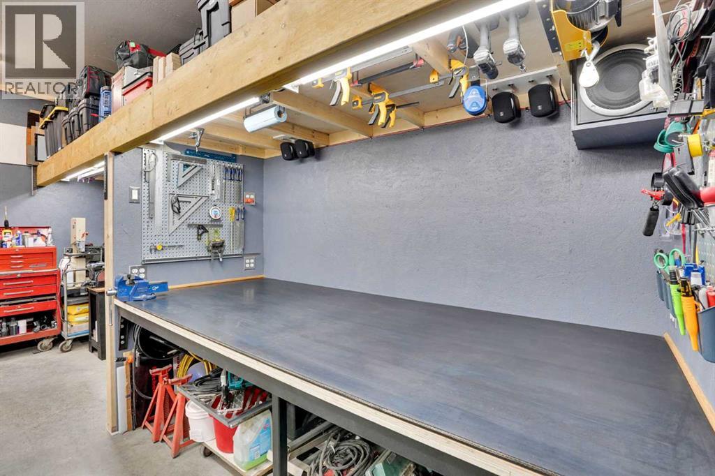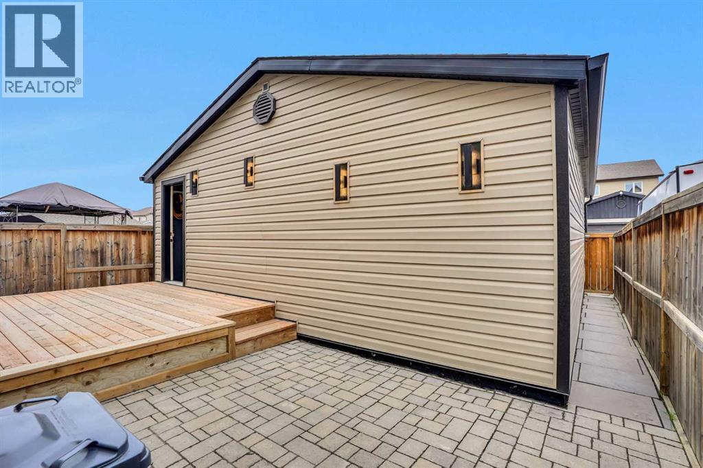 Welcome to one of the most customized homes on the block! This thoughtfully adjusted floor plan features 10-foot ceilings on the main level, creating a rare, open-concept space perfect for cooking, dining, and relaxing. The spacious kitchen is designed to impress, showcasing a high-end modern sink and a large island that’s ideal for both everyday living and entertaining. Upstairs, you’ll find a full bathroom (never used!), two generously sized bedrooms, and a conveniently located laundry room—an uncommon and highly desirable feature in this area. The expansive primary suite includes a walk-in closet and a luxurious 4-piece ensuite, complete with a deep soaker tub and a separate stand-up shower. The undeveloped basement offers endless potential for future development, while currently providing a wide-open storage area. The furnace and mechanical/electrical systems have been strategically placed in the northwest corner to maximize usable space and minimize noise throughout the home. Additional upgrades include a best-in-class Kinetico water softener, delivering silky-smooth water throughout, along with a brand-new water heater and upgraded hail-resistant shingles to help protect your investment. The garage truly deserves its own spotlight. This fully finished, oversized double garage is a dream workshop. Built with an engineered slab (10-inch thick perimeter and 8-inch interior), it’s designed to support a vehicle lift and comfortably accommodate two full-size trucks—or even three with a lift—while still leaving ample workspace. Outfitted with 60-amp service, the garage includes extensive wiring for shop use, a 240V outlet, and multiple 15-amp bench plugs. Upgraded lighting features dedicated workbench lighting, attic lighting, and exterior deck and alley accent lighting, all on separate switches for easy home automation integration. It’s also pre-wired for an alarm system and PoE camera surveillance. Even the construction stands out: 6-inch thick insulated walls with Rockwool insulation, a 6-mil vapor barrier, and 2 layers of house wrap make the space exceptionally quiet—nearly soundproof. Additional highlights include upgraded LVL framing, a premium R-18.4 garage door, high-capacity storage shelving, and dual attic access points for convenience. Nearly every detail of this home reflects custom design, thoughtful upgrades, and exceptional care. And the location? With quick access to shopping, schools, and major Calgary routes, your daily commute is effortless. Don’t miss this rare opportunity to become the second owner of a pristine, meticulously designed home. (id:63190)