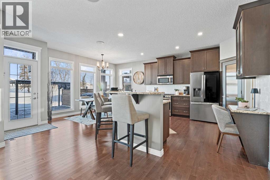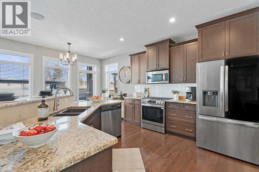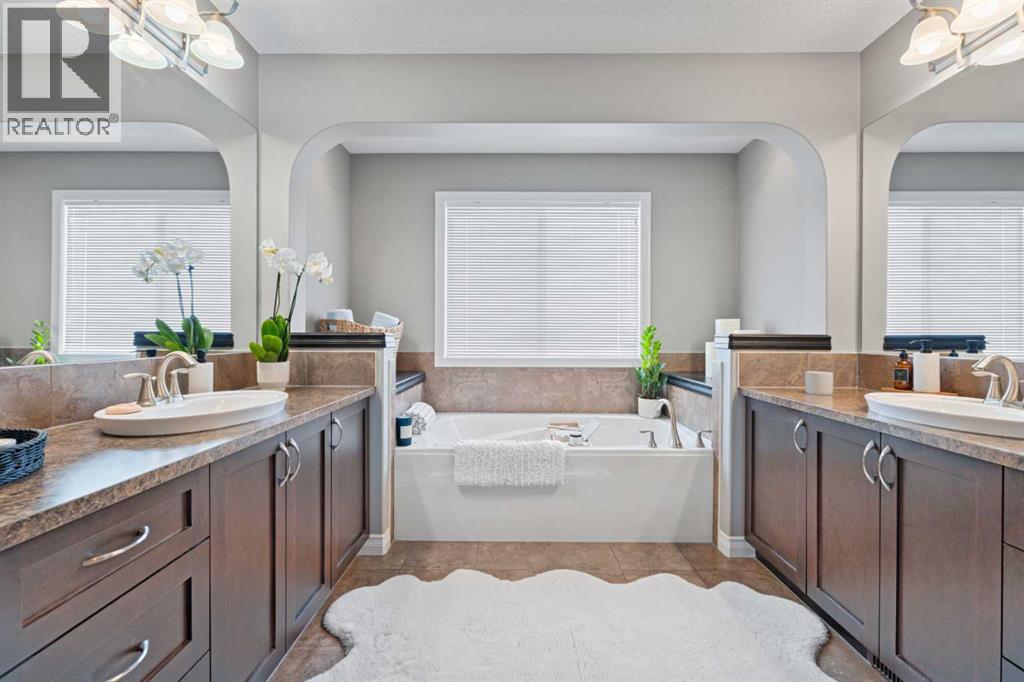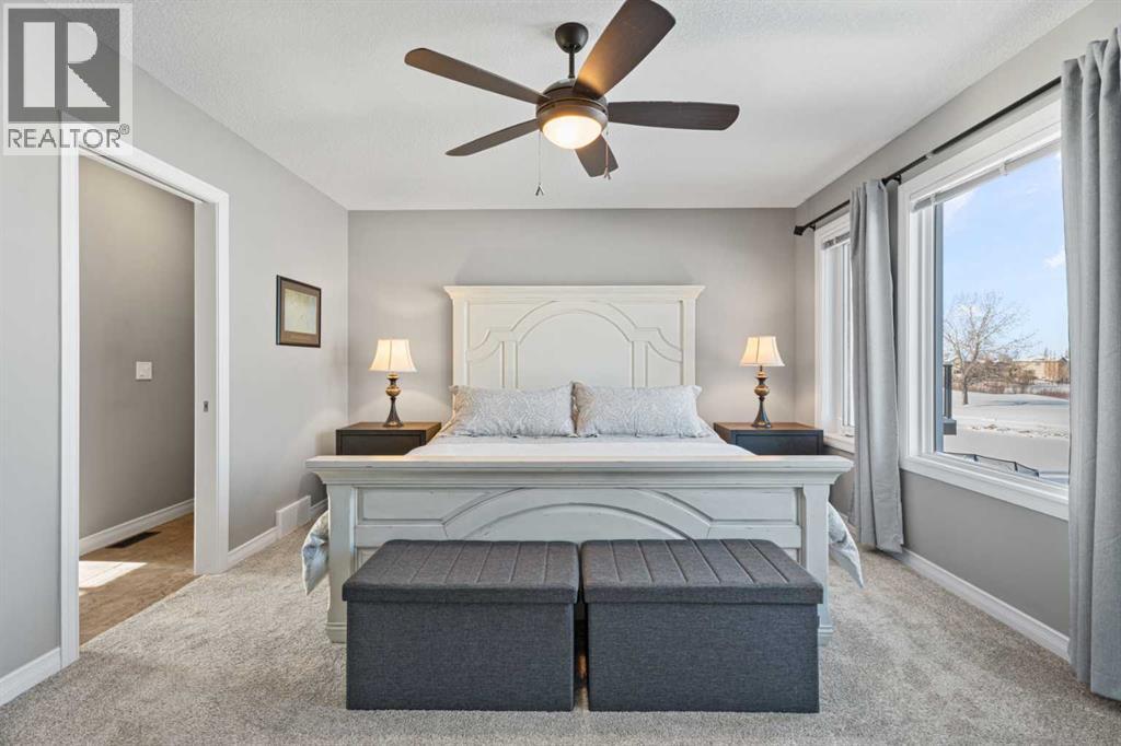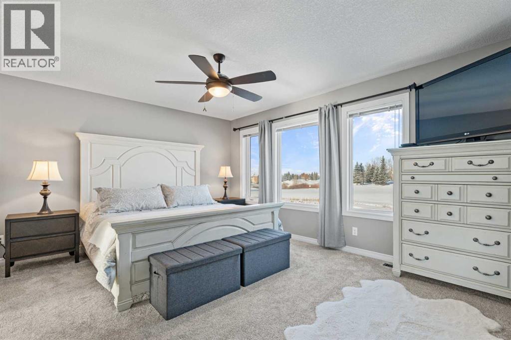 Not too many places have this kind of view.This truly exceptional, meticulously maintained two-storey, 3 bedroom home in Okotoks backs directly onto the golf course, offering uninterrupted green space, wildlife, and views that include the mountains. The landscaping has been beautifully redone, while inside you’ll find new flooring throughout the upper level and stairs, updated lighting and the added comfort of central air conditioning. The heated and insulated double car garage is another feature—perfect for Alberta winters, whether you’re parking, storing, or working on projects year-round.Step inside and you’re welcomed by a warm, light-filled space due to the floor to ceiling windows facing the golf course. The open-concept kitchen features granite countertops, stainless steel appliances, and a large pantry—perfect for those who love to cook and gather.Upstairs, the layout is both functional and inviting. The primary retreat captures stunning west-facing views, complete with a luxurious 5-piece ensuite and walk-in closet. The bonus room, with vaulted ceilings and positioned at the back of the home, offers a perfect place to relax while taking in the same incredible scenery, from inside or on the balcony, morning, noon, or sunset. Laundry days are easier here as you will find the laundry room right at the top of the stairs. The basement is a blank canvas to make it your own.With lake access included, you can enjoy everything from summer days on the water to winter skating and ice fishing—This home is special. Book your showing today. (id:63190)
