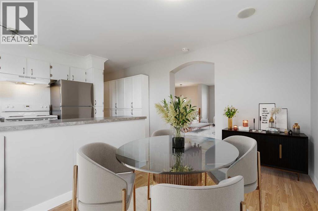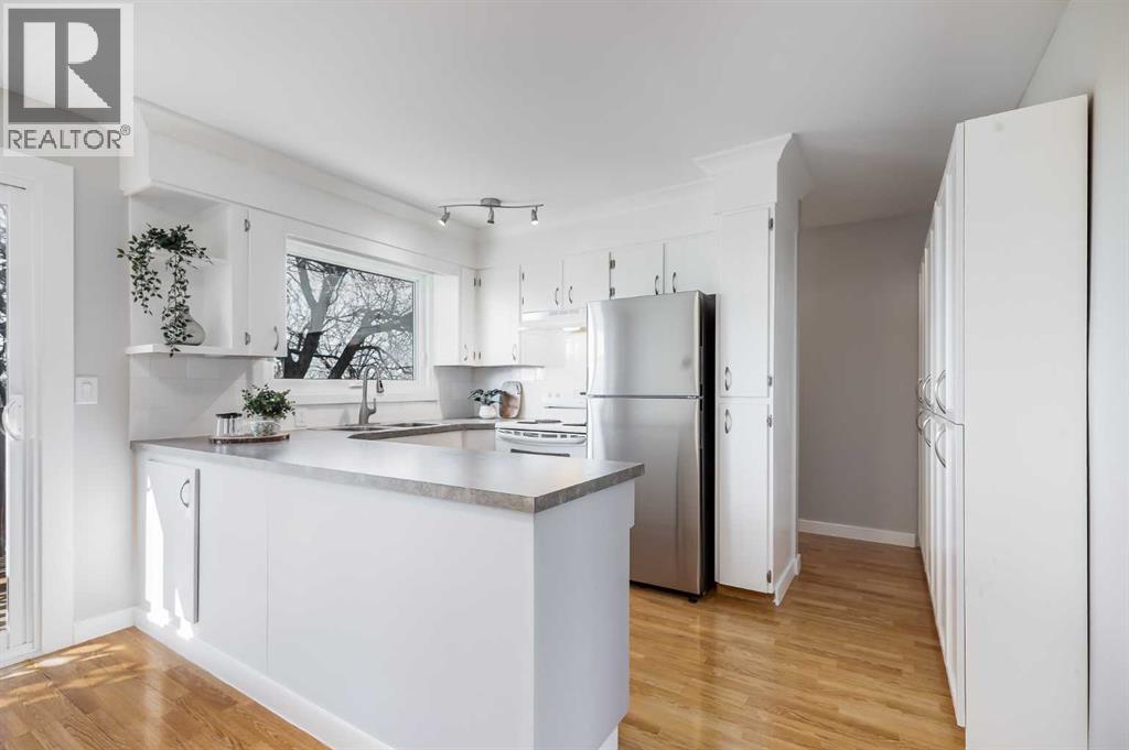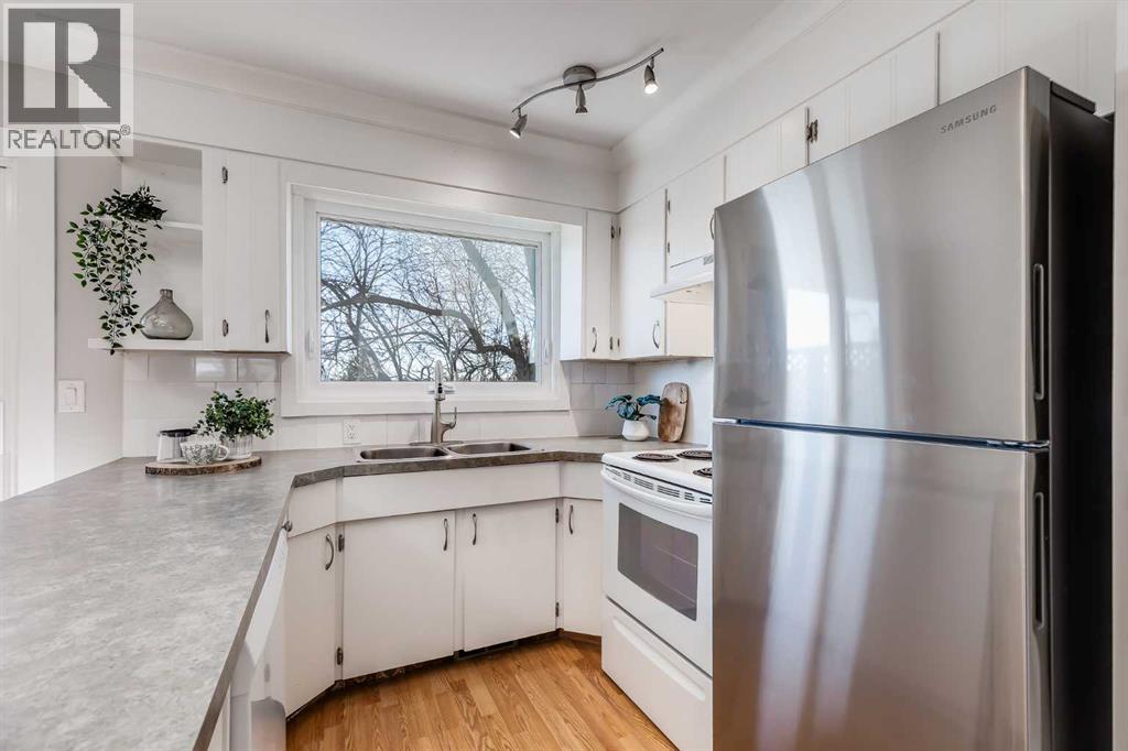 Located in the family friendly community of Ranchlands, this four-bedroom, two full bathroom bi-level home offers over 1,900 square feet of developed living space and includes an illegal suite, offering flexibility for a variety of living arrangements. A front tandem driveway allows for convenient off-street parking, and the home was newly sided in 2024 with James Hardie board, adding long-term value. The main floor is filled with natural light from large windows that brighten the spaces throughout the day. The living room offers a comfortable area to relax and unwind, while the U-shaped kitchen and dining area are positioned together to create a functional flow. The kitchen features ample counter space, abundant storage, and a window overlooking the backyard. Sliding doors off the dining area open onto a raised deck, providing an easy connection to outdoor space. This level also includes a generously sized primary bedroom, a second bedroom, a four-piece bathroom, and its own laundry for added convenience. The lower level is developed as an illegal suite with a separate entrance, offering privacy and flexibility. It includes two bedrooms, a four-piece bathroom, and a well-equipped kitchen complete with stainless steel appliances, extensive cupboard and counter space, and an island with seating. A comfortable living and dining area completes the space, along with access to a lower patio, additional storage, and dedicated laundry. The backyard is south-facing and thoughtfully arranged, with a sloped landscape that provides depth and character. A large grassy area is complemented by mature trees, creating a sense of privacy and a quiet outdoor setting. Alley access adds functionality, while new fencing on three sides and a storage shed contribute to both usability and organization. Recent upgrades enhance the home’s efficiency and overall condition. All windows and exterior doors were replaced in 2024 and feature triple-pane glass with a transferable 25-year warranty. The roof, including asphalt shingles, gutters, and flashing, was also completed in 2024. Attic insulation has been topped up, and the furnace has been recently serviced. Additional updates include a new upstairs washer and dryer in 2026, an updated refrigerator, and a one-year-old dishwasher installed in 2025. The location offers easy access to everyday amenities and recreation. Nearby, the Ranchlands Community Association features an outdoor rink, while Ranchlands Community Park includes tennis courts, baseball diamonds, and open fields. Ranchlands and St. Rita schools, along with nearby playgrounds, are within walking distance. Major routes including John Laurie Boulevard, Crowchild Trail, and Stoney Trail make commuting straightforward, with quick access to the mountains. Outdoor enthusiasts will appreciate being a short drive from Nose Hill Park, while shopping, dining, and services are available at Crowfoot Crossing, home to the YMCA Calgary and the Calgary Public Library. Check out the 3D Tour! (id:63190)