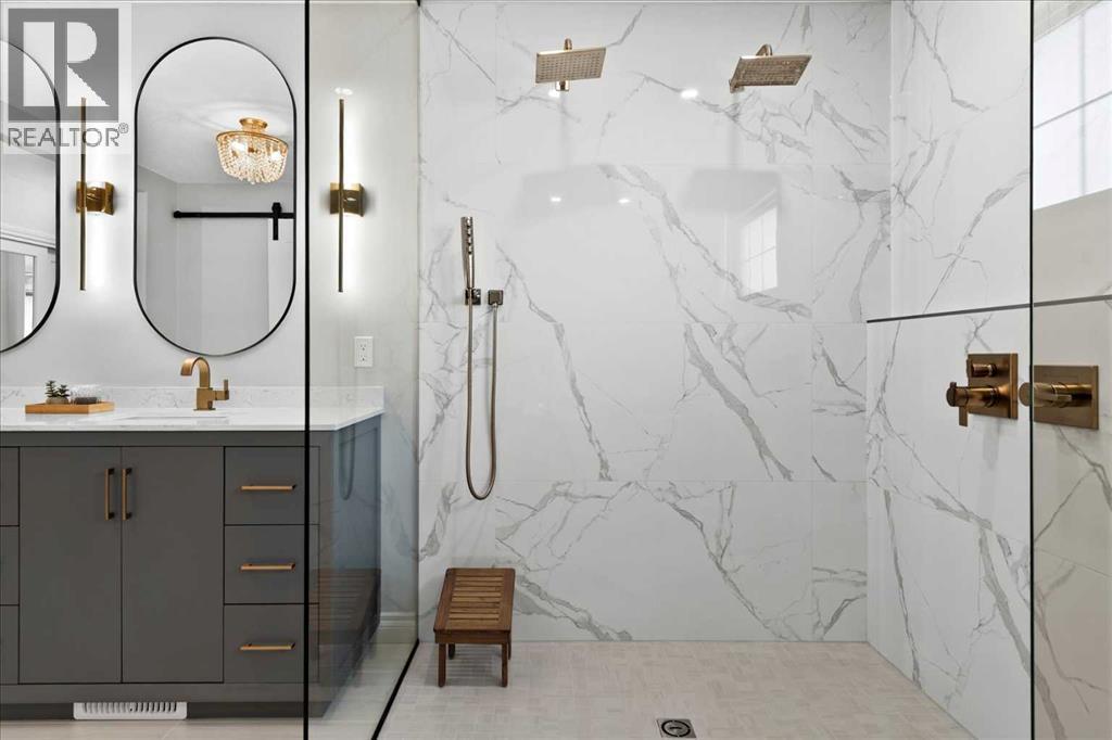 Beautiful two-storey family home in Gleneagles offering over 3,800 sq. ft. of developed living space on large fenced lot overlooking the 14th fairway. The heart of this home is the fully renovated contemporary kitchen, featuring a quartz central island, built-in cabinetry, central vac with kitchen sweep inlet, and stainless-steel appliances—perfect for everyday living and entertaining. A stylish coffee bar with new wine fridge sits adjacent to the kitchen, while the spacious dining area is surrounded by windows overlooking the expansive yard and golf course. The inviting living area showcases an updated fireplace mantel and tile surround. The main floor is complete with a large, bright front den, hardwood flooring throughout, and a fully renovated 2-piece bath. Note the spacious back entry cupbaords and customized built-in locker cubbies.Upstairs, retreat to the breathtaking primary bedroom with gas fireplace and access to a private balcony—the ideal place to enjoy your coffee at sunrise or take in the mountain views at sunset. The ensuite is a stunning 7 pce spa-like retreat with underfloor heating. Two additional bedrooms, a beautifully renovated 4-piece bath, over sized family/media room and convenient upper-level laundry complete this level. The fully developed lower level offers additional living space including a fourth bedroom, generous family room, work out area and a renovated 3-piece bathroom—ideal for guests or growing families.Upgrades and renovations over $330,000 include complete kitchen , cabinets, a large island, updated lighting, fresh paint, stainless-steel appliances, flooring throughout (lava oak), carpeting, main-floor 2-piece bath, main floor fireplace -mantel and tile surround. Upstairs, 4-piece bathroom , primary bedroom and ensuite have been extensively upgraded, including a fully renovated 6-piece ensuite. The lower level renovations include family room and fireplace, 3-piece bathroom, mechanical and utility upgrades-furnace, r everse osmosis system, hot water tank (2023). The cedar shake roof was inspected and repaired as required (2025). Just move in and enjoy the breathtaking views, privacy of rear yard, bike/ walking paths and just minutes to town to restaurants and every amenity for your family. (id:63190)