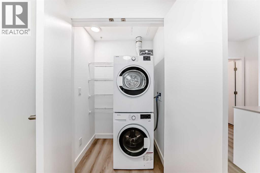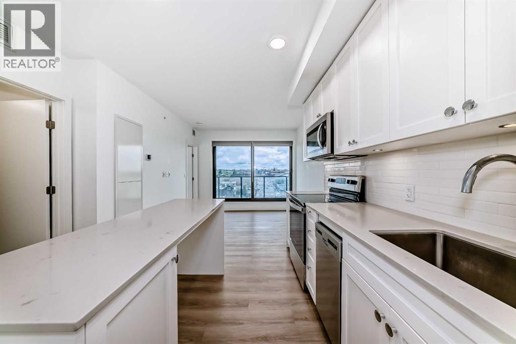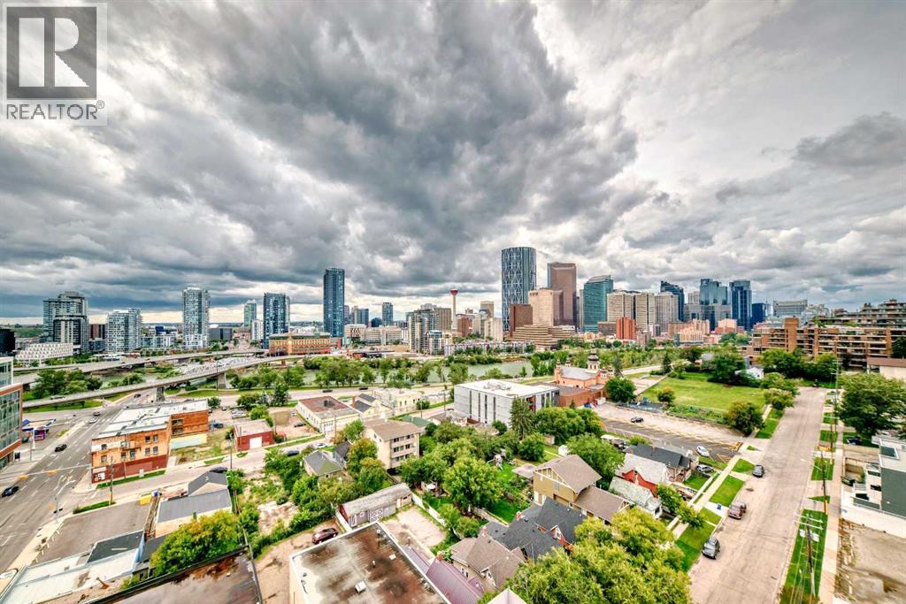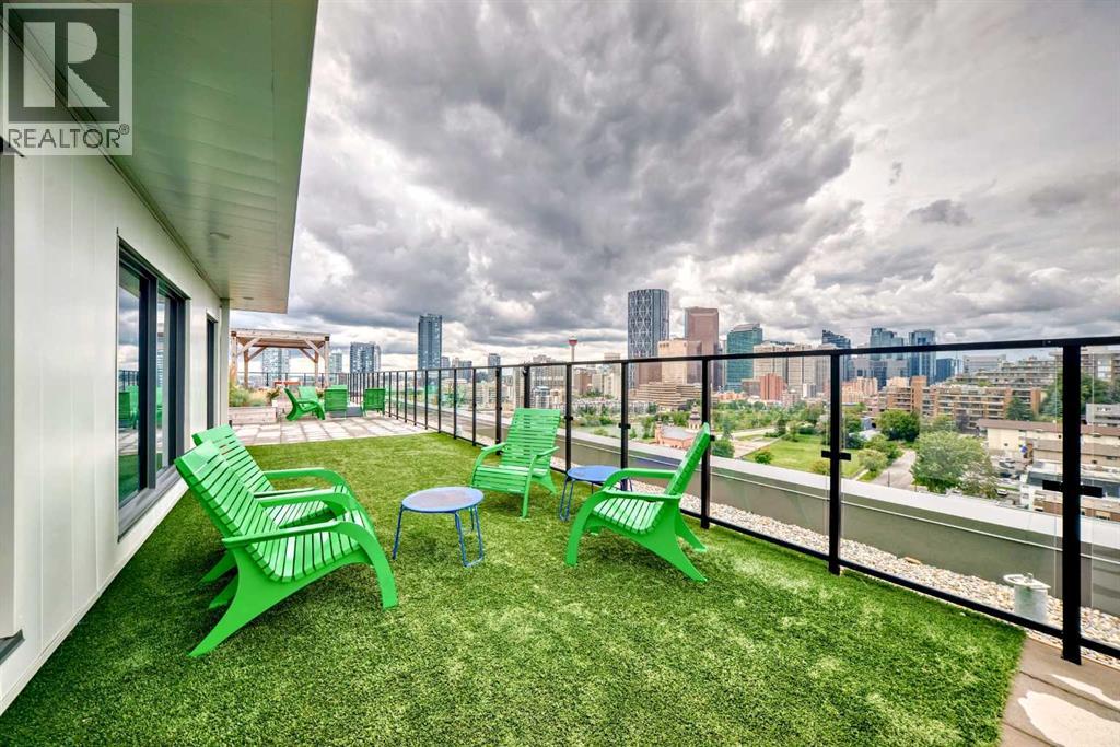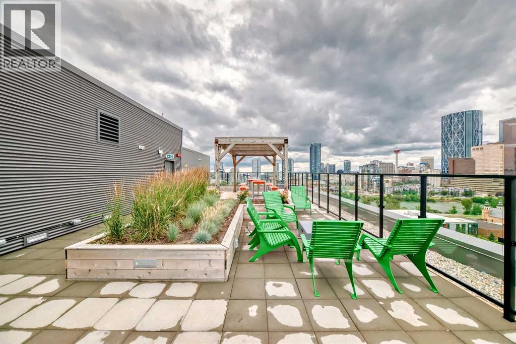 CORNER UNIT 12TH FLOOR. GREAT VIEW! Welcome to Era by Minto Communities—modern, elevated living in this well-designed 2 bedroom, 1 bathroom unit in the heart of Bridgeland. Perched on the 12th floor, this home offers unobstructed views and abundant natural light, all within one of Calgary’s most walkable neighborhoods (Walk Score of 98). You’re just steps from Bridgeland Market, Shiki Menya, Luke’s, local cafés, parks, playgrounds, and the Bow River pathway system. The Bridgeland/Memorial LRT station is nearby for quick access to downtown and the East Village. Inside, the open-concept layout seamlessly connects the kitchen and living area to a private balcony—perfect for morning coffee or evening relaxation with a view. The kitchen features a large eat-in island, quartz countertops, stainless steel appliances, and full-height cabinetry. Durable vinyl plank flooring, air conditioning, in-suite laundry, a titled underground parking stall, and a titled storage locker add everyday comfort and convenience. Built to LEED Gold standards, Era emphasizes energy efficiency and smart living, offering features like video entry, facial recognition access, secure package lockers, community messaging, and virtual concierge services. Residents also enjoy a rooftop patio with firepits and BBQs, offering stunning downtown views, along with an indoor lounge and workspace for year-round use. This well-appointed unit in a professionally managed building is an excellent opportunity to own in one of Calgary’s most desirable inner-city communities. Book your showing today. Photos are from a similar unit with an identical floorplan and may not reflect the exact finishes or views of Unit 1202. (id:63190)