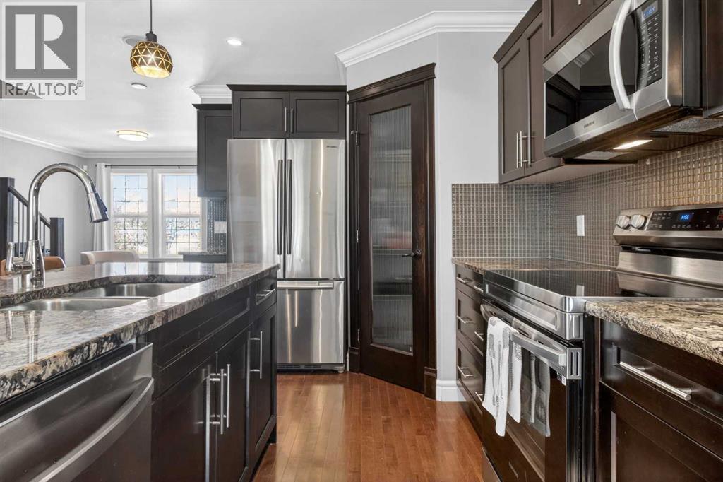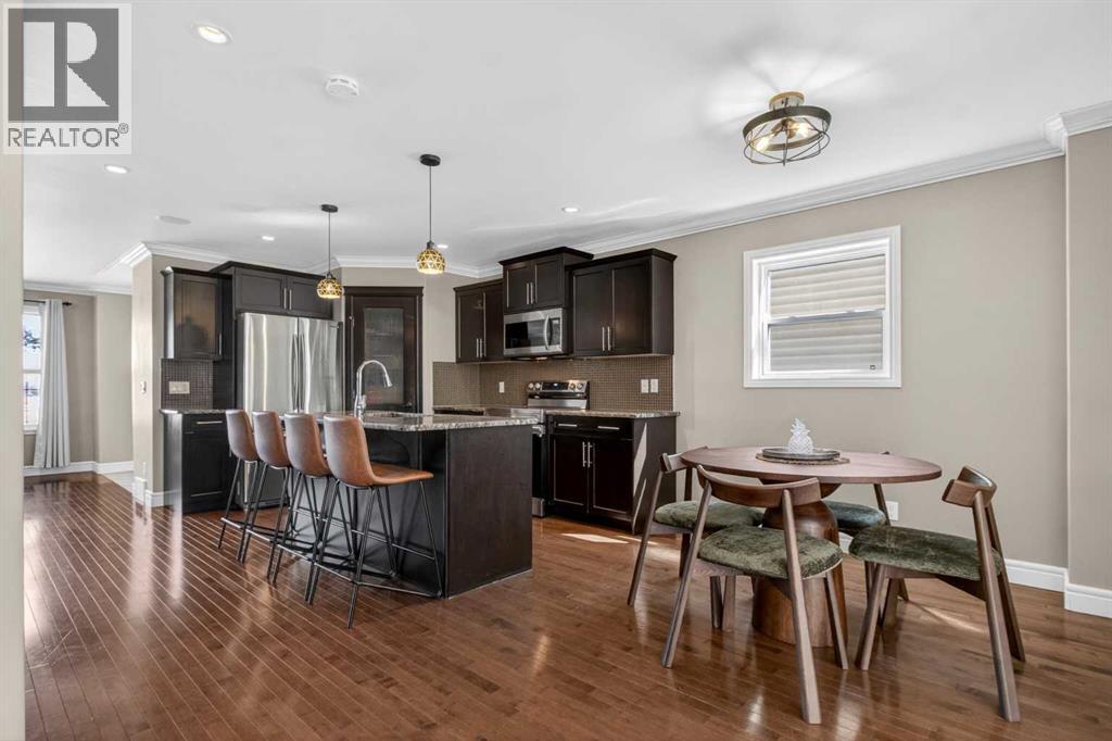 Experience the perfect blend of timeless elegance and modern functionality in this immaculately maintained semi-detached infill, tucked away on a quiet no-through road in the heart of Highland Park. Departing from the predictable layouts of modern builds, this home invites you into a classic, intentional floorplan designed specifically to foster connection and conversation. The heart of the home features a central kitchen equipped with new appliances and a dedicated pantry to keep your workspace pristine. Retreat to your 2nd floor to the expansive primary suite, where oversized picture windows frame the streetscape, leading into a spa-like ensuite. This private sanctuary boasts a deep soaker tub, a dual vanity with extended counter space, and a large window that floods the room with natural light while maintaining complete privacy. A laundry room, three generous bedrooms and a 4 piece bathroom complete this floor - perfect for families or young couples alike! The sophistication continues in the fully developed basement, an entertainer’s dream upgraded with extensive custom cabinetry. Whether you need a professional dual-workspace station for remote work or a sophisticated wet bar with integrated wine storage, this level delivers. You’ll find specialized cabinetry for holiday servingware and kitchen overflow, ensuring everything has its place. This lower level also hosts a cozy designated movie-watching area, a fourth large bedroom, and a full bathroom. With a location that balances peaceful residential living with rapid access to downtown, parks, and major thoroughfares, this home is a rare find for the discerning buyer seeking quality over trend. (id:63190)