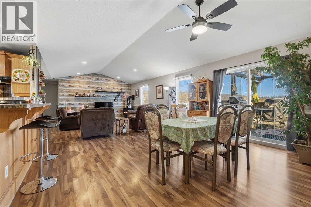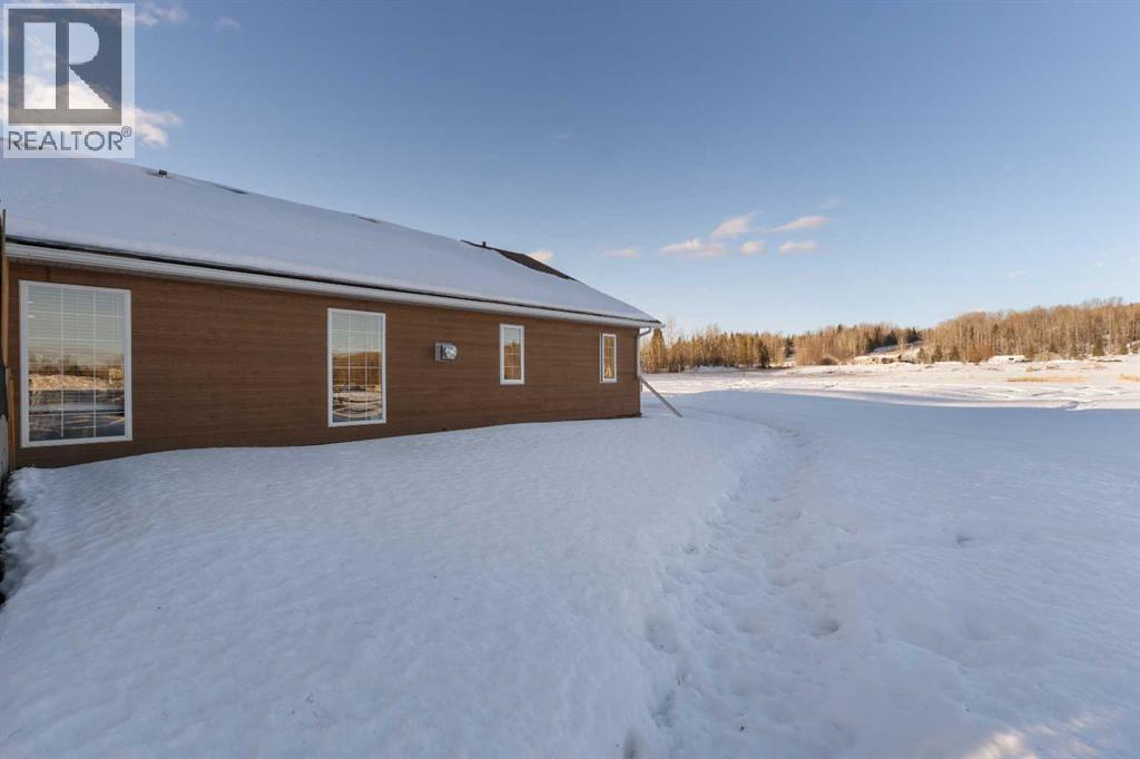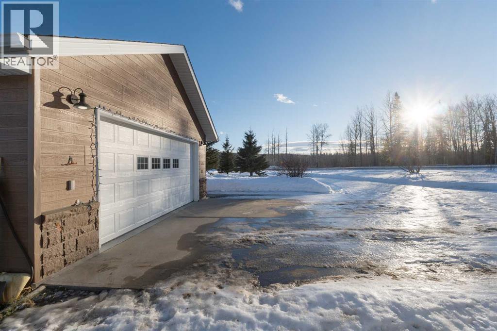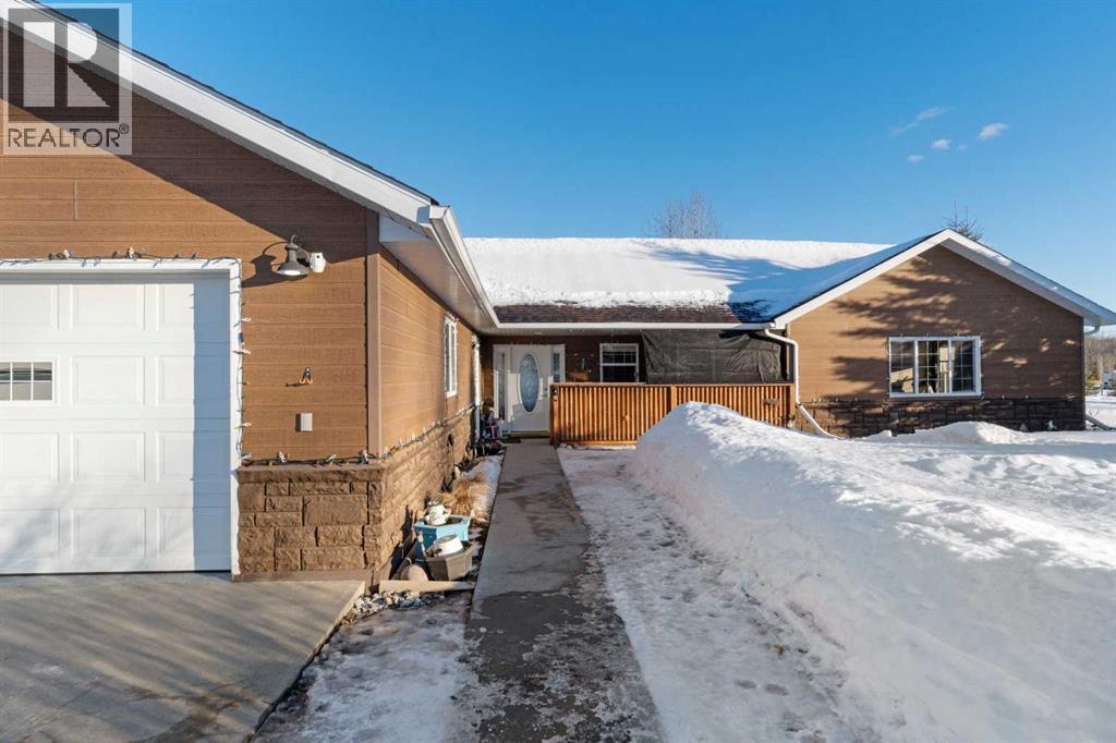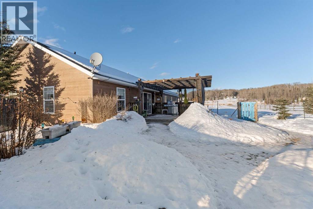 Imagine waking up, grabbing a coffee, and looking out your window to see your horse grazing in the morning mist. This well-maintained, 2,026-square-foot bungalow just west of Whitecourt on Old Ferry Road makes that lifestyle easy to achieve. Sitting on nearly five acres, you have just the right amount of space for a pasture, hay land, and that country feel, all while enjoying the rare luxury of town water.The home itself is a slab-on-grade build from 2007, meaning you get a solid, no-stairs layout that’s as functional as it is spacious. The main living area is wide open with tall vaulted ceilings and a kitchen that’s frankly massive; with 30 feet of counter space and a floating island, you’ll never run out of room for meal prep or getting things ready for a day heading out. When the sun goes down, you can kick back by the corner gas fireplace in the living room or head out to the front porch to soak in the quiet scenery. Comfort was clearly a priority here, with an in-floor heating system to keep your toes warm and forced air for whenever you need to adjust the temperature quickly. The primary suite is a true retreat with its own large ensuite and walk-in closet, and the two additional bedrooms are plenty big for family or guests. Even the double attached garage is thoughtful, featuring a handy two-piece bathroom so you don't have to track the "great outdoors" through the house after a day spent in the pasture or down at the McLeod River. The garage is a perfect and handy extension of the home. Between the durable Hardie Board exterior, the extra outbuildings for your gear, and the paved road right to your driveway, this property really hits that sweet spot. It offers the privacy and freedom of country life without the usual headaches of remote rural living.Are you thinking about putting a fence up right away, or does the current layout already work for where you'd want the horses? (id:63190)