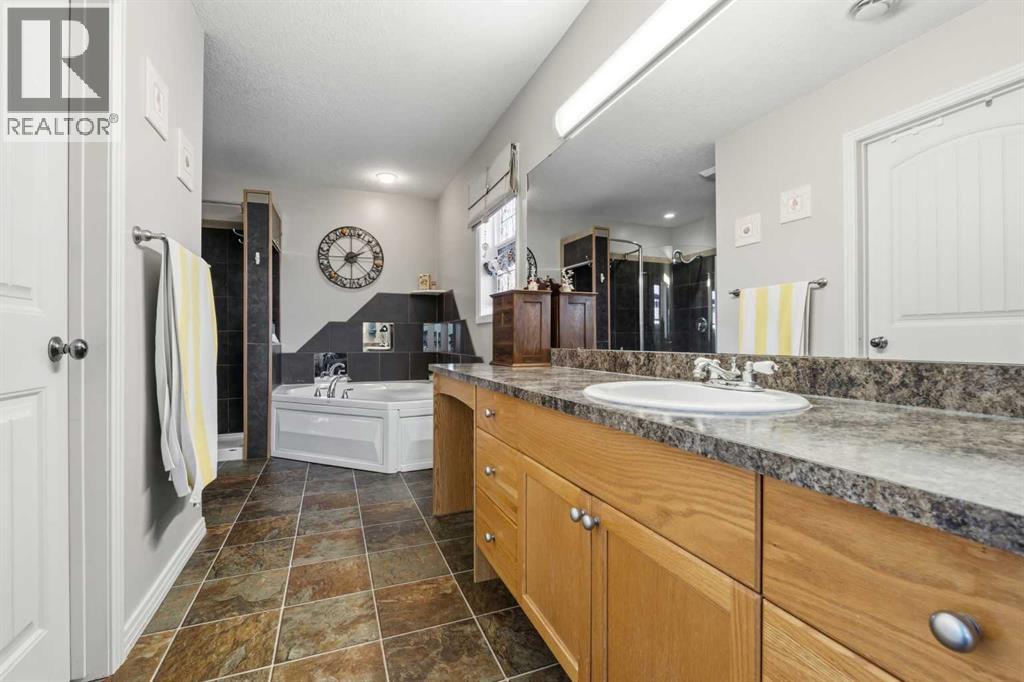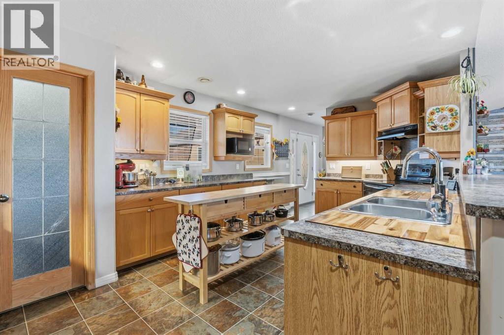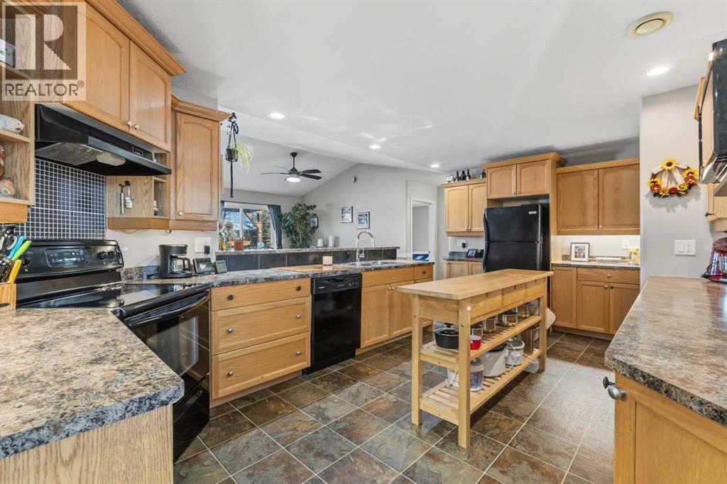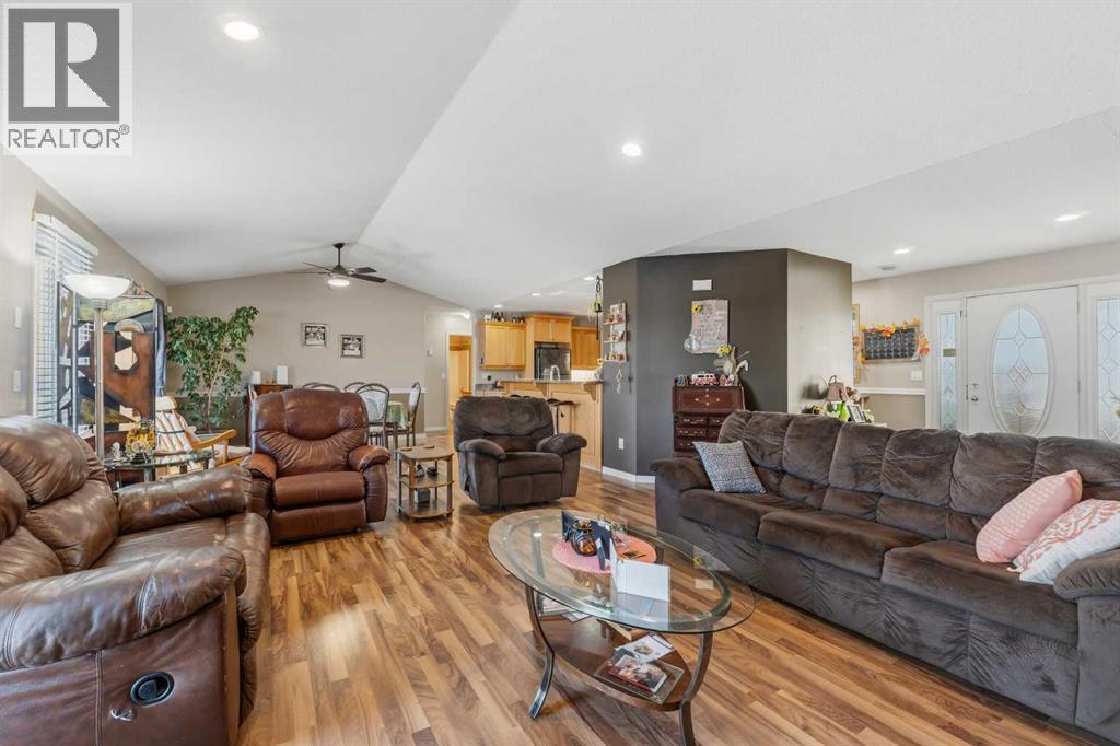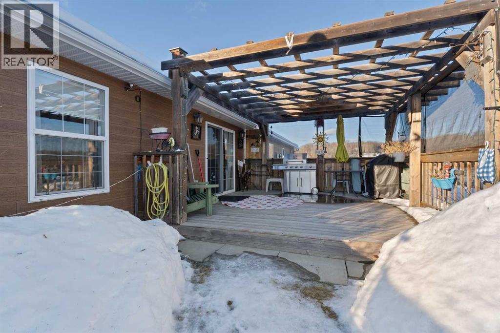 Imagine waking up, grabbing a coffee, and looking out your window to see your horse grazing in the morning mist. This well-maintained, 2,026-square-foot bungalow just west of Whitecourt on Old Ferry Road makes that lifestyle easy to achieve. Sitting on nearly five acres, you have just the right amount of space for a pasture, hay land, and that country feel, all while enjoying the rare luxury of town water.The home itself is a slab-on-grade build from 2007, meaning you get a solid, no-stairs layout that’s as functional as it is spacious. The main living area is wide open with tall vaulted ceilings and a kitchen that’s frankly massive; with 30 feet of counter space and a floating island, you’ll never run out of room for meal prep or getting things ready for a day heading out. When the sun goes down, you can kick back by the corner gas fireplace in the living room or head out to the front porch to soak in the quiet scenery. Comfort was clearly a priority here, with an in-floor heating system to keep your toes warm and forced air for whenever you need to adjust the temperature quickly. The primary suite is a true retreat with its own large ensuite and walk-in closet, and the two additional bedrooms are plenty big for family or guests. Even the double attached garage is thoughtful, featuring a handy two-piece bathroom so you don't have to track the "great outdoors" through the house after a day spent in the pasture or down at the McLeod River. The garage is a perfect and handy extension of the home. Between the durable Hardie Board exterior, the extra outbuildings for your gear, and the paved road right to your driveway, this property really hits that sweet spot. It offers the privacy and freedom of country life without the usual headaches of remote rural living.Are you thinking about putting a fence up right away, or does the current layout already work for where you'd want the horses? (id:63190)
