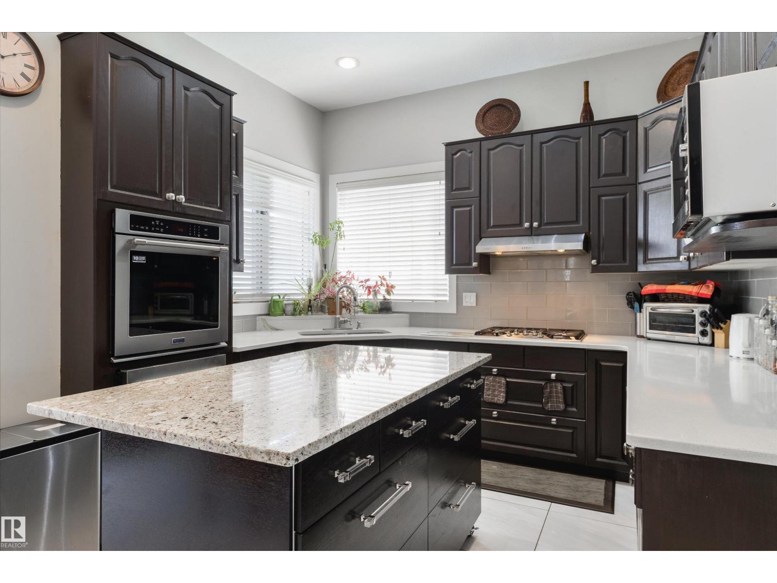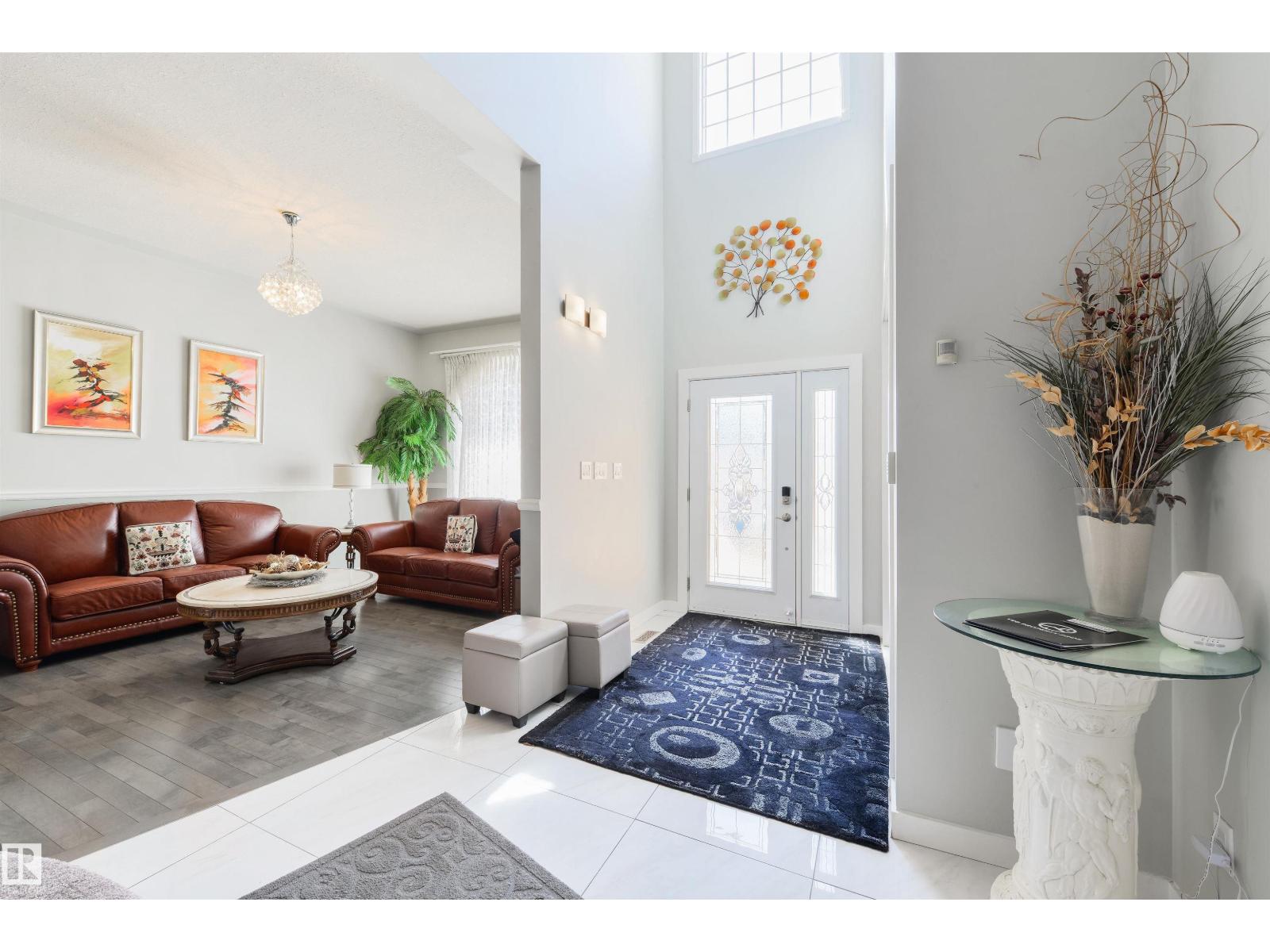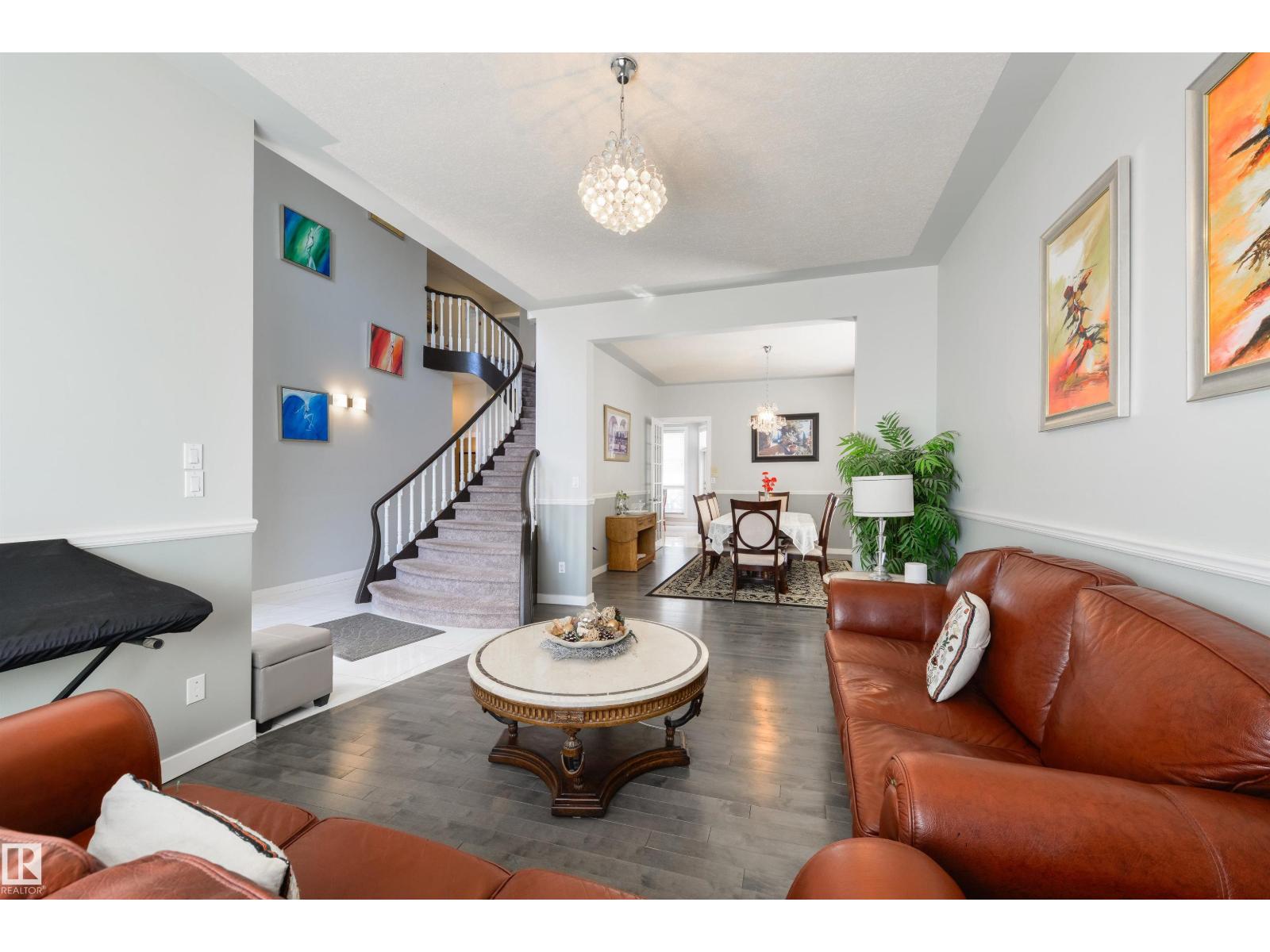 Executive 2-storey in a quiet Oleskiw cul-de-sac offering 2,921 sq. ft. A grand foyer with 10’ ceilings and a custom staircase sets a timeless tone. The updated kitchen showcases high-end appliances, including a gas cooktop. The main floor features a versatile flex room—perfect for a guest bedroom or office. Upstairs you’ll find 4 bedrooms, including a spacious primary retreat with a fully renovated ensuite, plus a second bedroom with its own renovated ensuite. The finished basement adds a bedroom and a large rec room with pool table. Notable features include a dual gas/wood fireplace, central A/C, and a rare triple tandem garage. Steps to the Edmonton Country Club and River Valley trails—an exceptional blend of luxury, space, and location. (id:63190)