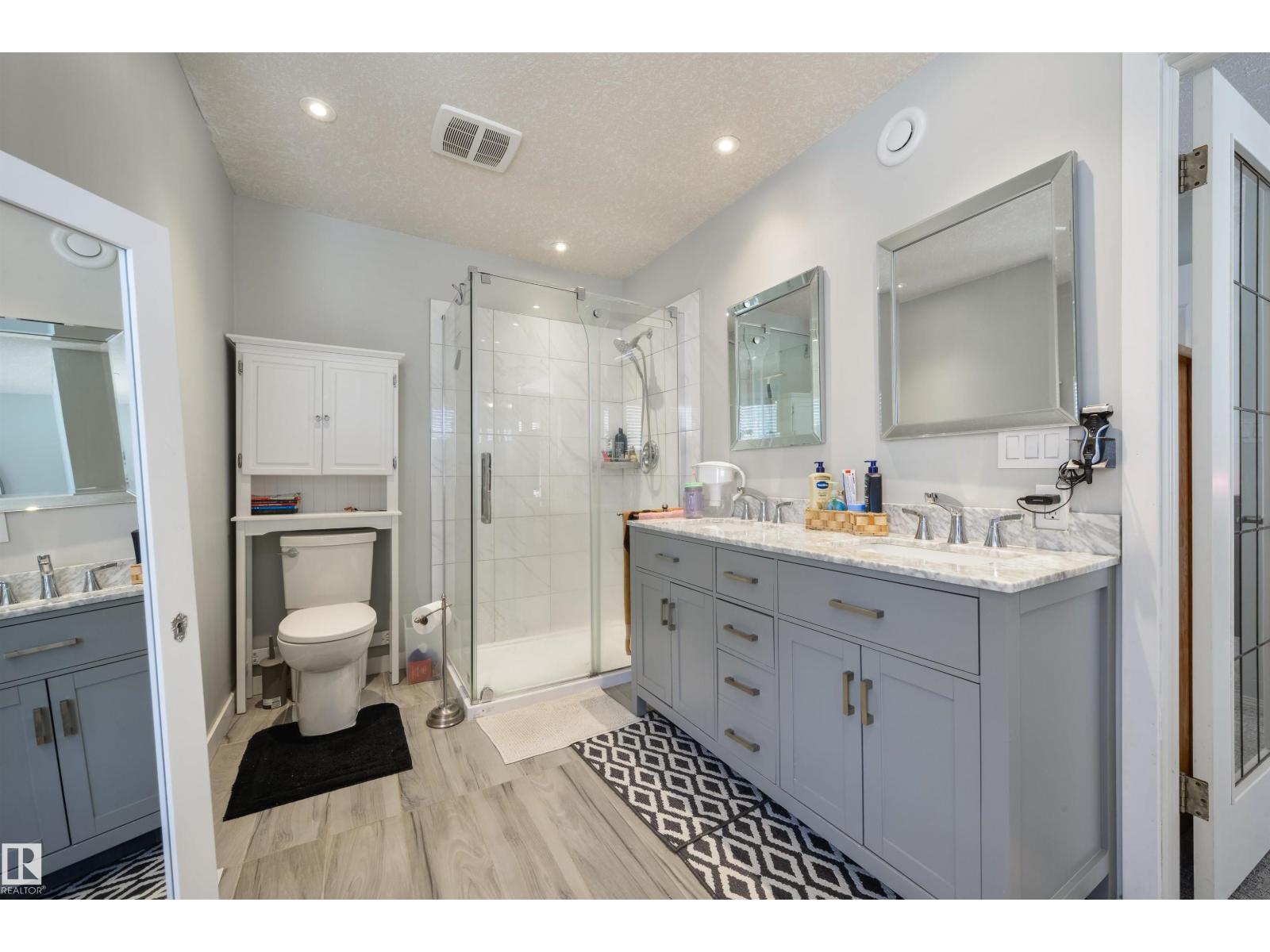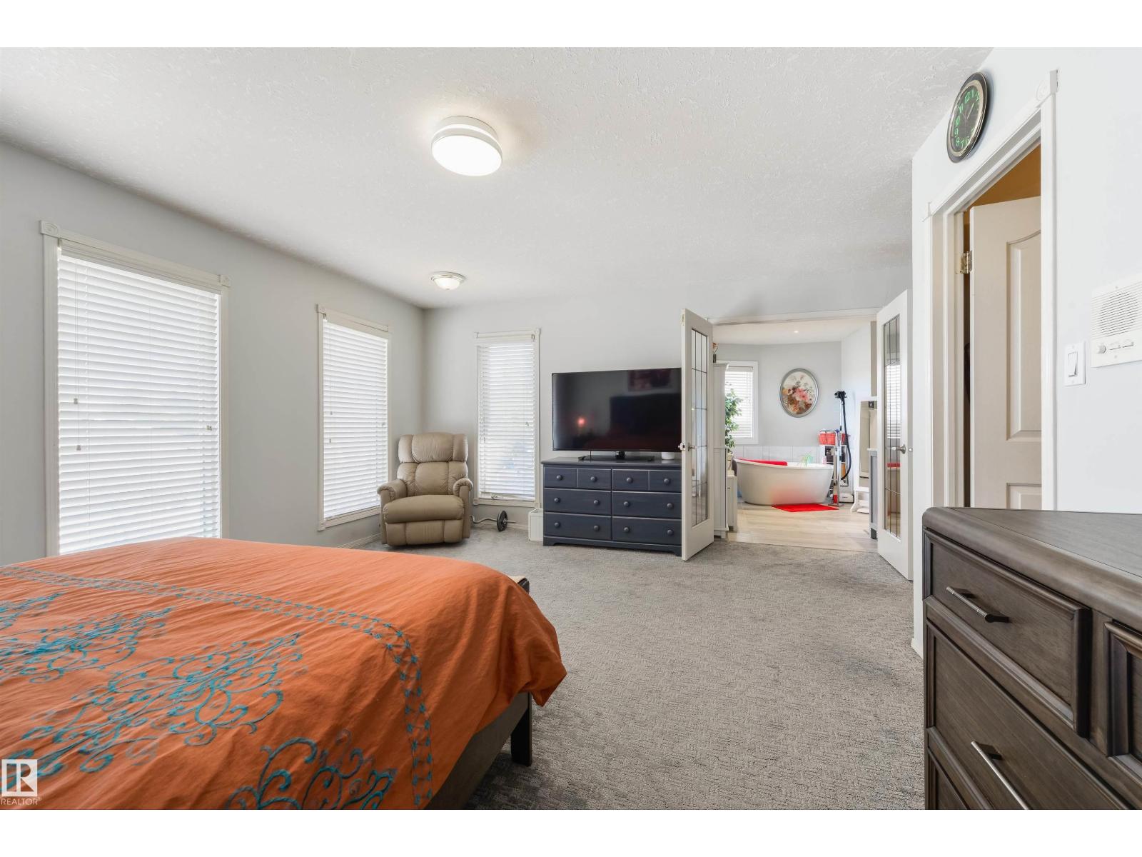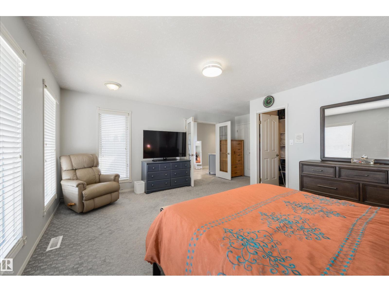 Executive 2-storey in a quiet Oleskiw cul-de-sac offering 2,921 sq. ft. A grand foyer with 10’ ceilings and a custom staircase sets a timeless tone. The updated kitchen showcases high-end appliances, including a gas cooktop. The main floor features a versatile flex room—perfect for a guest bedroom or office. Upstairs you’ll find 4 bedrooms, including a spacious primary retreat with a fully renovated ensuite, plus a second bedroom with its own renovated ensuite. The finished basement adds a bedroom and a large rec room with pool table. Notable features include a dual gas/wood fireplace, central A/C, and a rare triple tandem garage. Steps to the Edmonton Country Club and River Valley trails—an exceptional blend of luxury, space, and location. (id:63190)