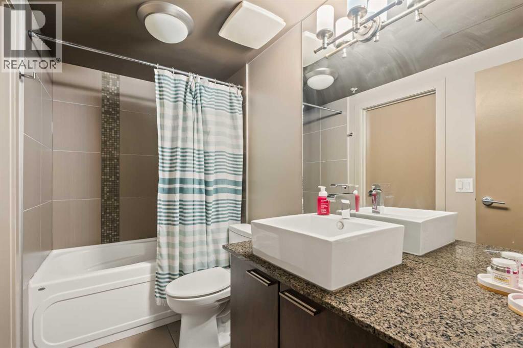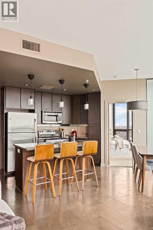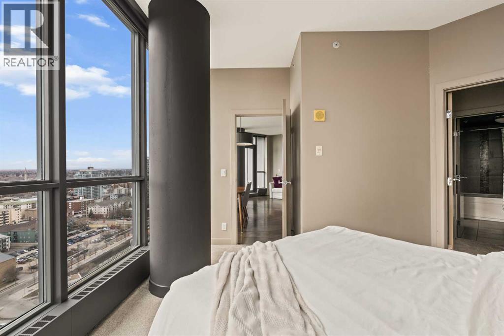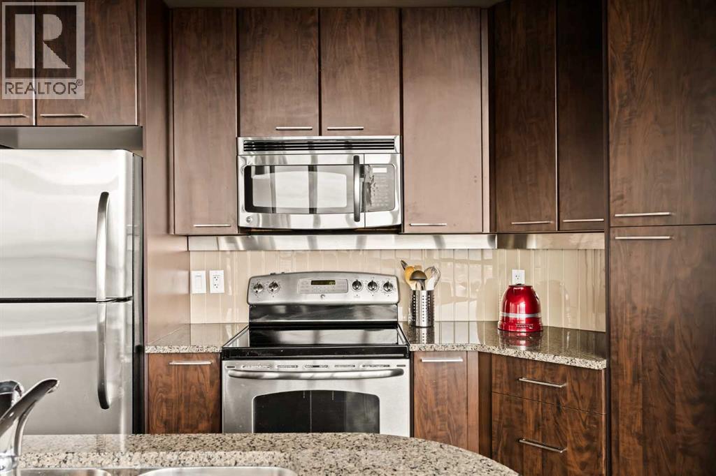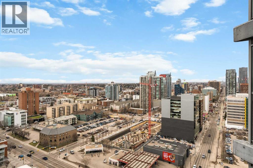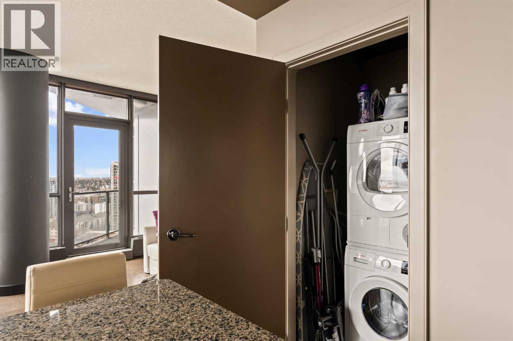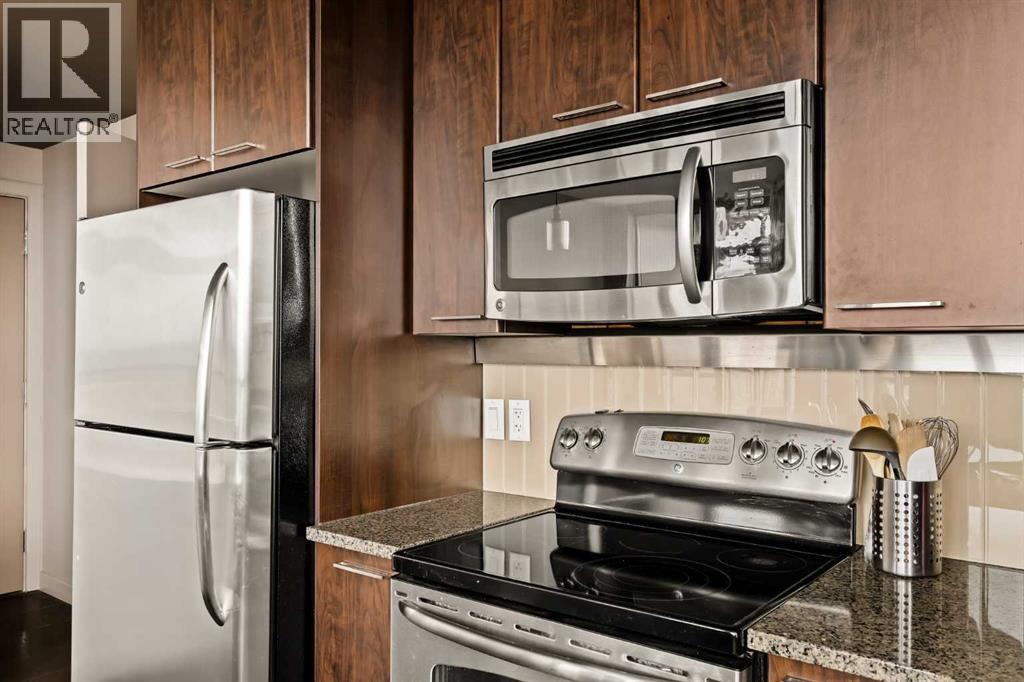 Welcome to Unit 2008, located in the highly sought-after Keynote 1 building in the heart of Calgary’s vibrant Beltline. Perched on the 20th floor, this beautifully appointed 1-bedroom, 1-bathroom condo offers over 560 sq. ft. of thoughtfully designed living space, with stunning south-facing views over the Stampede Grounds and sweeping west-facing views toward the Rocky Mountains. Floor-to-ceiling windows fill the home with natural light throughout the day, creating a bright and inviting atmosphere. The open-concept layout seamlessly connects the kitchen, dining, and living areas, making the space ideal for both everyday living and entertaining. The timeless kitchen features a functional layout with granite countertops, stainless steel appliances, ample cabinetry, and a convenient island with seating. The living area is framed by expansive windows and provides direct access to a private balcony, perfect for enjoying your morning coffee, evening sunsets, or taking in the energy of the city below. The primary bedroom offers a comfortable retreat with space for a king-sized bed. Its unique layout allows for natural light while maximizing the views. The bedroom connects to a walk-through closet and a well-appointed 4-piece bathroom, which is also accessible from the main living area for added convenience. In-suite laundry (new in December 2025) and additional storage complete the interior. Residents of Keynote 1 enjoy access to exceptional amenities, including a fully equipped fitness centre, guest suites, owner’s lounge, and outdoor courtyard space. The building also offers the convenience of secure underground titled parking and direct access to Sunterra Market, making day-to-day living effortless. Situated just steps from downtown offices, restaurants, cafes, transit, the Stampede Grounds, and the river pathway system, this location offers the perfect balance of urban convenience and lifestyle. Combining elevated views, modern finishes, and an unbeatable location, thi s is downtown living at its finest. (id:63190)