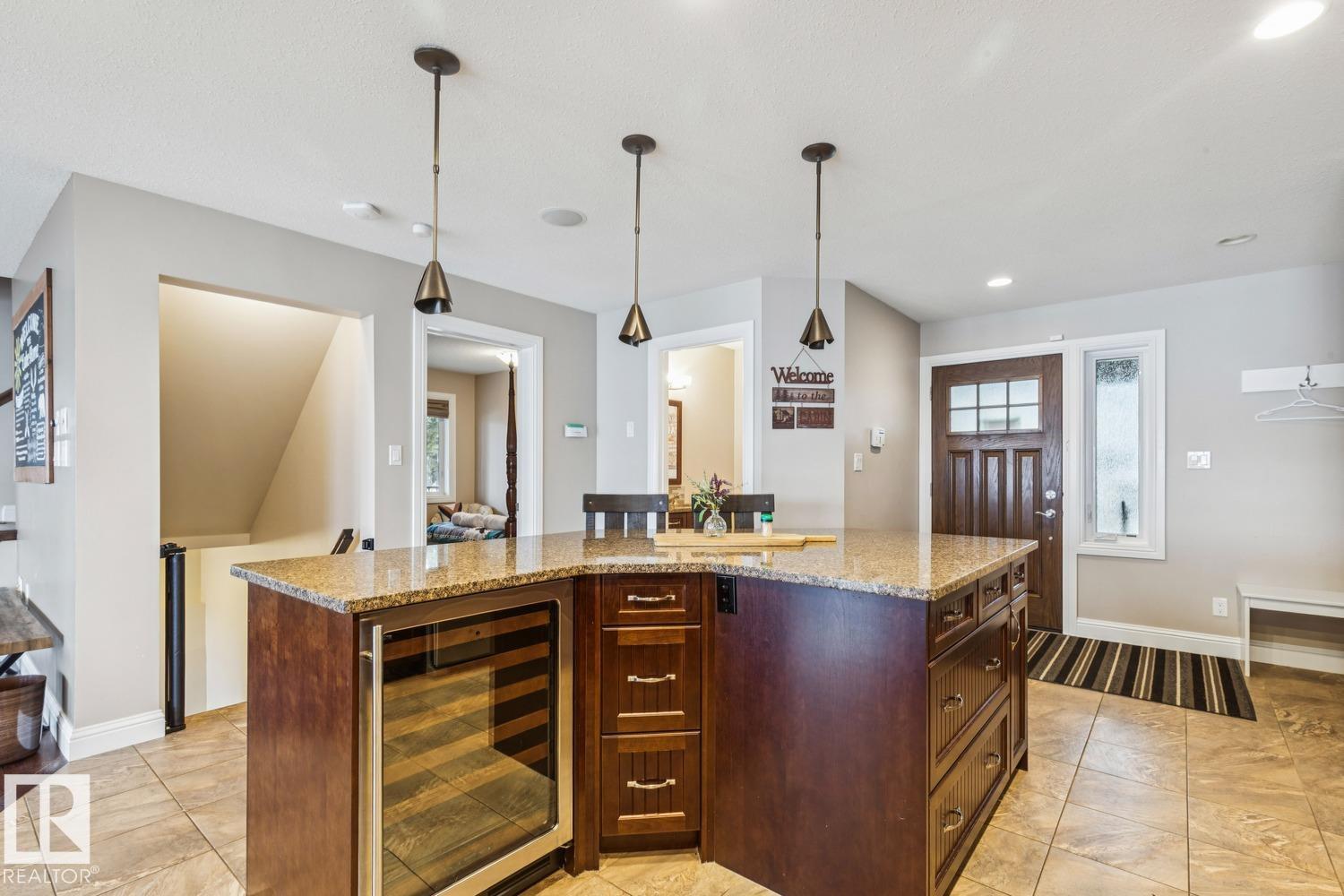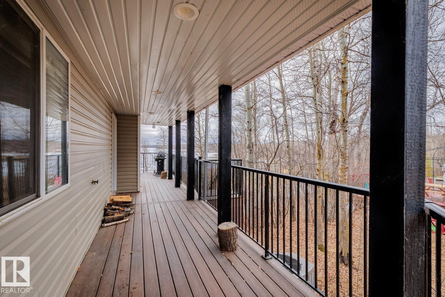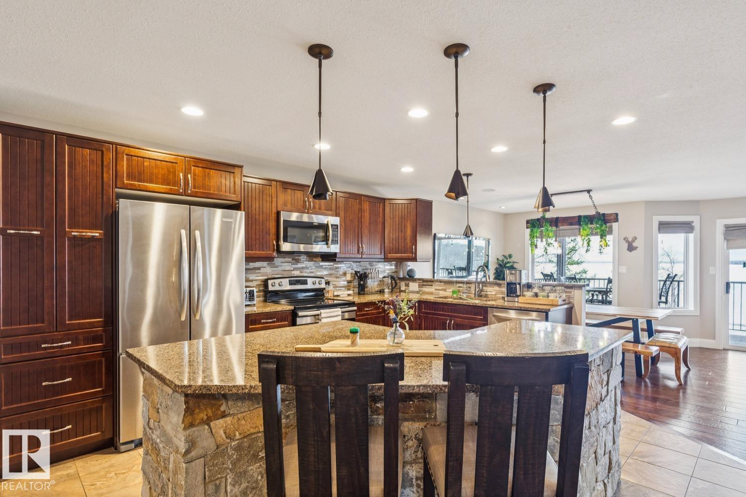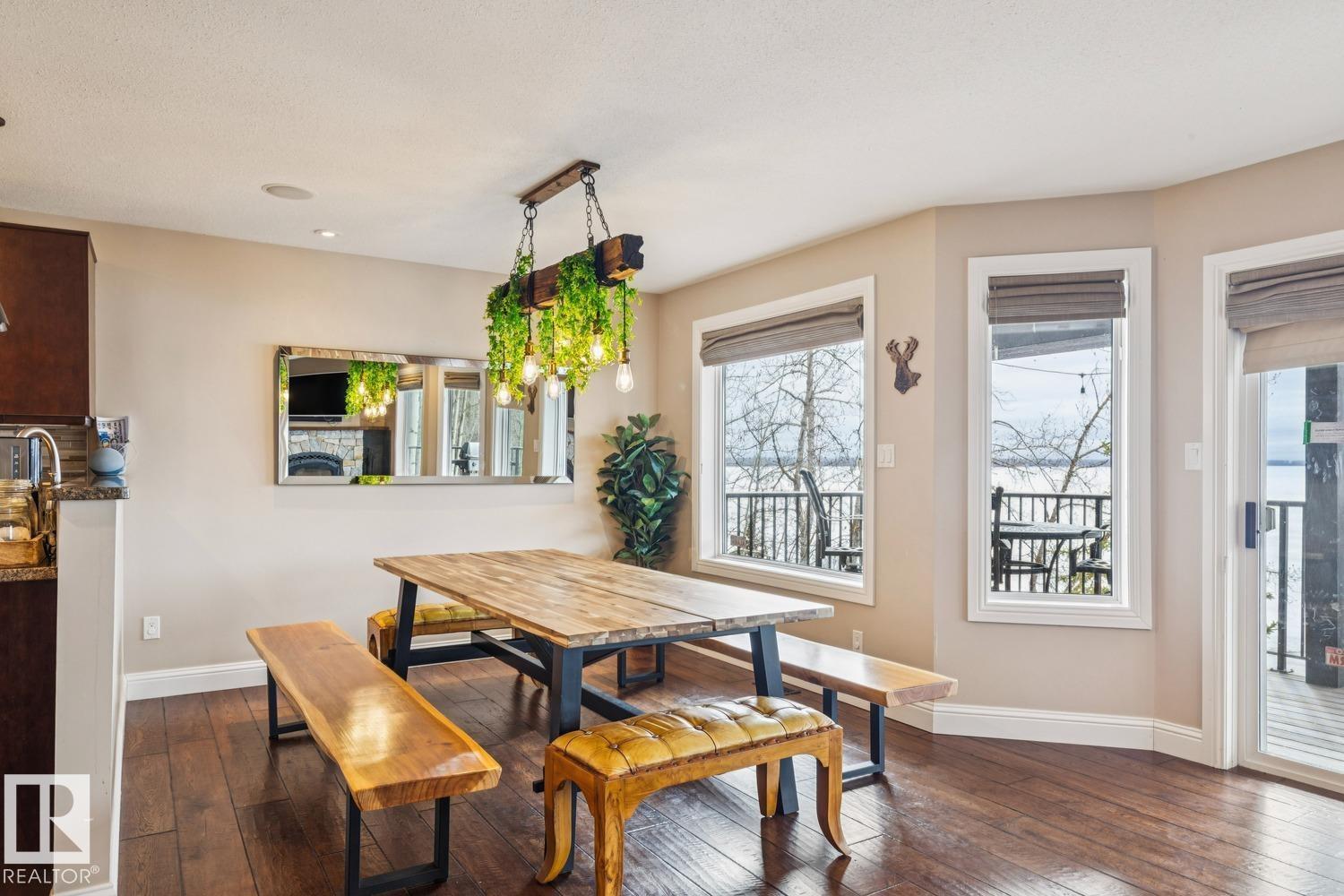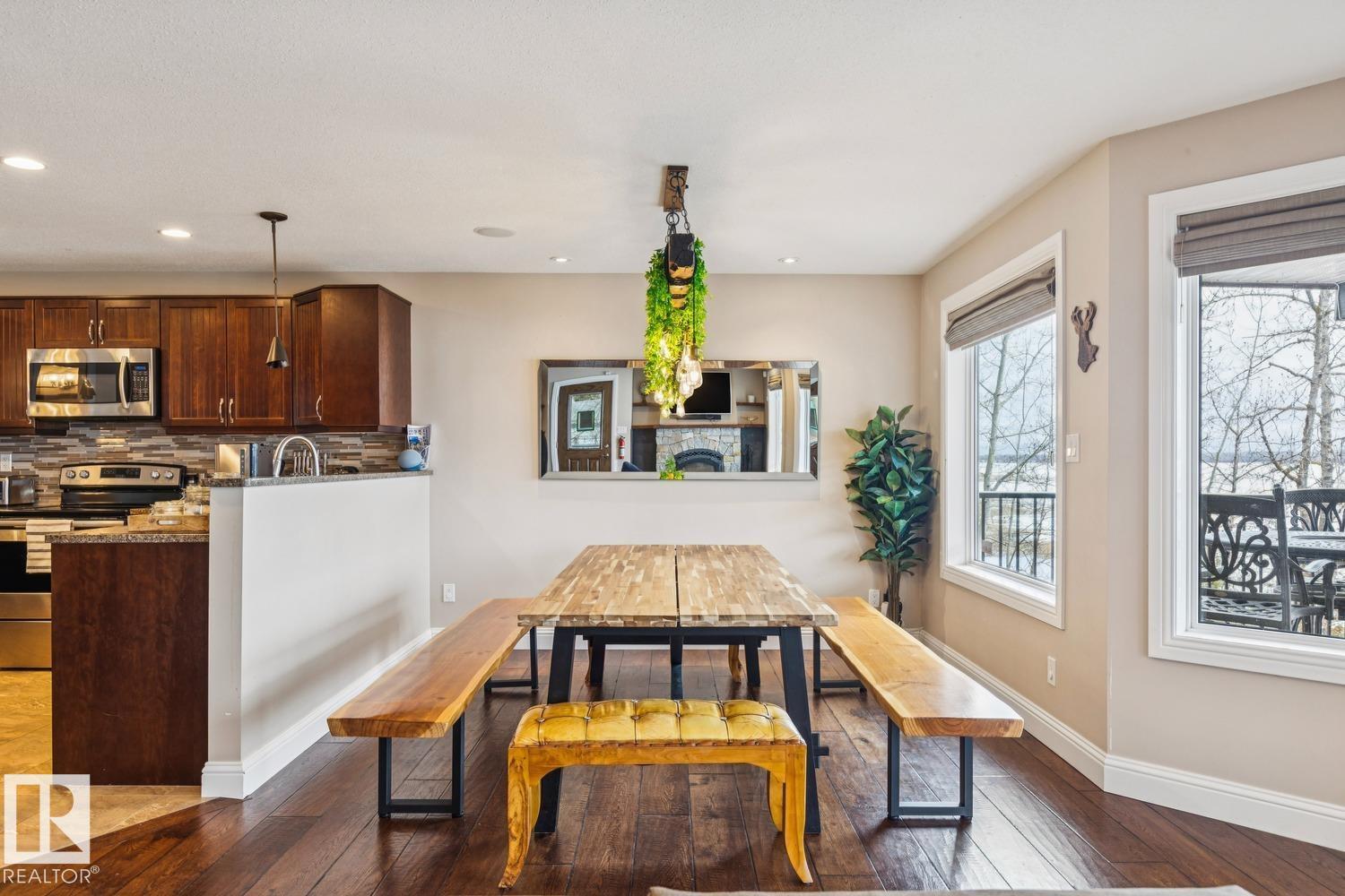 Welcome to one of Birch Cove’s finest lakefront homes, backing directly onto Lac la Nonne with unobstructed views. This beautifully renovated 5 bed, 3 bath home offers over 2,600 sqft of living space with a walk-out basement. The main floor features rich kitchen cabinetry, granite countertops, hardwood floors, and a stunning stone fireplace, all complemented by large windows capturing the lake. Upstairs, the primary suite offers a private retreat with breathtaking views and its own deck overlooking the water. The walk-out lower level is perfect for entertaining with a spacious games area and direct access to the backyard and shoreline. Thoughtfully upgraded throughout with quality finishes, craftsmanship, and attention to detail, this home delivers the perfect blend of luxury, comfort, and true lakefront living. Enjoy your own private escape just steps from the water ideal for year round recreation, boating, and unforgettable memories. Experience lakefront living with unmatched views and direct access. (id:63190)