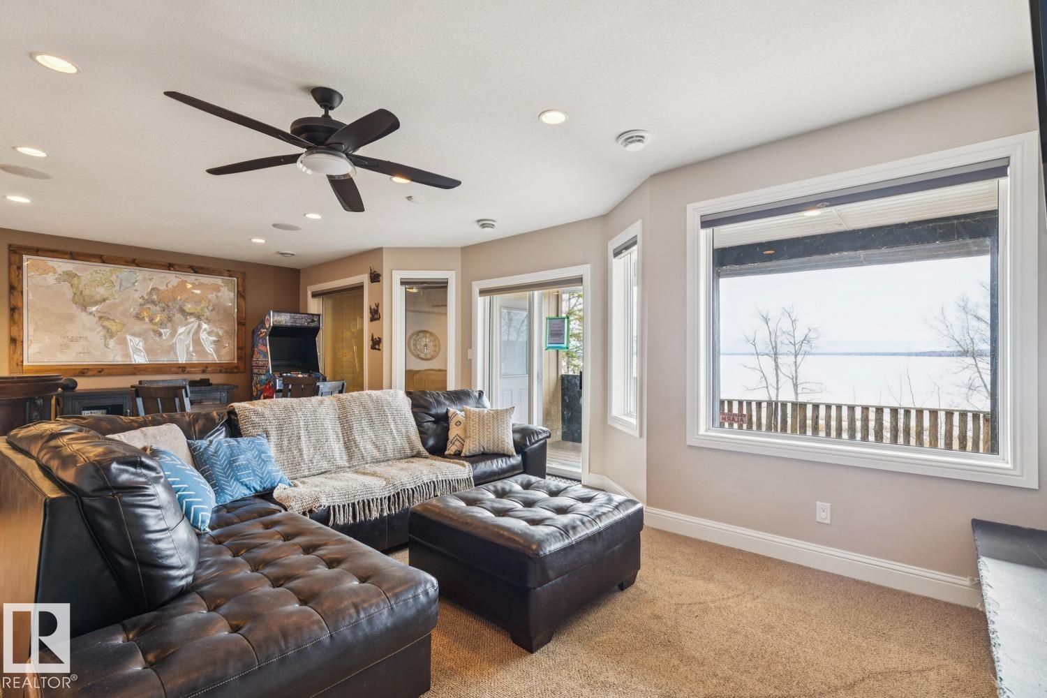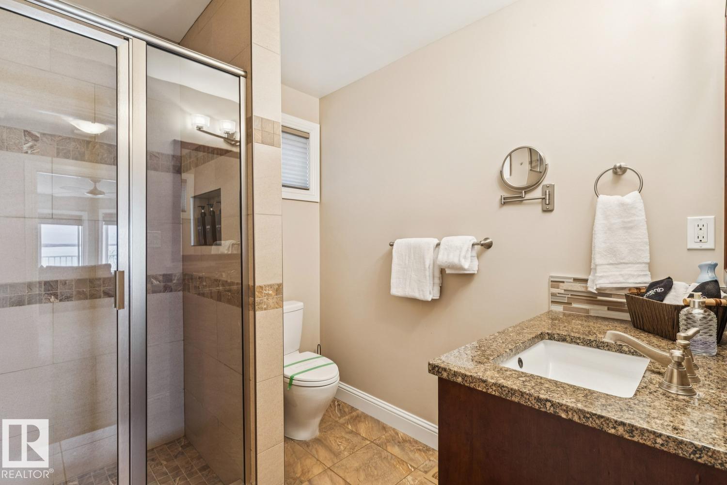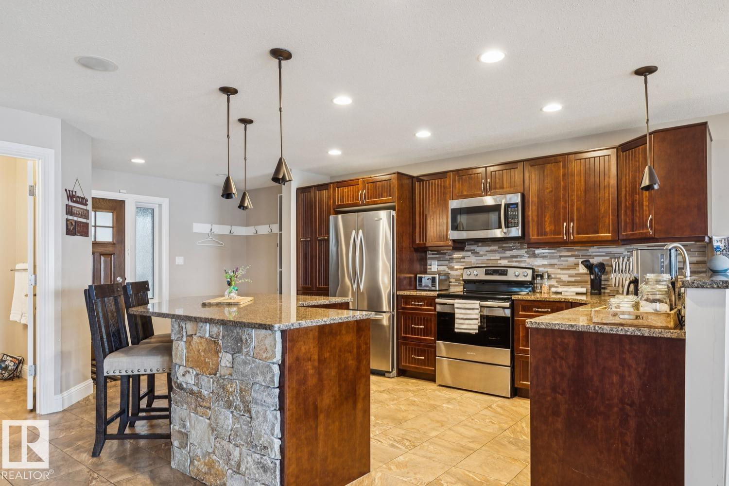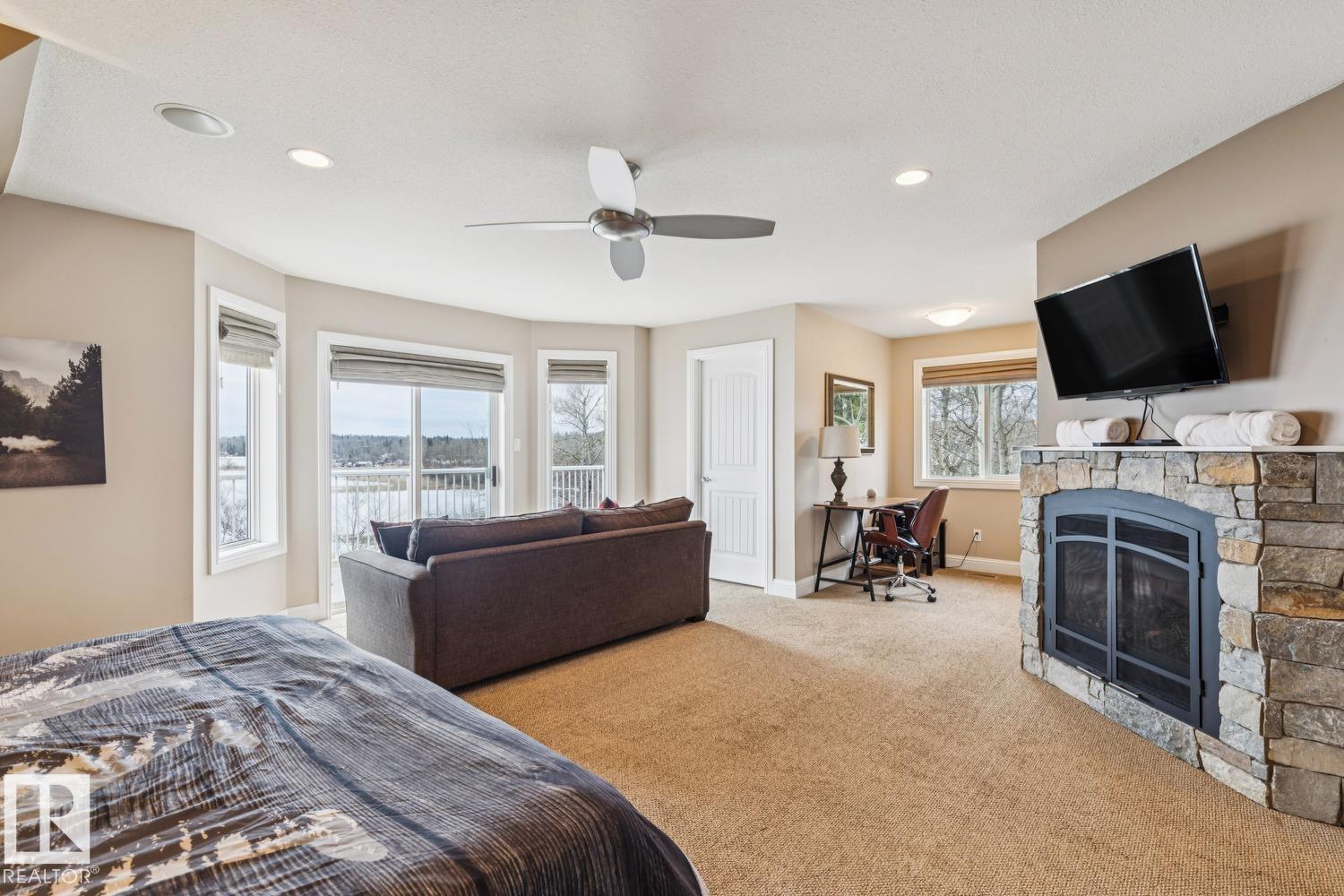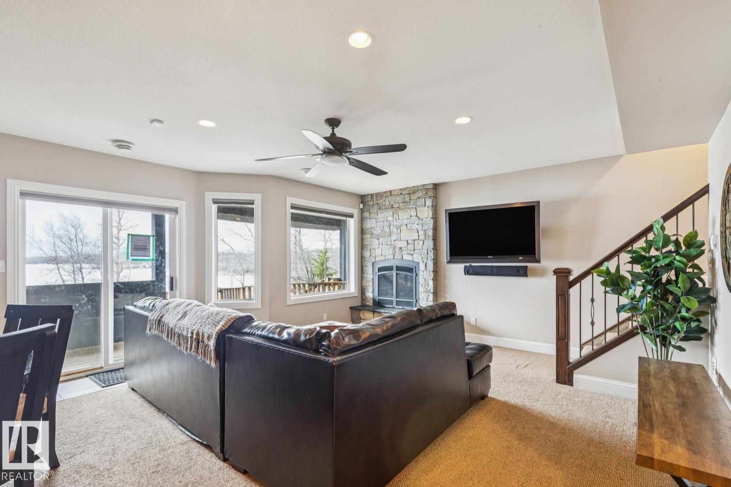 Welcome to one of Birch Cove’s finest lakefront homes, backing directly onto Lac la Nonne with unobstructed views. This beautifully renovated 5 bed, 3 bath home offers over 2,600 sqft of living space with a walk-out basement. The main floor features rich kitchen cabinetry, granite countertops, hardwood floors, and a stunning stone fireplace, all complemented by large windows capturing the lake. Upstairs, the primary suite offers a private retreat with breathtaking views and its own deck overlooking the water. The walk-out lower level is perfect for entertaining with a spacious games area and direct access to the backyard and shoreline. Thoughtfully upgraded throughout with quality finishes, craftsmanship, and attention to detail, this home delivers the perfect blend of luxury, comfort, and true lakefront living. Enjoy your own private escape just steps from the water ideal for year round recreation, boating, and unforgettable memories. Experience lakefront living with unmatched views and direct access. (id:63190)