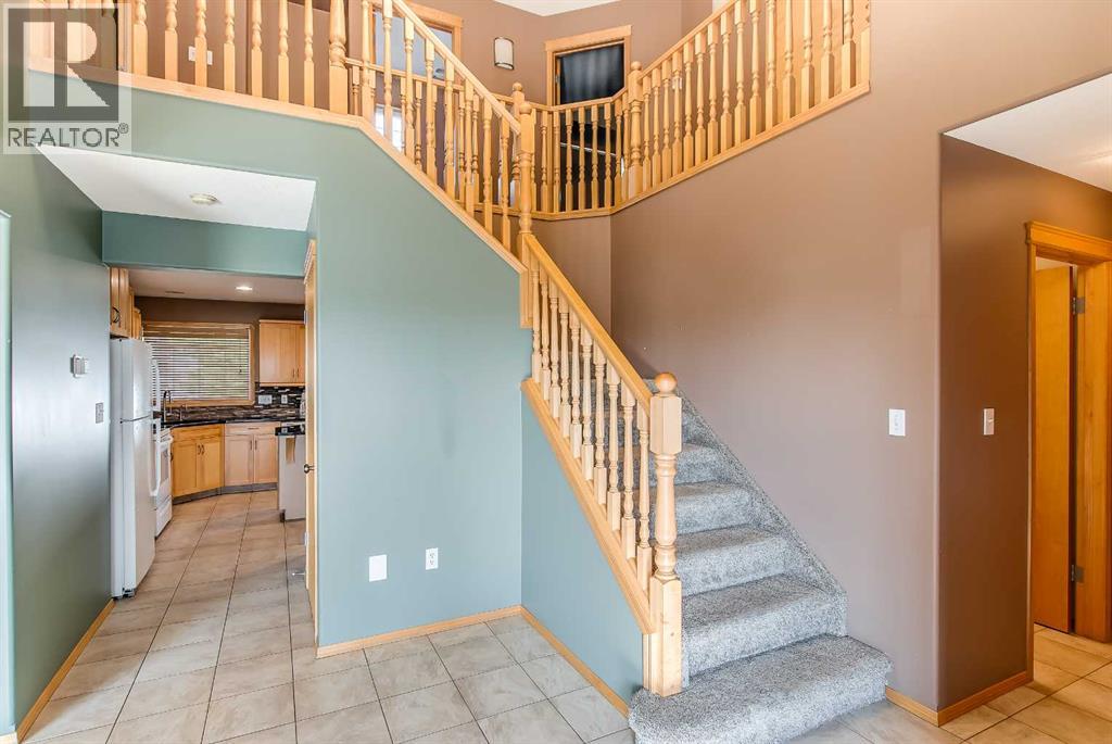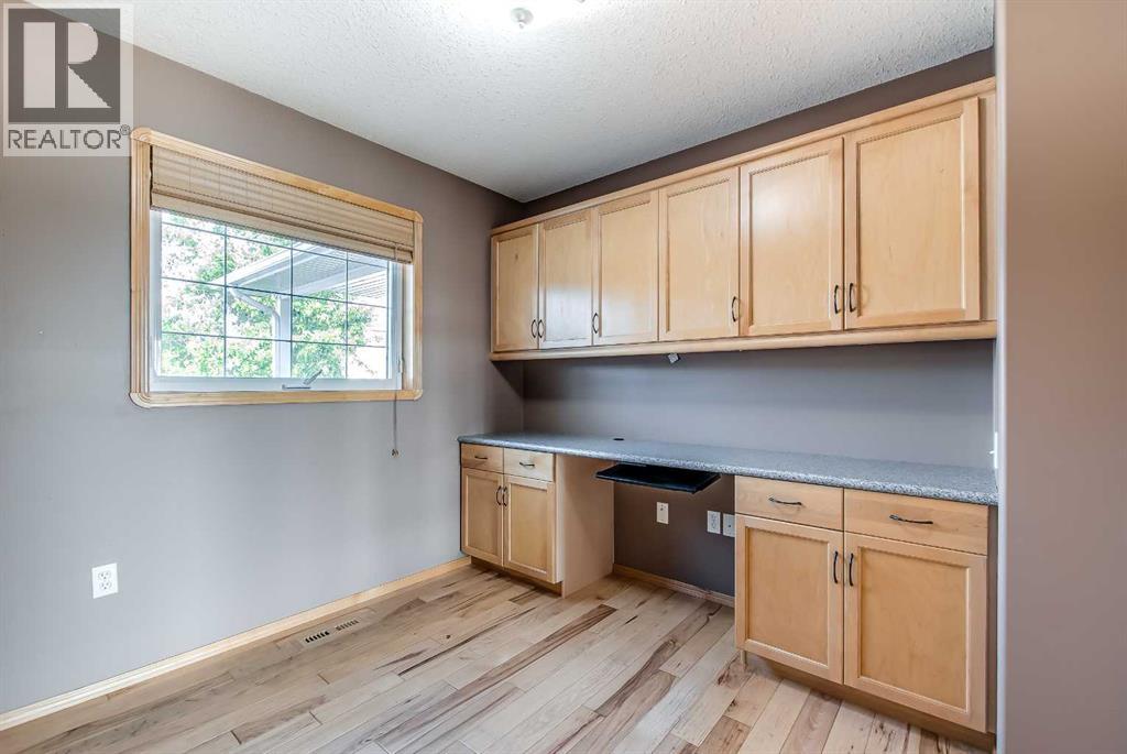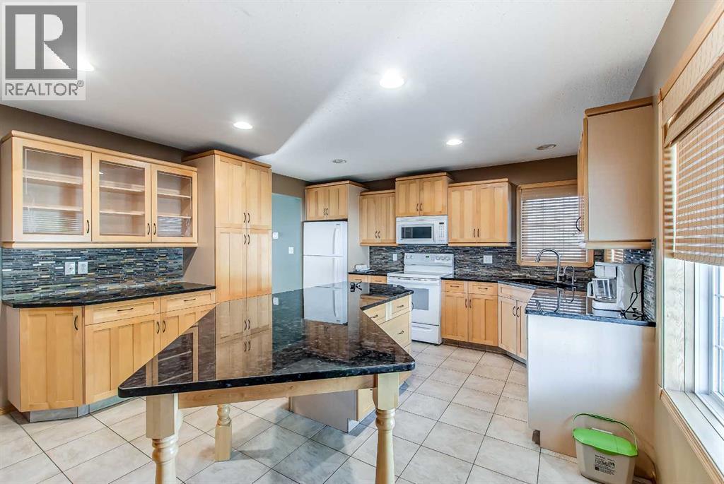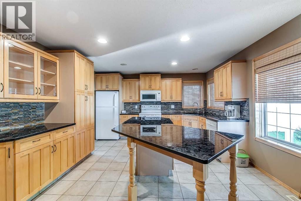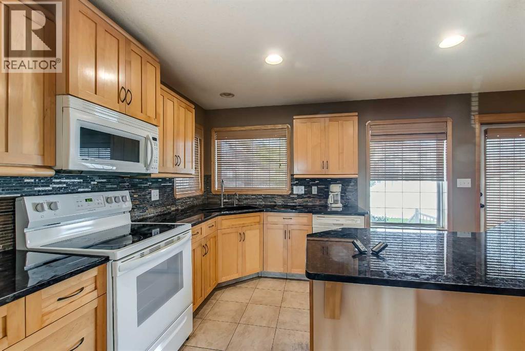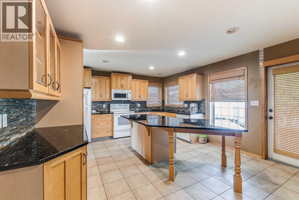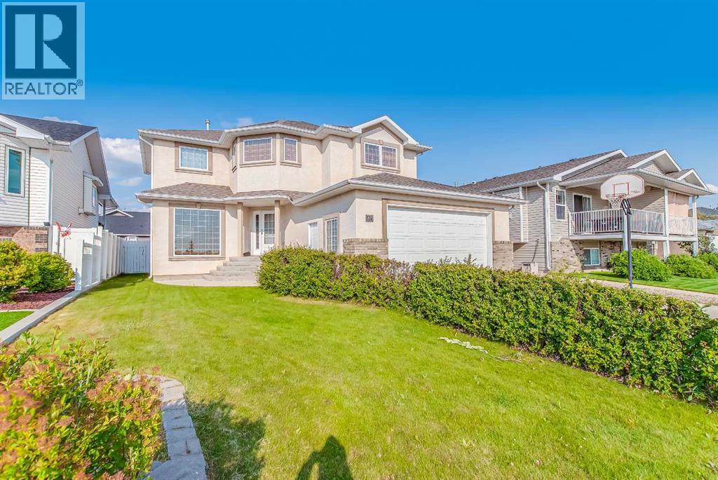 This impressive two-story home offers both elegance and functionality, starting with a grand front entrance that opens to soaring ceilings and a full view of the second floor. Enjoy the peaceful coulee view right from your doorstep! The main floor includes a front living room that flows into a private office with built-in desk and cabinetry—perfect for working from home. The spacious kitchen features an abundance of cabinetry, black granite counter tops, built-in eating space , and a cozy adjacent sitting or dining area with a wood-burning fireplace. You’ll also find a 2-piece bathroom and a well-equipped laundry room with plenty of storage on this level. Upstairs, you’ll find four generously sized bedrooms, two with built-in desks—ideal for kids or homework spaces. The spacious primary bedroom features a full en-suite with a beautiful clawfoot soaker tub and separate shower. A 4-piece main bath completes the upper level. The fully finished basement offers a large family room, a guest bedroom with direct access to the third full bathroom, and a storage room with ample built-in shelving. Additional highlights include a heated double attached garage, a covered back patio with a gas BBQ line, underground sprinklers, and an unbeatable location with scenic views. (id:63190)