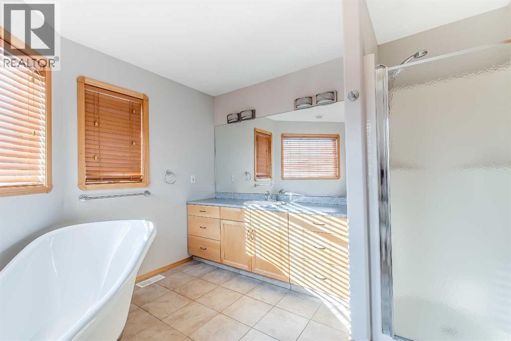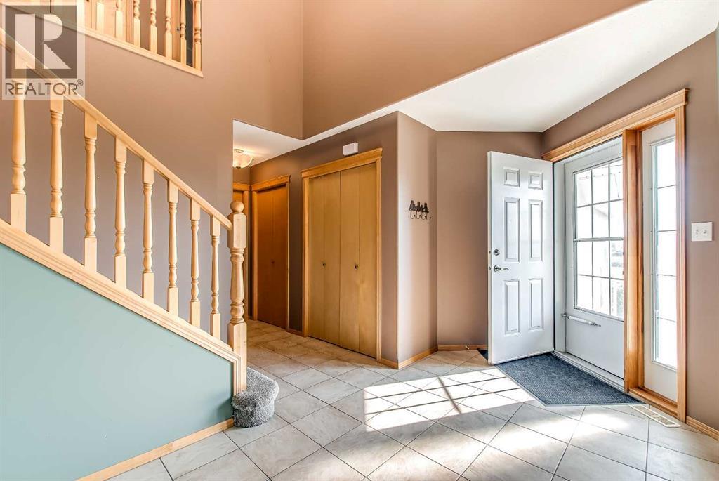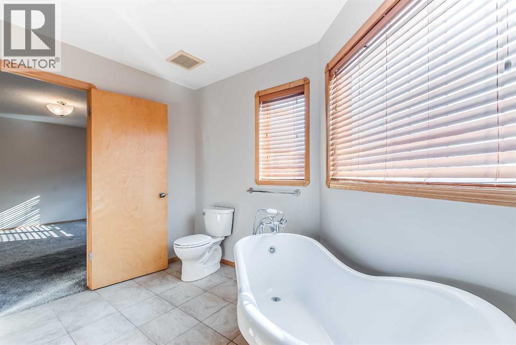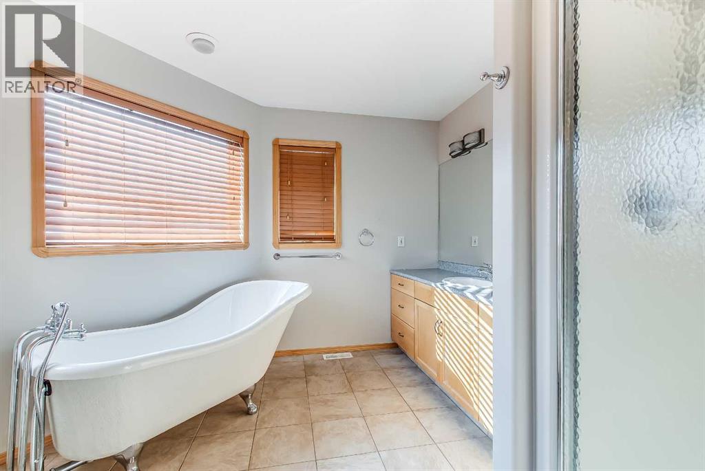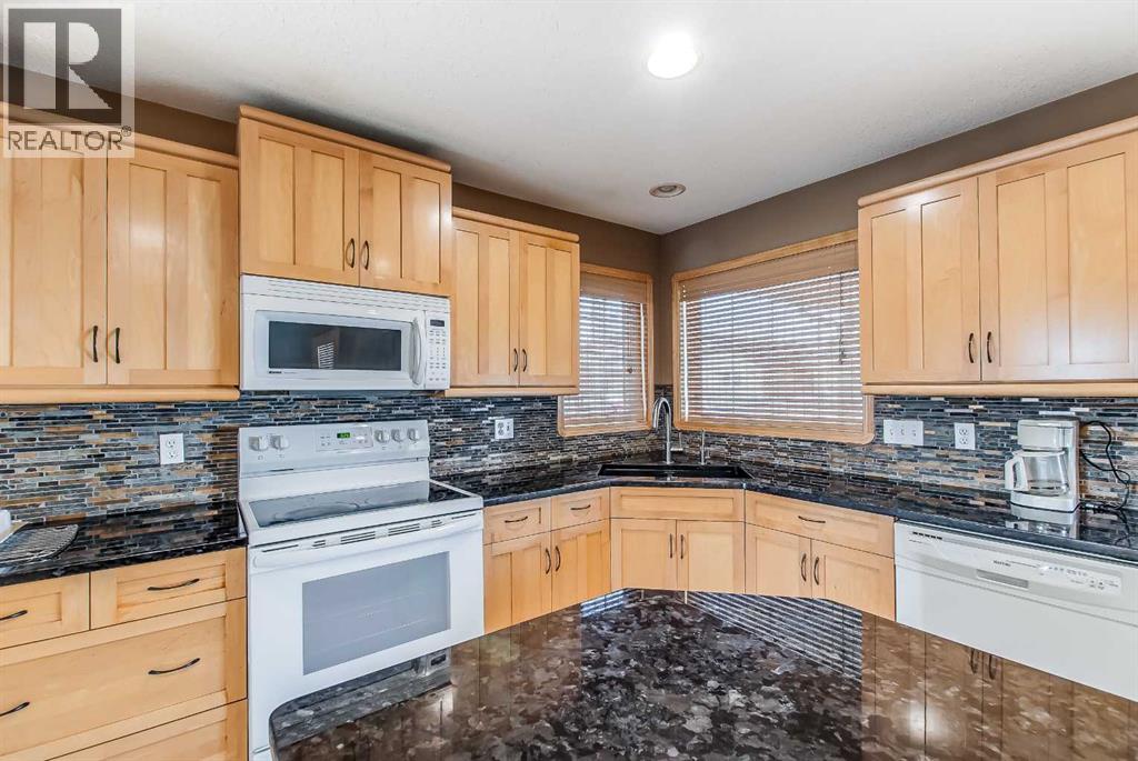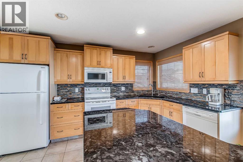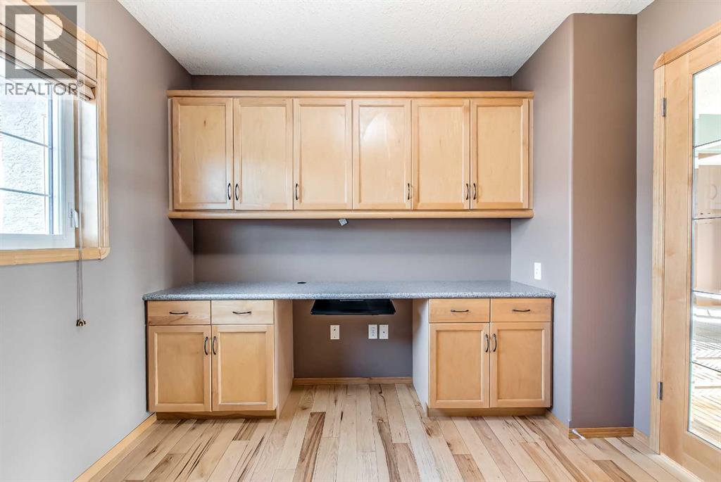 This impressive two-story home offers both elegance and functionality, starting with a grand front entrance that opens to soaring ceilings and a full view of the second floor. Enjoy the peaceful coulee view right from your doorstep! The main floor includes a front living room that flows into a private office with built-in desk and cabinetry—perfect for working from home. The spacious kitchen features an abundance of cabinetry, black granite counter tops, built-in eating space , and a cozy adjacent sitting or dining area with a wood-burning fireplace. You’ll also find a 2-piece bathroom and a well-equipped laundry room with plenty of storage on this level. Upstairs, you’ll find four generously sized bedrooms, two with built-in desks—ideal for kids or homework spaces. The spacious primary bedroom features a full en-suite with a beautiful clawfoot soaker tub and separate shower. A 4-piece main bath completes the upper level. The fully finished basement offers a large family room, a guest bedroom with direct access to the third full bathroom, and a storage room with ample built-in shelving. Additional highlights include a heated double attached garage, a covered back patio with a gas BBQ line, underground sprinklers, and an unbeatable location with scenic views. (id:63190)