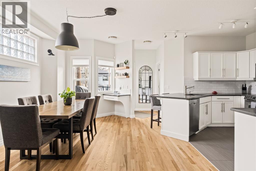 **OPEN HOUSE SATURDAY APRIL 25 12-2pm.** Tired of seeing the same infill over and over again? This might be the one for you! Offering nearly 2,400 square feet of thoughtfully designed living space across three levels, this 4-bedroom, 3.5-bathroom home blends charm with modern upgrades that make it truly move-in ready. Step through the welcoming covered front entry and into a bright, open main floor where freshly refinished hardwood floors are the standout feature. The heart of the home is an open-concept kitchen, dining, and living area flooded with natural light and a 3 sided fireplace dividing the dining and living area. The kitchen features white cabinetry, dark quartz countertops, subway tile backsplash, an extended counter area with breakfast bar seating, stainless steel appliances and a good size corner pantry. The adjacent dining area easily accommodates a large family table, while the spacious living room offers glass block windows for added natural light without sacrificing privacy, and room for everyone to gather. The main floor also features a powder room and laundry area with a newer washer/dryer (2024). Upstairs, the primary suite is a true retreat with french doors, a bold designer accent wall, generous walk in closet space, and a private ensuite that was completely renovated in May 2025 with a double vanity and a glass-enclosed shower and new window. Two additional well-sized bedrooms both with ample closet space, large windows and a shared 4 piece bath complete the upper level. The fully finished basement doesn’t feel like a basement with large windows looking out to the backyard. The basement adds valuable living space with a fourth bedroom and an additional full bathroom, perfect for guests, teenagers, or a home office setup. There is additional storage in the utility room and under the stairs. Outside, enjoy a private, fully fenced east facing backyard with low maintenance turf (August 2020), a newer composite deck with modern black railing (Octob er 2020), ideal for summer entertaining. The deck is accessible directly from the main floor and offers views of the neighbourhood. Fresh paint throughout the home, refinished hardwood floors, and a welcoming curb appeal with a charming covered front porch and upper balcony make this infill stand out amongst the rest. All of this in Glenbrook, one of Calgary's most family-friendly inner-west communities. Just minutes to the Glenbrook Community Association, 20 minute walk to the c-train, and close proximity to schools, parks, Westbrook Mall, and with quick access to downtown and the mountains this home is not to be missed! (id:63190)