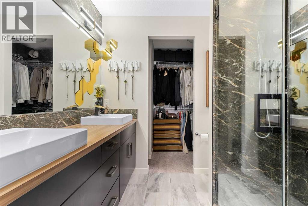 Loaded with high-end upgrades and modern enhancements throughout, this rare, fully integrated smart home offers bold design, modern efficiency, and exceptional indoor-outdoor living. Featuring a brand-new architectural shingle roof with turbo vents for attic rain protection, durable vinyl and Hardie board siding, new double-pane energy-efficient windows, upgraded electrical panel, an enhanced HVAC system, whole-home water filtration, a smart thermostat, and full home automation, this residence was thoughtfully designed for comfort, convenience, and long-term value.Inside, architectural details set the tone with a striking feature fireplace wall, full-height tempered glass architectural divider, built-in media shelving, and whole-home smart lighting and dimmers. The upgraded kitchen showcases quartz countertops, modern cabinet refacing, pull-out storage organizers, a stylish backsplash, and a smart fridge with a hidden pantry entry, blending sleek aesthetics with everyday functionality.Upstairs, the spa-inspired ensuite delivers standout luxury with a custom walk-in steam shower, rainfall showerhead, frameless glass enclosure, oversized tilework, a soaker tub, a double vanity with an LED mirror, and motion-sensor lighting. Thoughtful storage solutions continue throughout with closet organizers, built-in shelving, a mudroom with custom storage, and an organized laundry space featuring a Samsung washer and dryer.Outdoor living is where this home truly shines. Enjoy a custom deck with frameless glass railings, a private hot tub retreat with privacy screen, and a sunken firepit with built-in seating, all surrounded by professional landscaping, horizontal privacy fencing, solar and wired exterior lighting, and permanent Celebrite holiday lighting. The stamped concrete pad, featuring a compass inlay and upgraded alley access, further elevates the exterior appeal.The fully finished garage transforms into an entertainer’s retreat with golf simulator capability, proje ctor setup, custom storage, and a rare wood-burning garage fireplace, creating a truly one-of-a-kind space.Offering 3 spacious bedrooms, 2.5 bathrooms, 1,672 sq ft above grade, and 870 sq ft of basement space with egress windows, this home delivers over 2,500 sq ft of total potential living space in a highly sought-after Copperfield location.A truly unique opportunity where luxury, technology, and lifestyle come together. (id:63190)