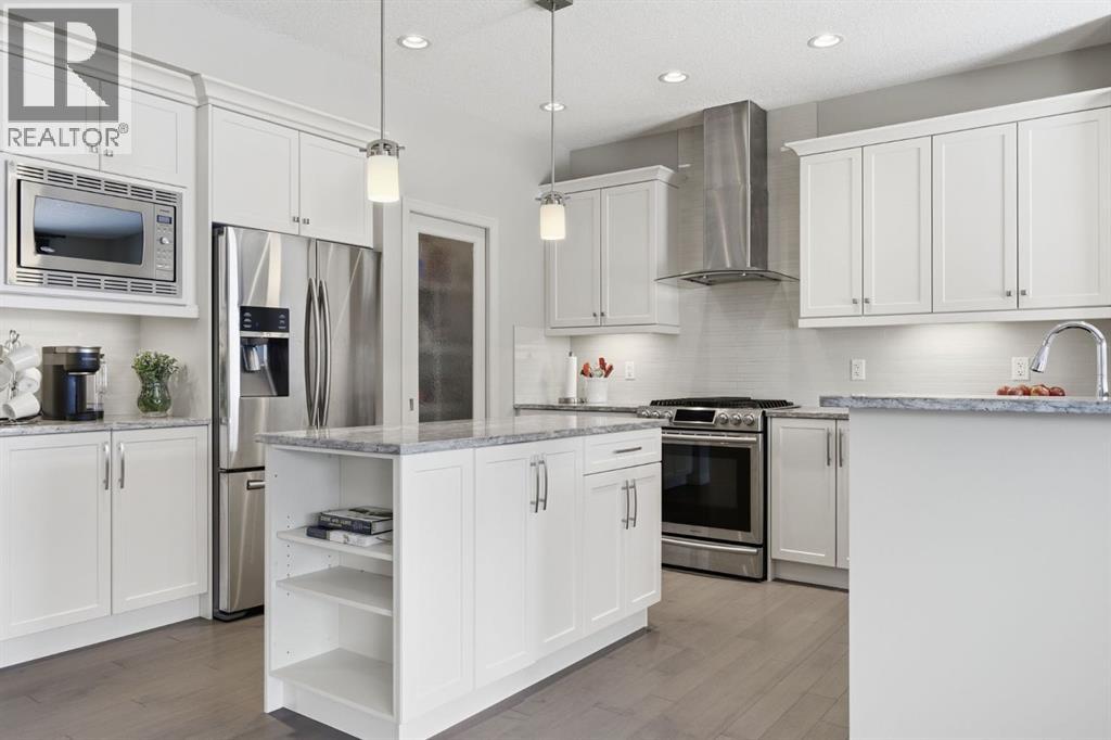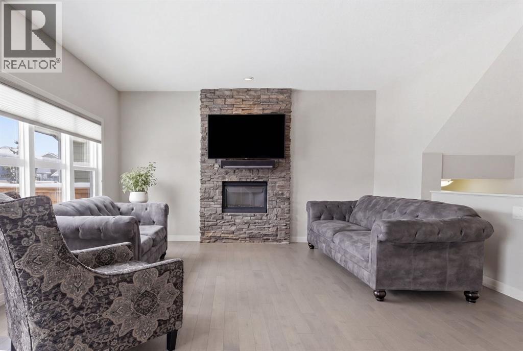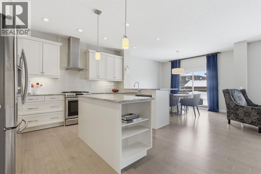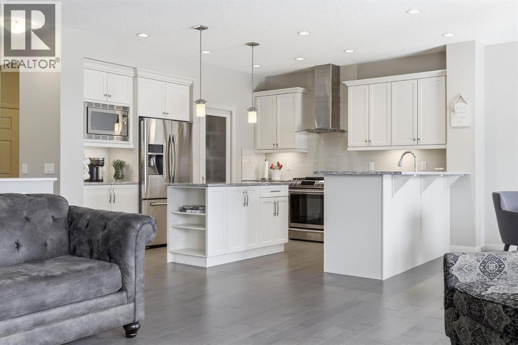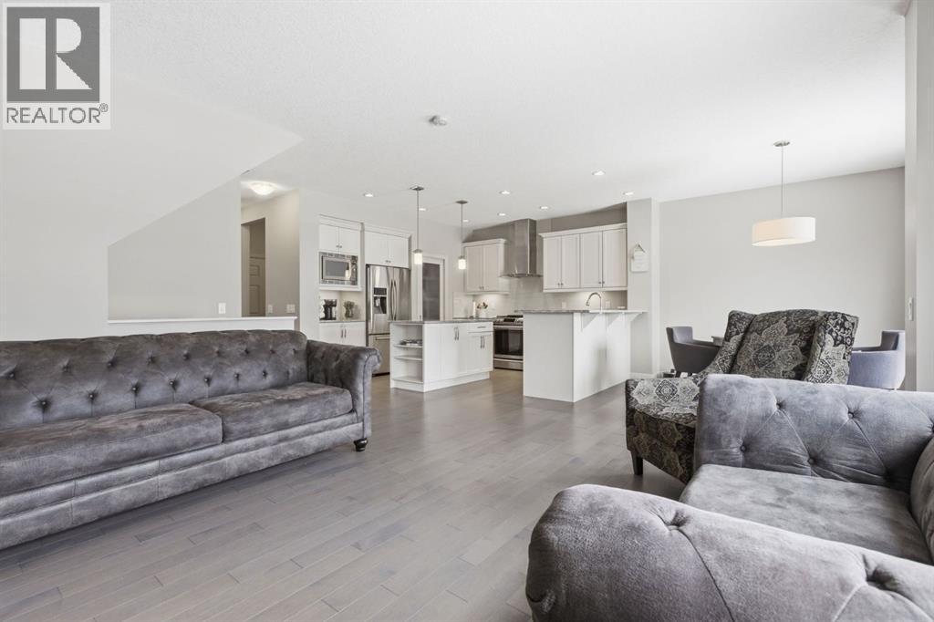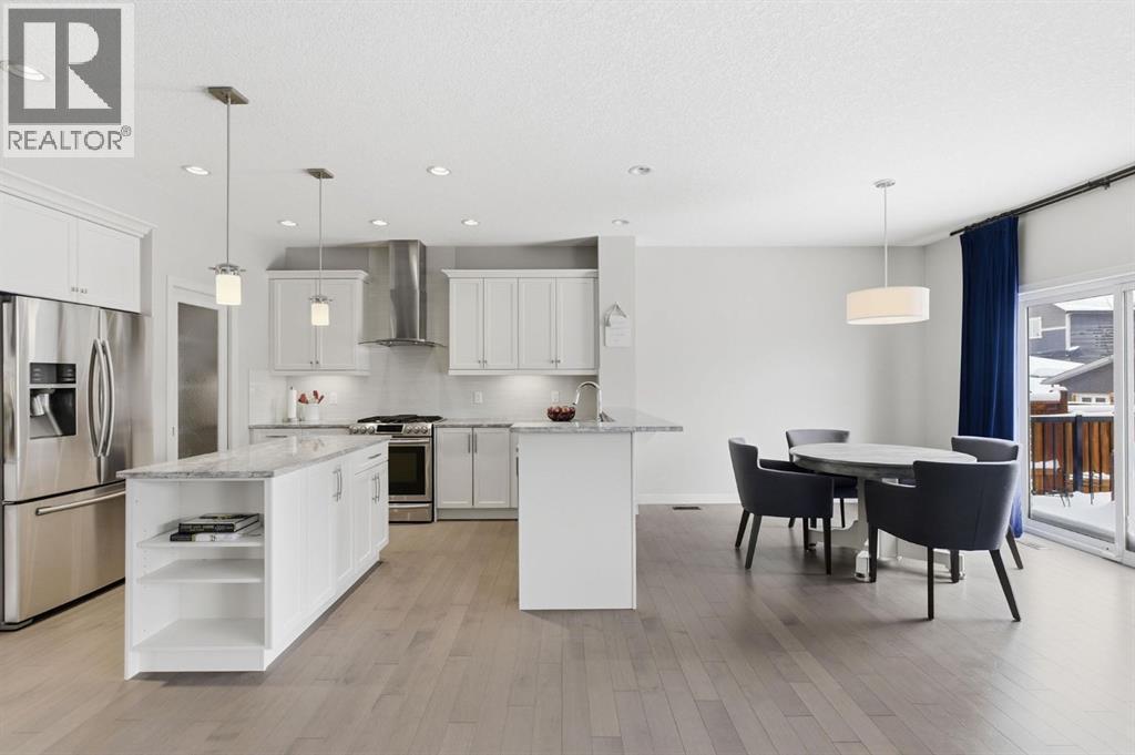 Welcome to this beautifully maintained and thoughtfully upgraded 2-storey home in one of Cochrane’s sought-after family communities, offering over 2,700 sq ft of developed living space, an oversized heated garage, central air conditioning, and a fully finished basement. With timeless curb appeal, a west-facing front exposure, and a private fenced backyard, this home blends comfort, style, and functionality for everyday family living in a location that perfectly balances convenience and outdoor adventure.Step inside to a bright and inviting main floor where large windows fill the space with natural light. The open-concept layout is anchored by a stunning white kitchen featuring quartz-style counters, stainless steel appliances, a large central island, pantry, and plenty of cabinetry. Whether hosting friends or managing busy mornings, this kitchen was designed to be both beautiful and practical. The adjacent dining area opens onto the spacious 16' x 13' east-facing rear deck, the perfect place to enjoy your morning coffee while taking in the sunrise. A spacious living room, 2-piece powder room, and welcoming front entry complete the main level.Upstairs, you’ll love the added flexibility of a central bonus/family room, ideal for movie nights, a kids’ play area, or quiet workspace. The upper level also features convenient laundry, two generous secondary bedrooms, and a spacious primary retreat complete with a walk-in closet and a relaxing 4-piece ensuite with a deep soaker tub.The professionally finished basement adds even more room to grow with a large recreation room, fourth bedroom, and additional space for guests, hobbies, or a home gym.Outside, the private fenced backyard offers room to play, entertain, or unwind, while the oversized 16x22 heated garage with sub panel provides excellent storage, workspace potential, and year-round convenience.The location is truly exceptional for families. Enjoy three nearby children’s parks, walking distance to scenic pond pa thways, Ranchview School, and close proximity to family-friendly hiking trails including Ranch House Trail. Commuters will appreciate being approximately 40 minutes to Calgary International Airport and downtown Calgary, while mountain lovers will love being only about an hour from Banff National Park.Set in a welcoming neighbourhood known for its amazing sense of community, this is the kind of home families can settle into and truly enjoy for years to come. (id:63190)
