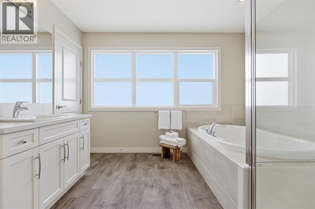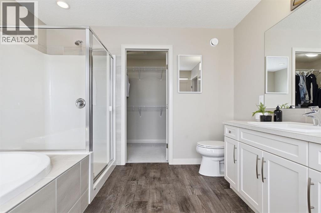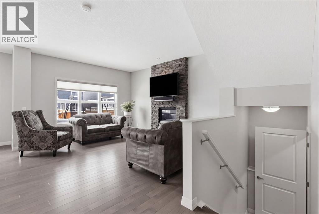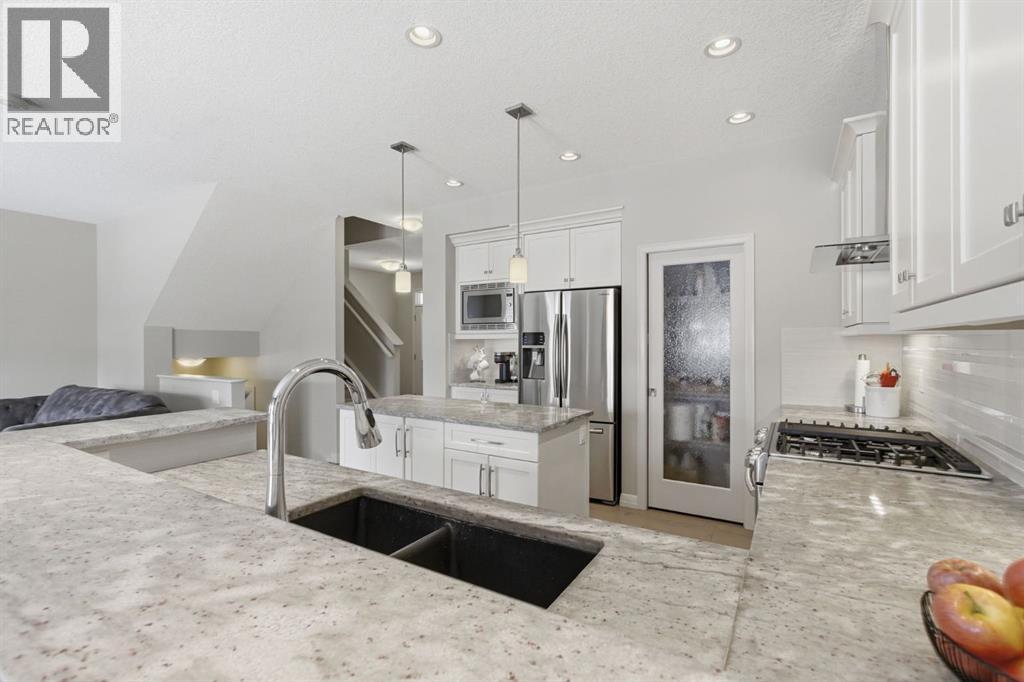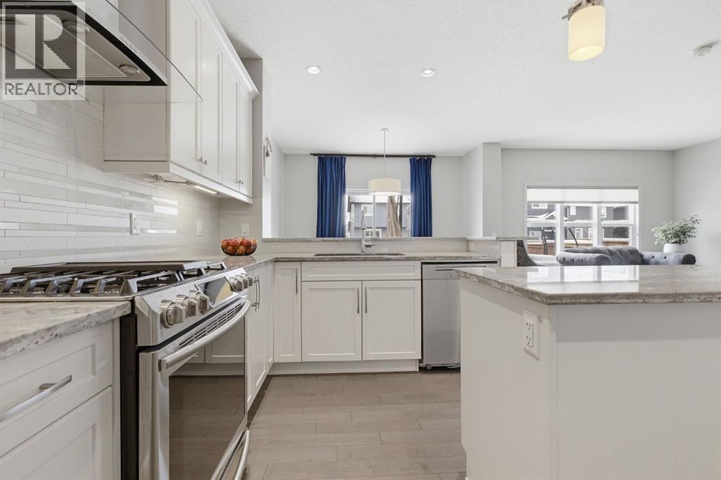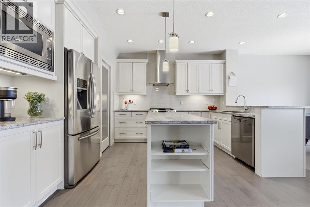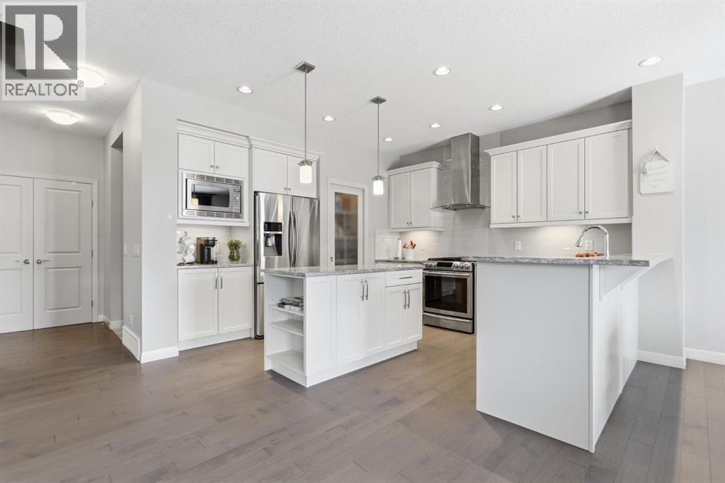 Welcome to this beautifully maintained and thoughtfully upgraded 2-storey home in one of Cochrane’s sought-after family communities, offering over 2,700 sq ft of developed living space, an oversized heated garage, central air conditioning, and a fully finished basement. With timeless curb appeal, a west-facing front exposure, and a private fenced backyard, this home blends comfort, style, and functionality for everyday family living in a location that perfectly balances convenience and outdoor adventure.Step inside to a bright and inviting main floor where large windows fill the space with natural light. The open-concept layout is anchored by a stunning white kitchen featuring quartz-style counters, stainless steel appliances, a large central island, pantry, and plenty of cabinetry. Whether hosting friends or managing busy mornings, this kitchen was designed to be both beautiful and practical. The adjacent dining area opens onto the spacious 16' x 13' east-facing rear deck, the perfect place to enjoy your morning coffee while taking in the sunrise. A spacious living room, 2-piece powder room, and welcoming front entry complete the main level.Upstairs, you’ll love the added flexibility of a central bonus/family room, ideal for movie nights, a kids’ play area, or quiet workspace. The upper level also features convenient laundry, two generous secondary bedrooms, and a spacious primary retreat complete with a walk-in closet and a relaxing 4-piece ensuite with a deep soaker tub.The professionally finished basement adds even more room to grow with a large recreation room, fourth bedroom, and additional space for guests, hobbies, or a home gym.Outside, the private fenced backyard offers room to play, entertain, or unwind, while the oversized 16x22 heated garage with sub panel provides excellent storage, workspace potential, and year-round convenience.The location is truly exceptional for families. Enjoy three nearby children’s parks, walking distance to scenic pond pa thways, Ranchview School, and close proximity to family-friendly hiking trails including Ranch House Trail. Commuters will appreciate being approximately 40 minutes to Calgary International Airport and downtown Calgary, while mountain lovers will love being only about an hour from Banff National Park.Set in a welcoming neighbourhood known for its amazing sense of community, this is the kind of home families can settle into and truly enjoy for years to come. (id:63190)