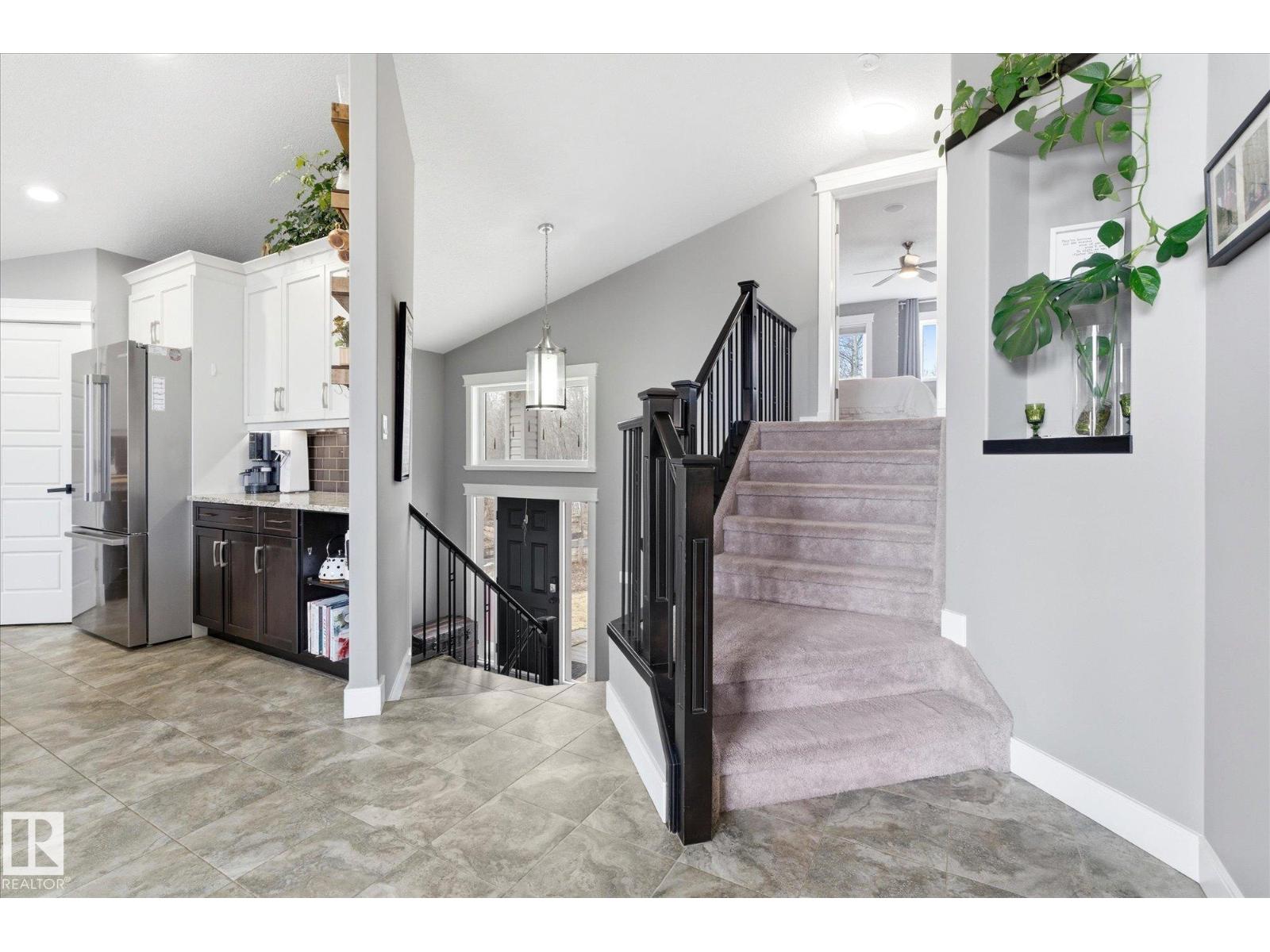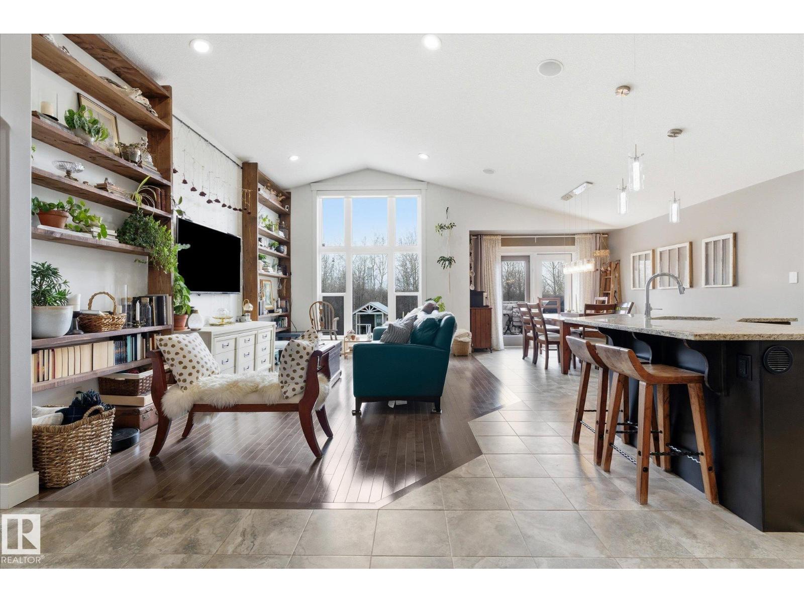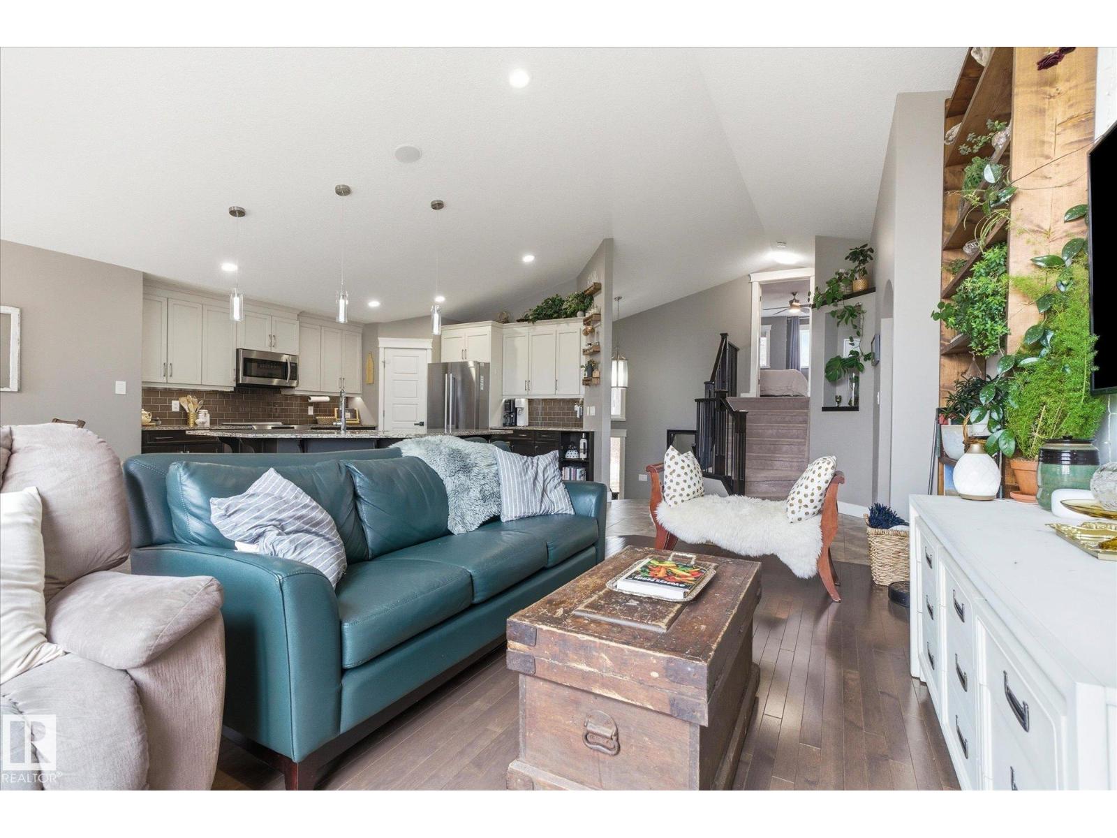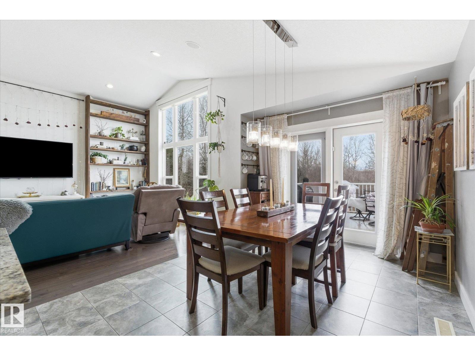 Gorgeous custom-built 1.5 storey walkout on 1.09 private, treed acres backing greenspace, just minutes from Chickakoo Lake Recreation Area. This 5 bedroom, 3 full bathroom home features an open-concept layout with 12’ vaulted ceilings, large windows, and a bright kitchen with island, granite countertops, and corner pantry. The main floor offers 2 spacious bedrooms, while the fully finished basement includes 2 more. The huge primary suite over the garage features a walk-in closet and 4-pc ensuite with dual sinks and a corner jetted tub. Enjoy a cozy gas fireplace, walk-in laundry, dual-zone heating & A/C. Maintenance-free decks overlook a beautifully treed yard with invisible fence. Heated 27’ x 36.5’ triple garage with H/C water and drains. Quick commute to Stony Plain. This one won’t last! (id:63190)