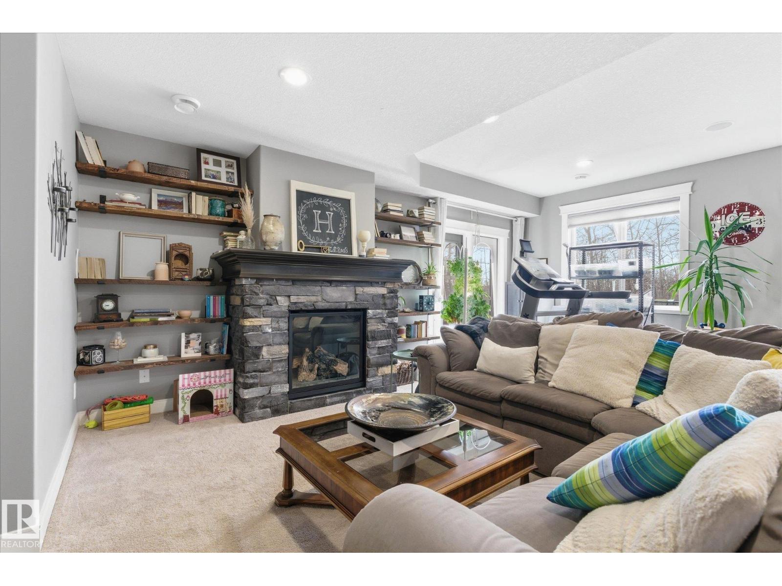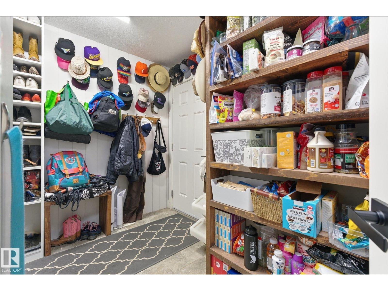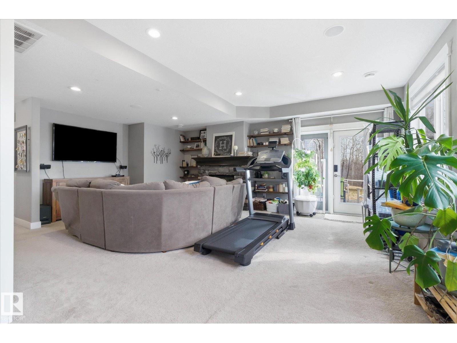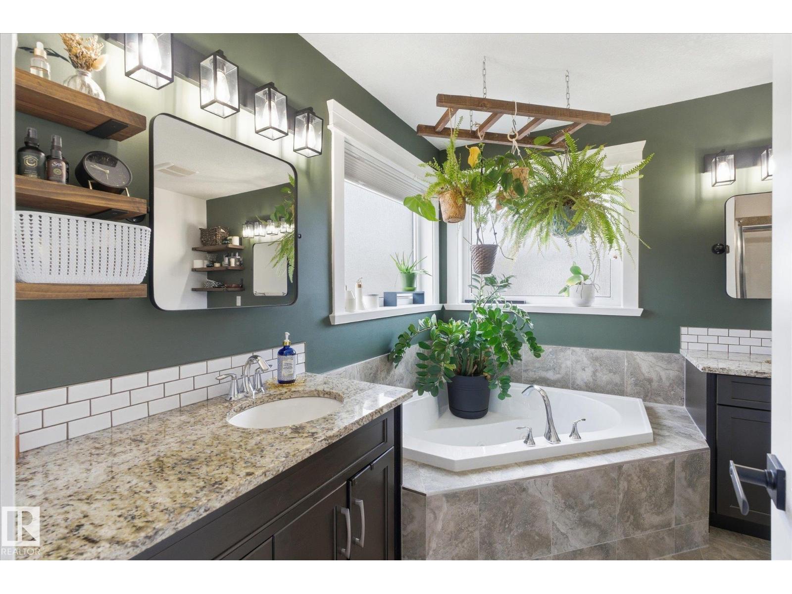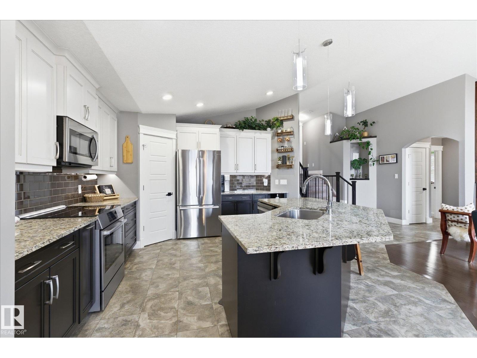 Gorgeous custom-built 1.5 storey walkout on 1.09 private, treed acres backing greenspace, just minutes from Chickakoo Lake Recreation Area. This 5 bedroom, 3 full bathroom home features an open-concept layout with 12’ vaulted ceilings, large windows, and a bright kitchen with island, granite countertops, and corner pantry. The main floor offers 2 spacious bedrooms, while the fully finished basement includes 2 more. The huge primary suite over the garage features a walk-in closet and 4-pc ensuite with dual sinks and a corner jetted tub. Enjoy a cozy gas fireplace, walk-in laundry, dual-zone heating & A/C. Maintenance-free decks overlook a beautifully treed yard with invisible fence. Heated 27’ x 36.5’ triple garage with H/C water and drains. Quick commute to Stony Plain. This one won’t last! (id:63190)