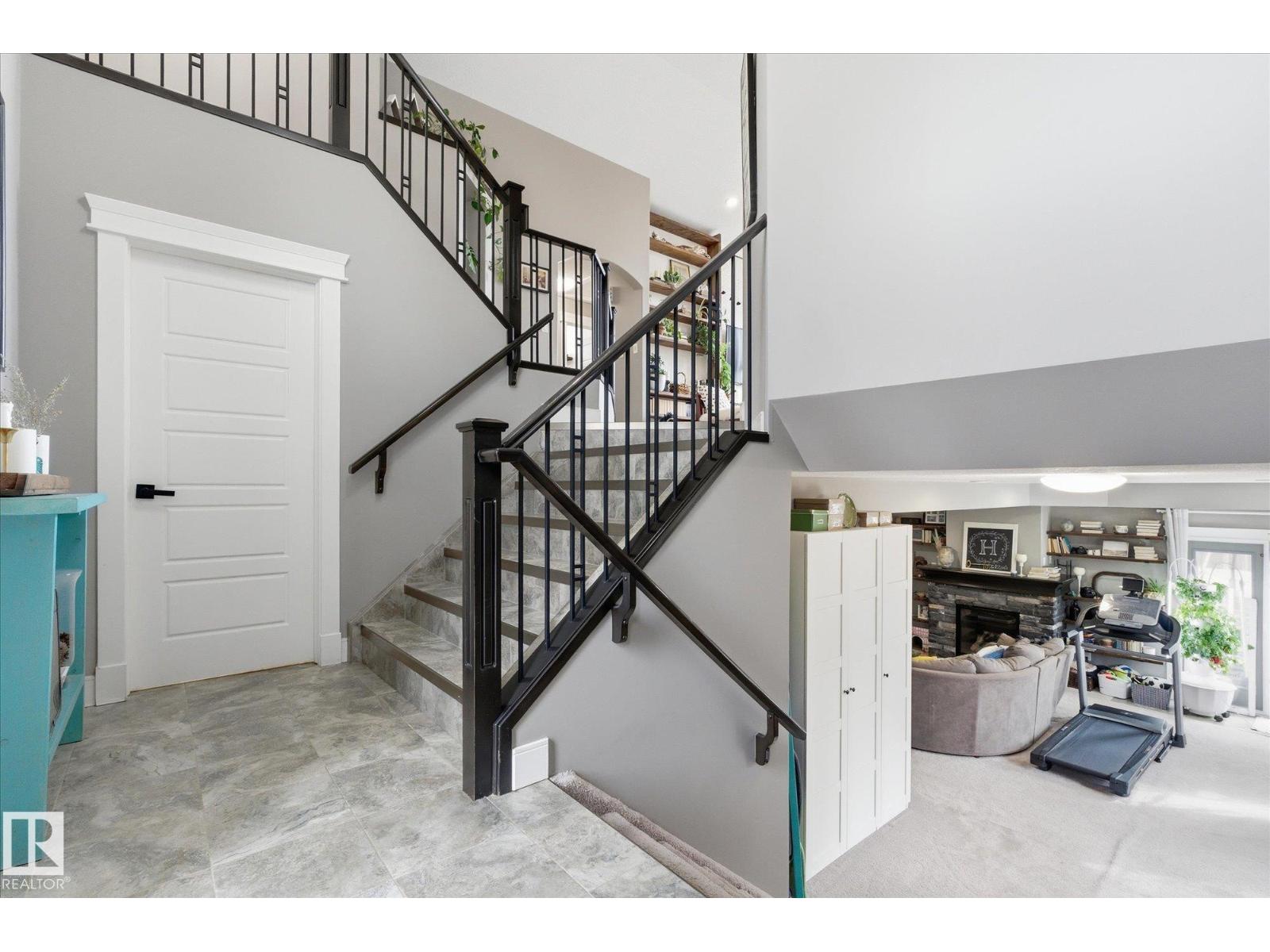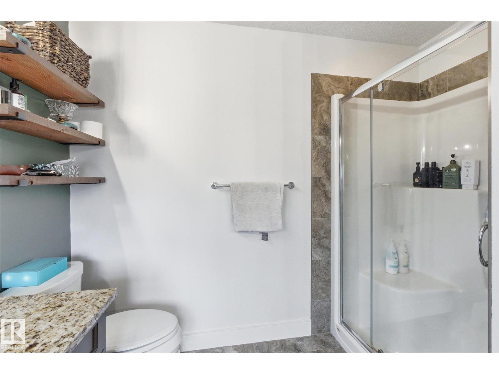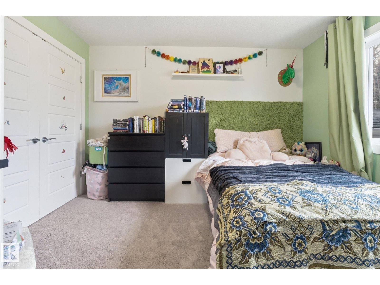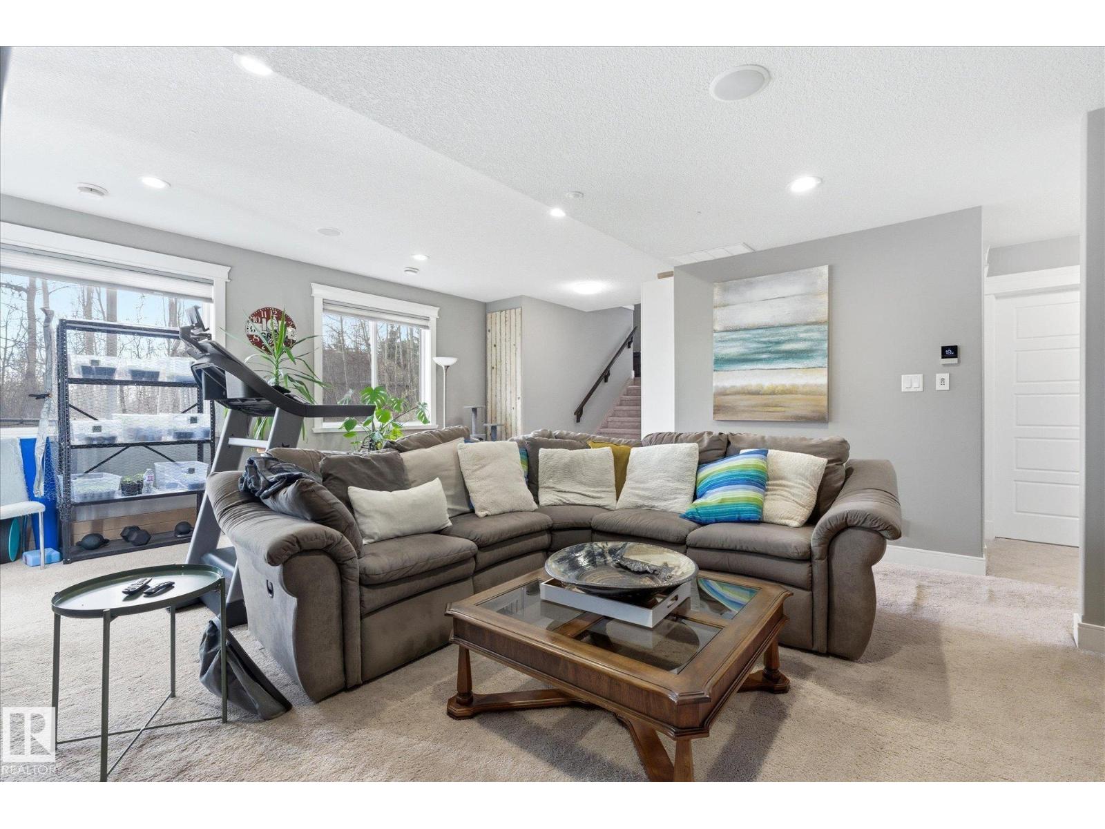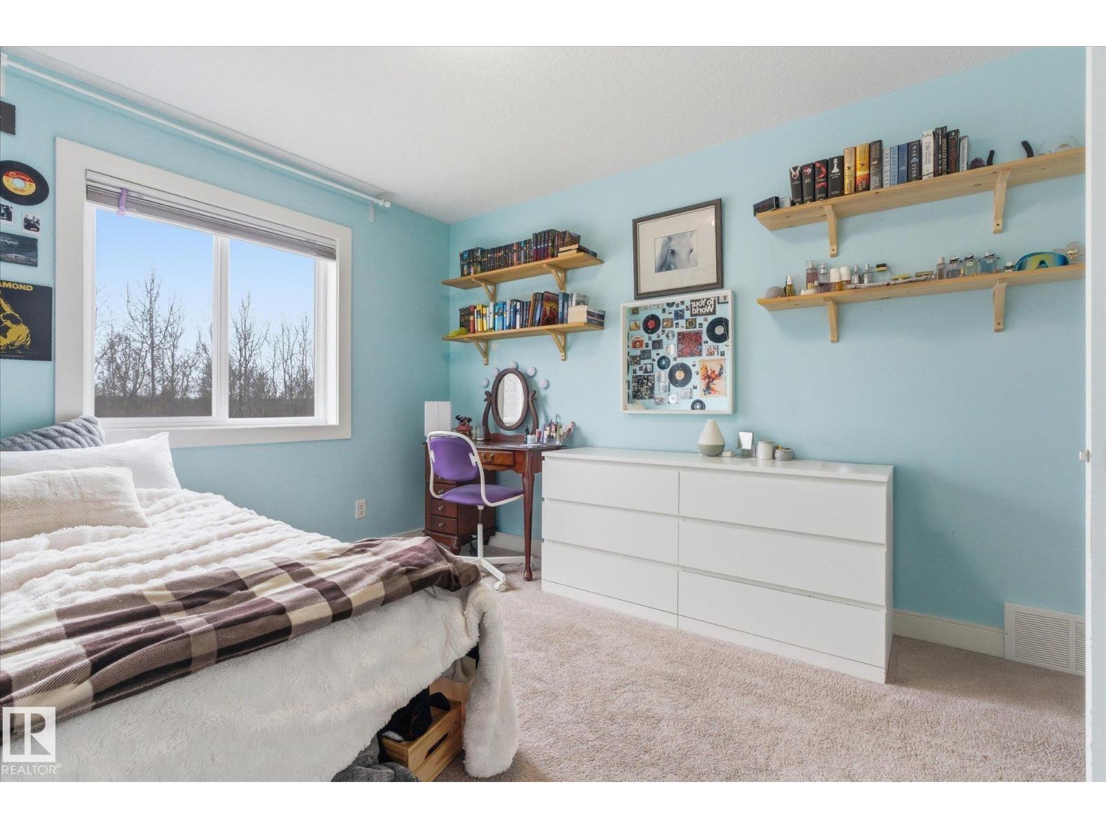 Gorgeous custom-built 1.5 storey walkout on 1.09 private, treed acres backing greenspace, just minutes from Chickakoo Lake Recreation Area. This 5 bedroom, 3 full bathroom home features an open-concept layout with 12’ vaulted ceilings, large windows, and a bright kitchen with island, granite countertops, and corner pantry. The main floor offers 2 spacious bedrooms, while the fully finished basement includes 2 more. The huge primary suite over the garage features a walk-in closet and 4-pc ensuite with dual sinks and a corner jetted tub. Enjoy a cozy gas fireplace, walk-in laundry, dual-zone heating & A/C. Maintenance-free decks overlook a beautifully treed yard with invisible fence. Heated 27’ x 36.5’ triple garage with H/C water and drains. Quick commute to Stony Plain. This one won’t last! (id:63190)